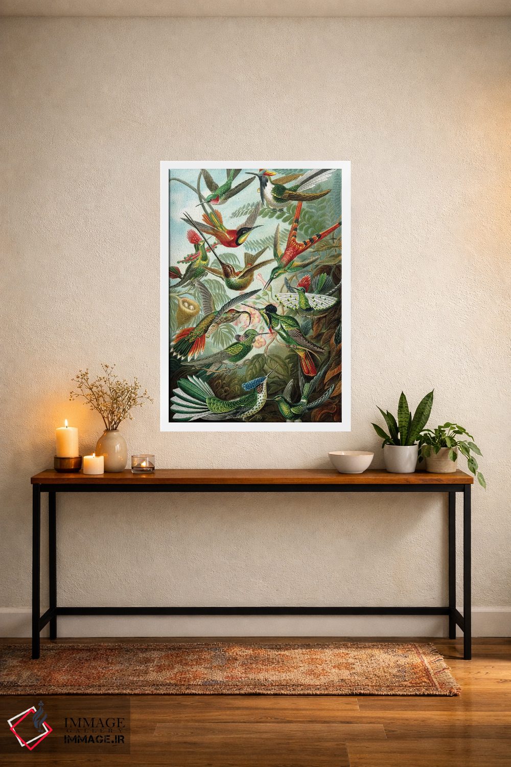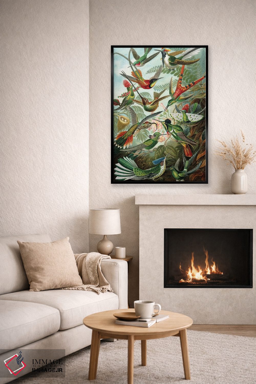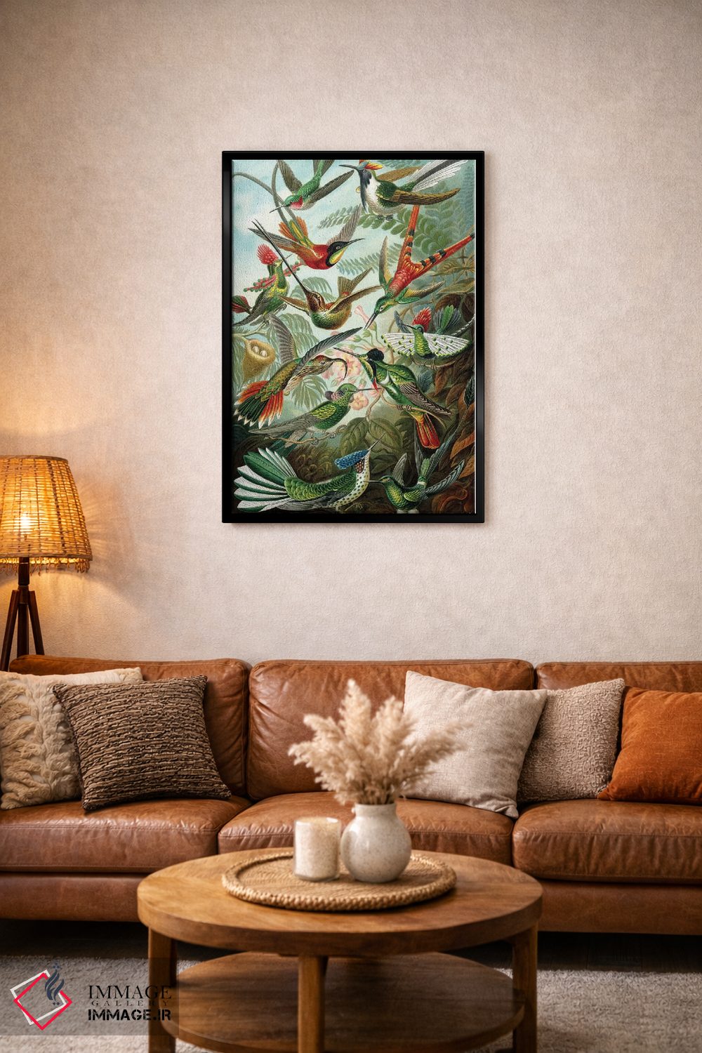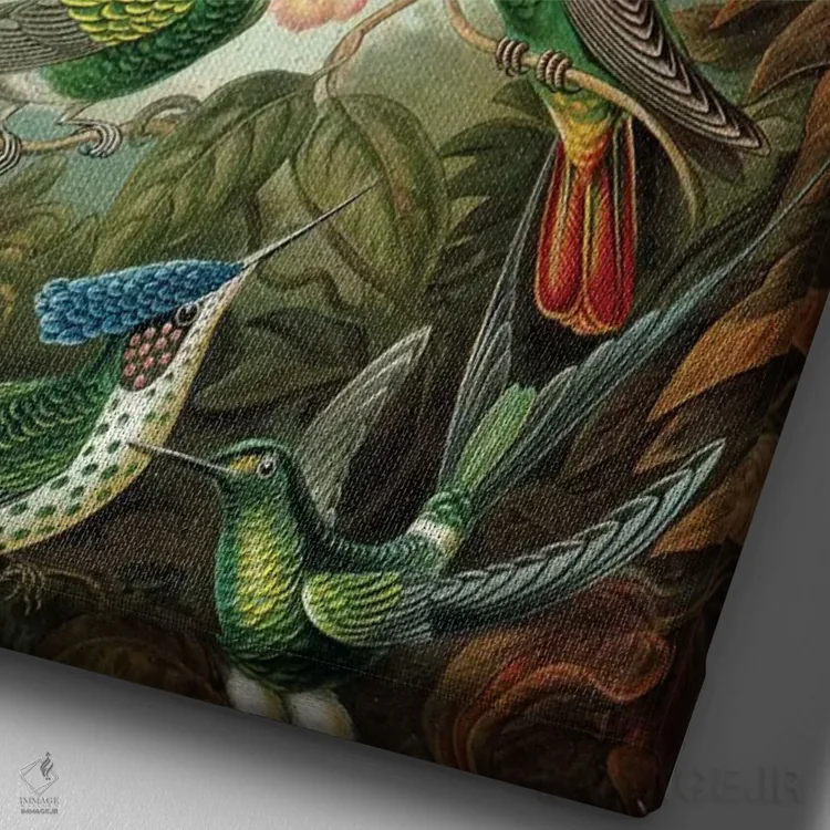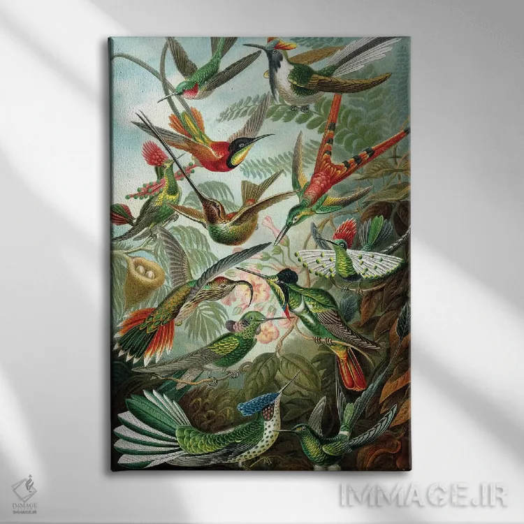اگر به آثار حیوانات علاقه دارید، «مرغ مگسخوارهای هیکل» اثرِ «پتنت پرینت استور (فروشگاه چاپ هنری)» یک لبخند ریز به چیدمان میدهد، برای نشیمنهای خانوادگی گزینهٔ مناسبیست. با نورپردازی نقطهای، جذابتر هم میشود.