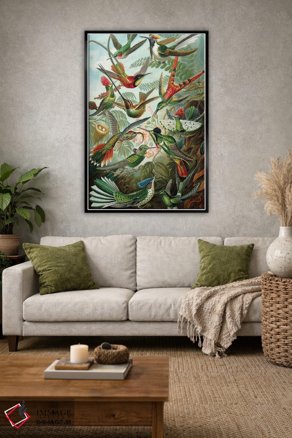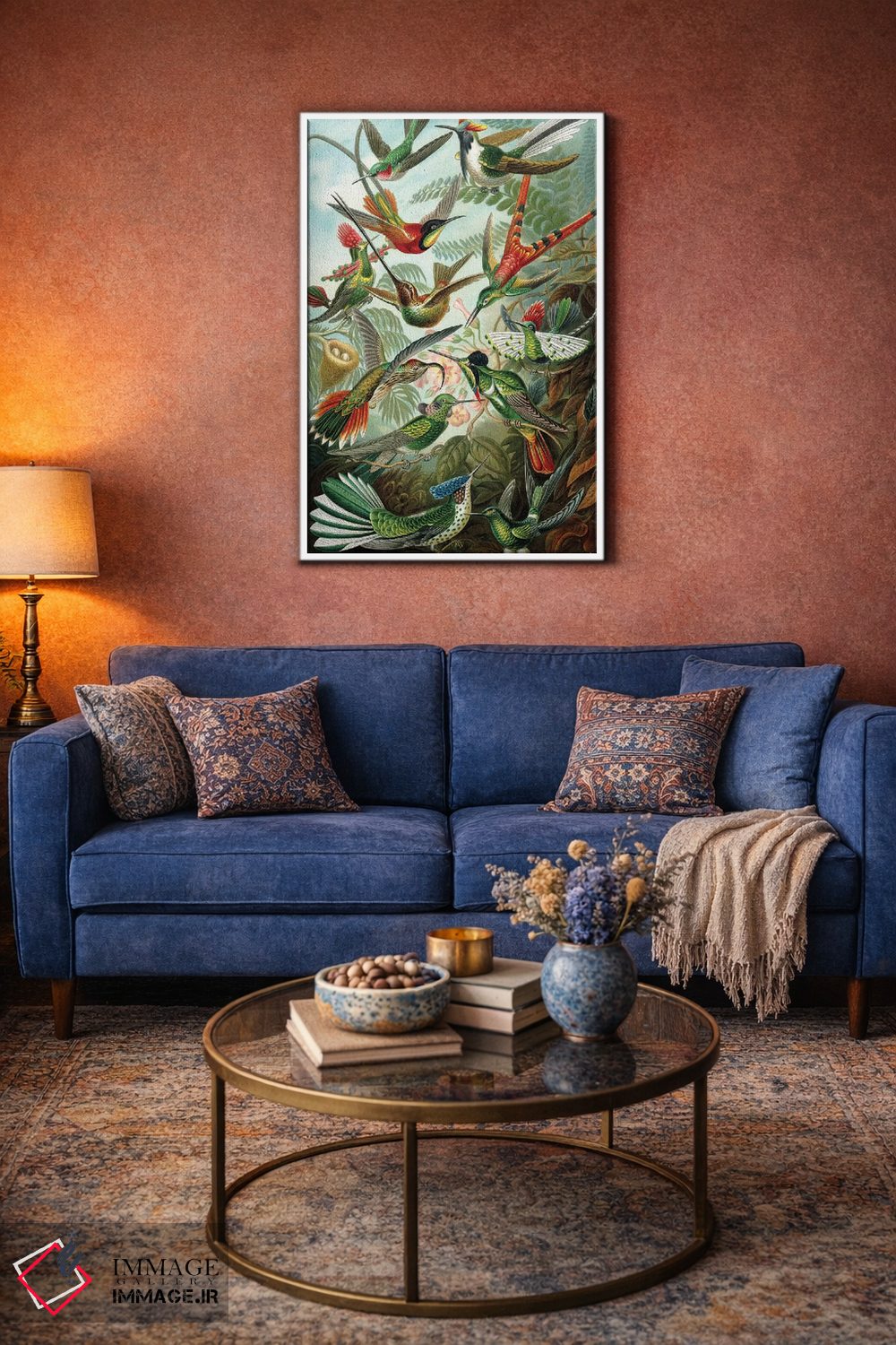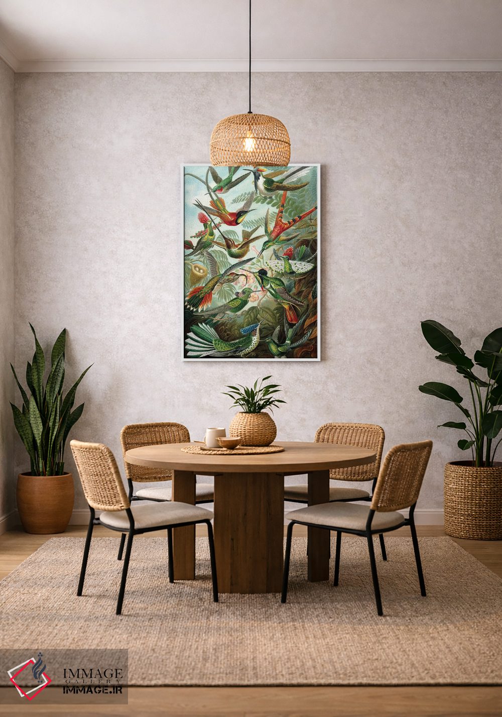 اگر به آثار حیوانات علاقه دارید، «مرغ مگسخوارهای هیکل» اثرِ «پتنت پرینت استور (فروشگاه چاپ هنری)» یک لبخند ریز به چیدمان میدهد، برای نشیمنهای خانوادگی گزینهٔ مناسبیست. با نورپردازی نقطهای، جذابتر هم میشود.