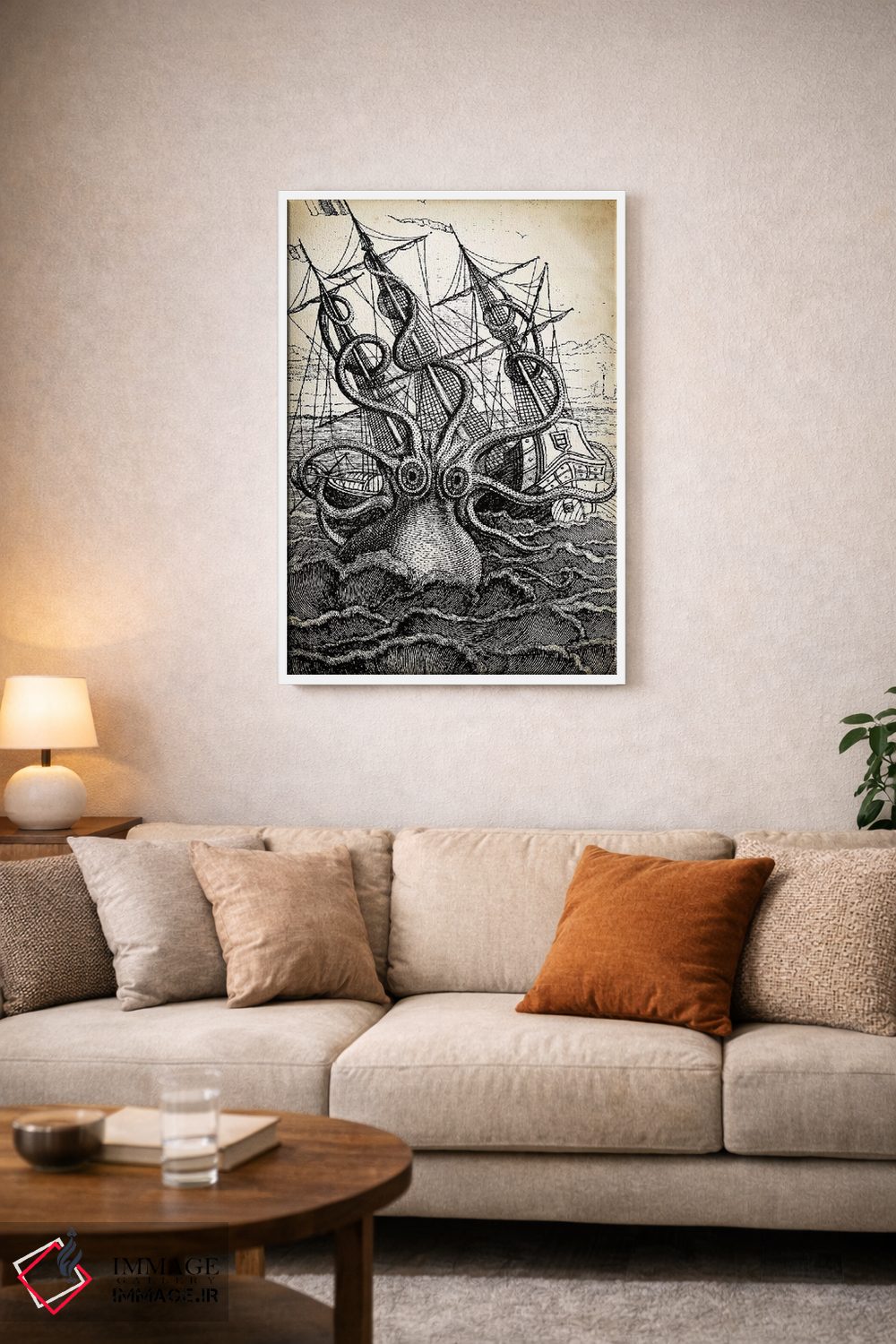 تابلو دکوراتیو کراکن اثر پتنت پرینت استور - نمای پرسپکتیو محصول