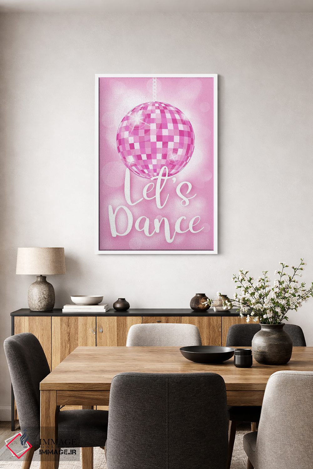 «توپ دیسکو بیا برقصیم» اثرِ «مارتینا پاولوا» با موضوعِ این اثر، به چیدمان رنگی فضا کمک میکند و حس پرداختِ هنری را هم حفظ میکند.