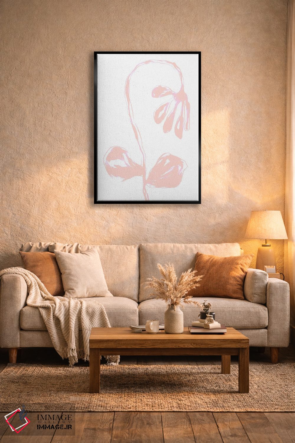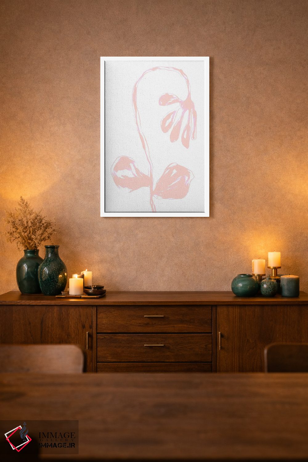 براساس پالت گرم اثر، قاب تیک گرم (چوبی) پیشنهاد اول است و مشکی مات (فریم متوسط) مکمل. برای سفارشهای پروژهای با ابعاد و قابهای اختصاصی با ایماژ در تماس باشید.