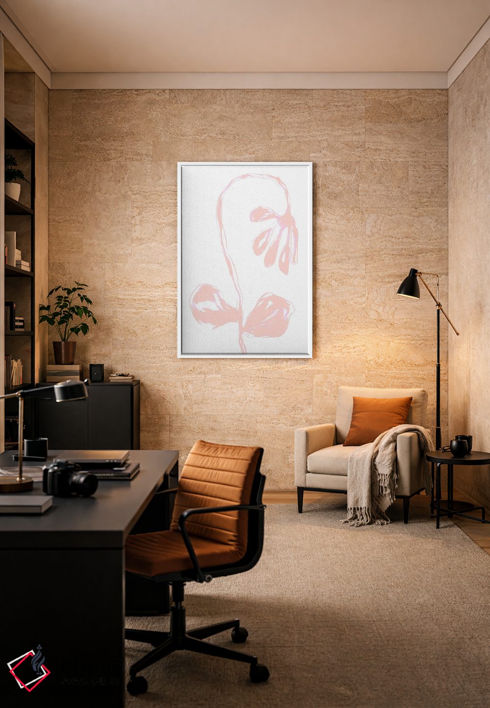 این اثر با عنوان «شکوفه پرز هلو» اثرِ «مارتینا پاولوا» تعادل رنگیِ لطیفی به چیدمان میدهد؛ برای دکورهای اسکانباوراوی انتخابی خوشسلیقه است. فضا را شلوغ نمیکند؛ فقط لطیفترش میکند.