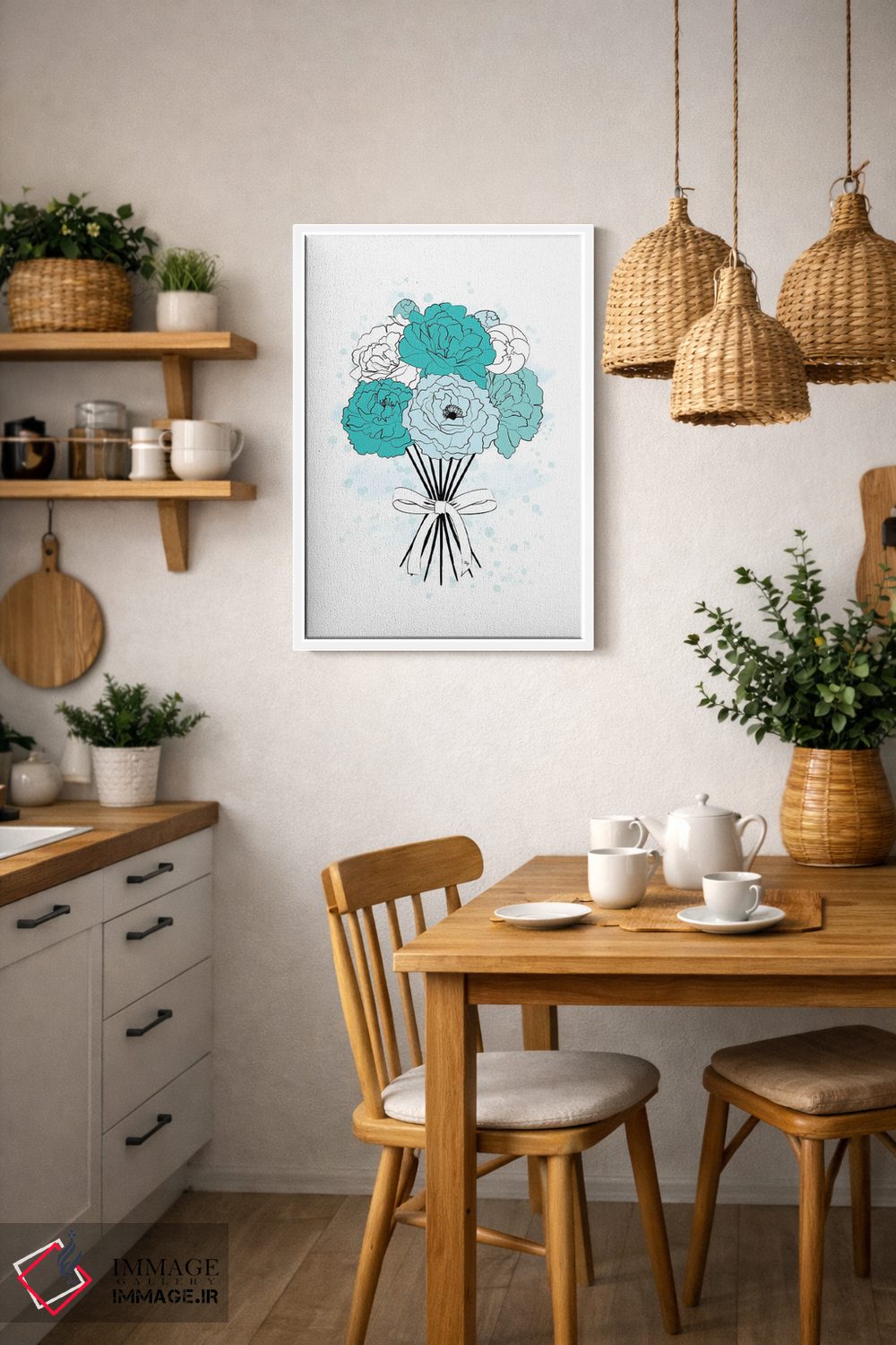 اگر دوست دارید دیوار روشنتر و آرامتر دیده شود، «دسته گل پیونی آبی» اثرِ «مارتینا پاولوا» مثل یک قطعهٔ دکورِ همیشهبهروز عمل میکند، برای خانههایی با نور طبیعی گزینهٔ مناسبیست. همیشه بهروز میماند و با فصلها خوب کنار میآید.