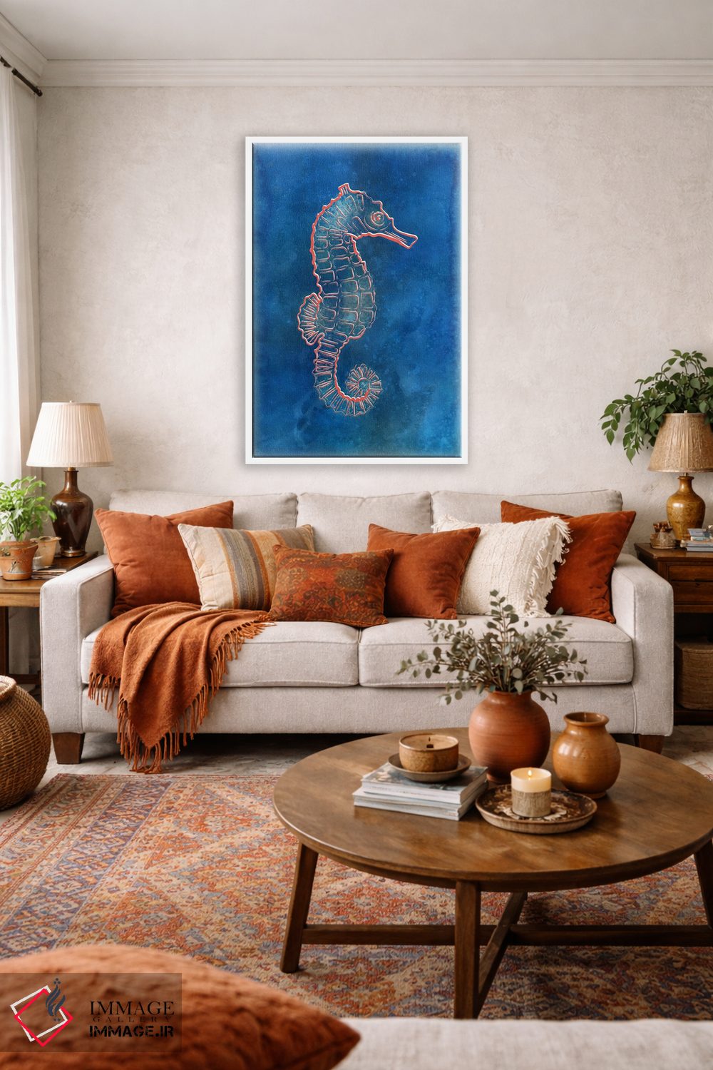 در «اسب دریایی آبی» اثرِ «مارتینا پاولوا»، حضور حیوانات یک لبخند ریز به چیدمان میدهد؛ برای دیوار کنار میز کار انتخابی خوشسلیقه است. با نورپردازی نقطهای، جذابتر هم میشود.