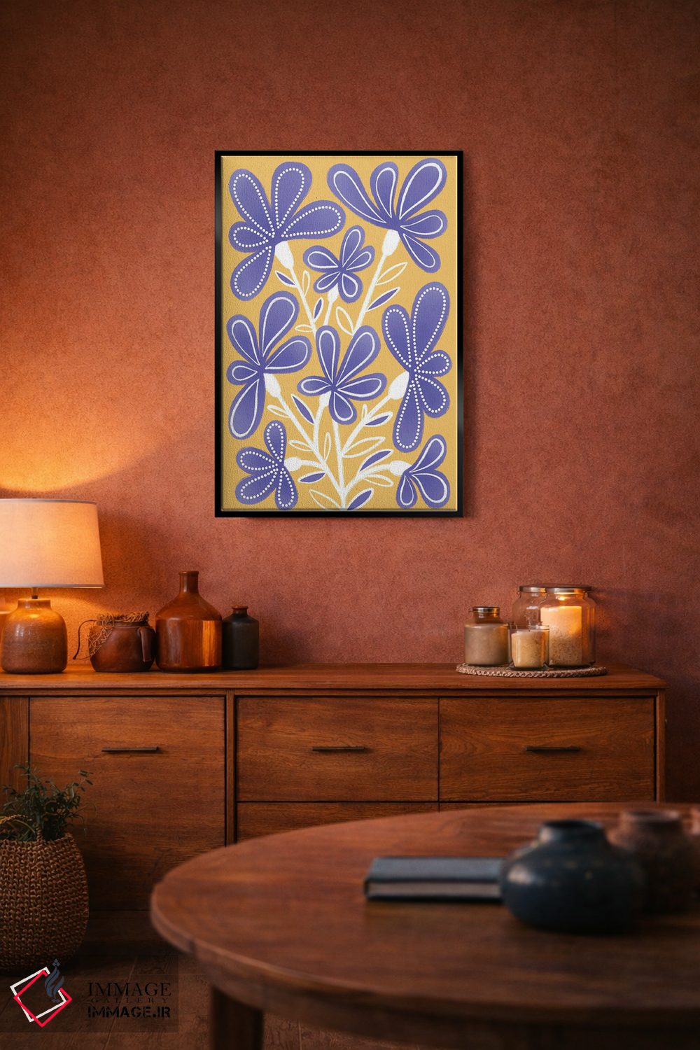براساس پالت ترکیبی اثر، قاب تیک گرم (چوبی) پیشنهاد اول است و مشکی مات (فریم متوسط) مکمل. برای سفارشهای پروژهای با ابعاد و قابهای اختصاصی با ایماژ در تماس باشید.