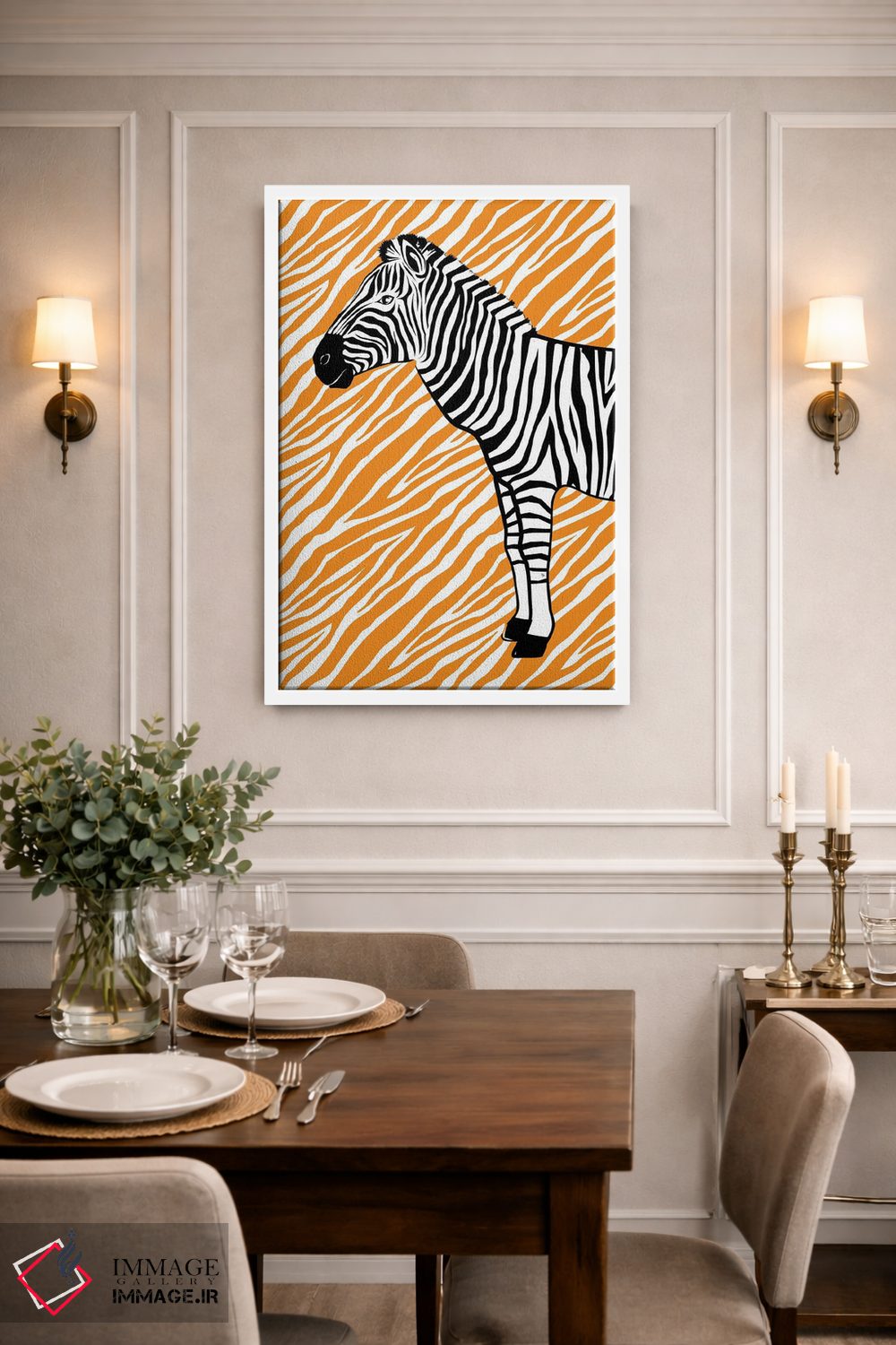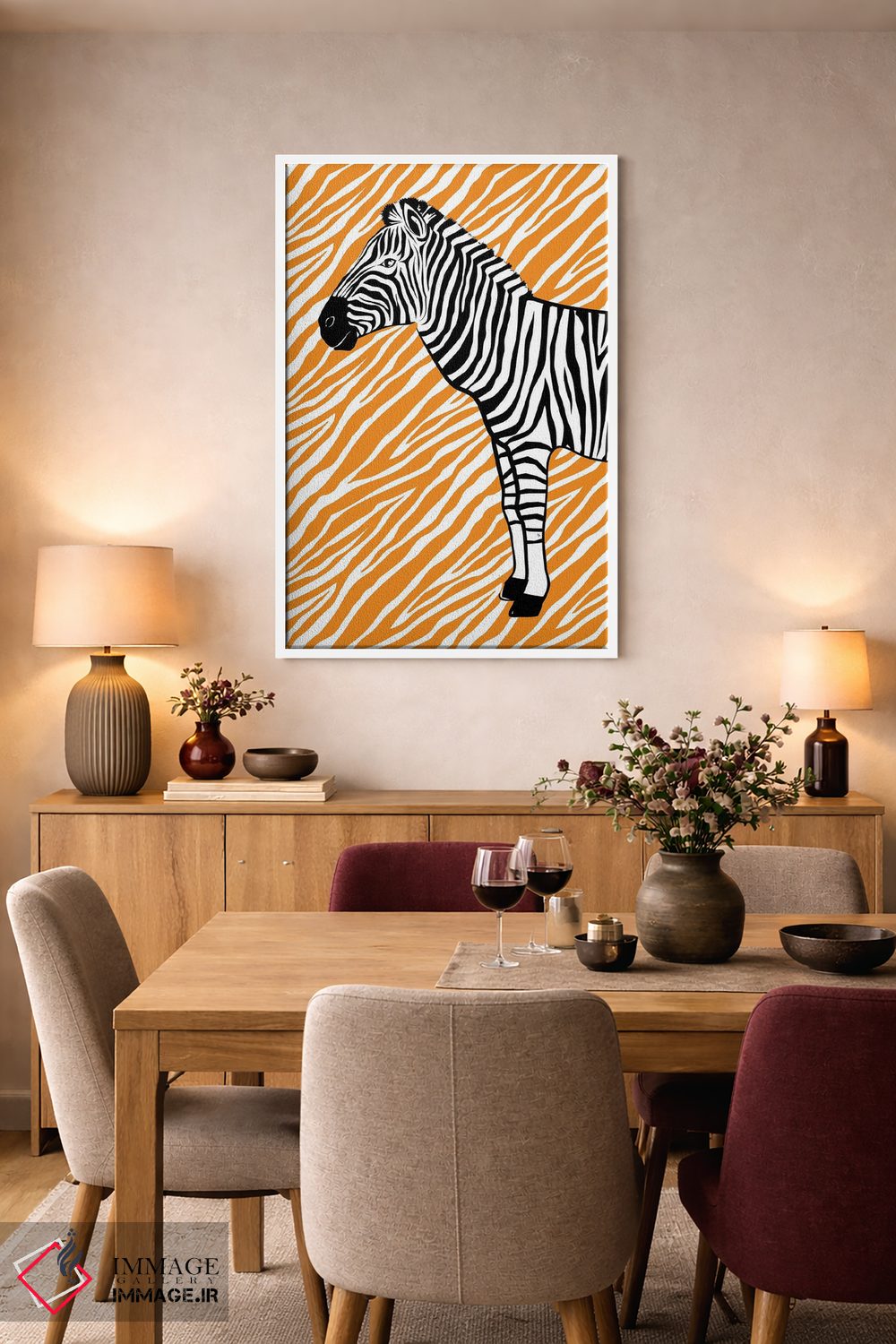 «گورخر کوچک نارنجی» اثرِ «مارتینا پاولوا» میتواند به دیوار، انرژیِ نرم و زنده بدهد؛ برای راهروها و ورودیهای گرم پیشنهاد میشود. هر بار نگاهش میکنید، یک جزئیات تازه به چشم میآید.
