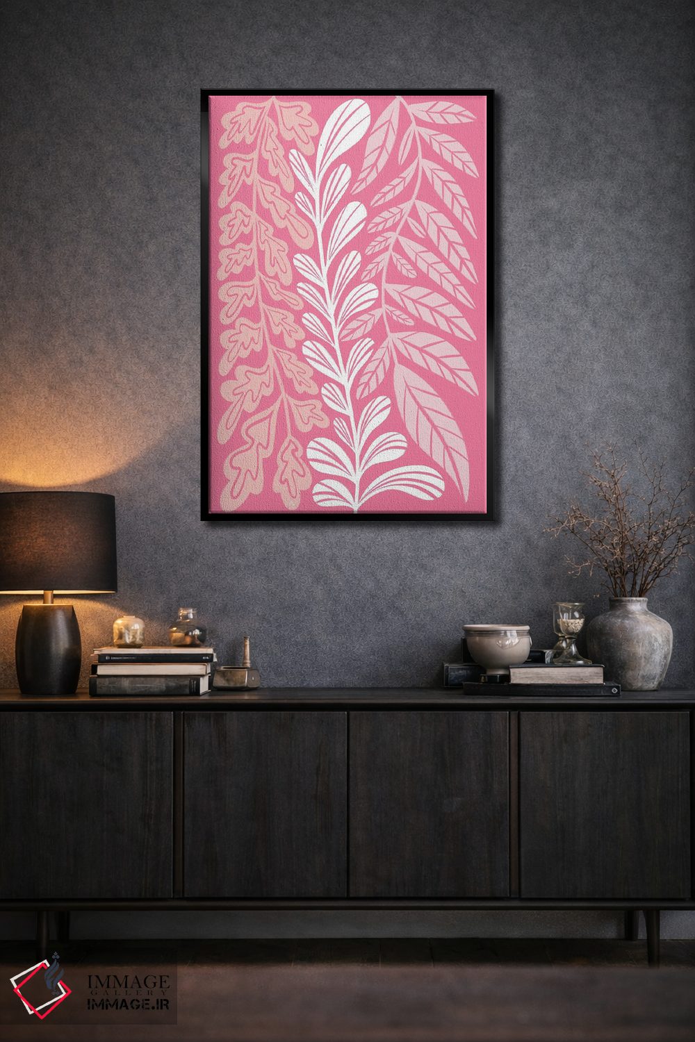 تابلو مینیمال گیاهان بلند صورتی اثر مارتینا پاولوا