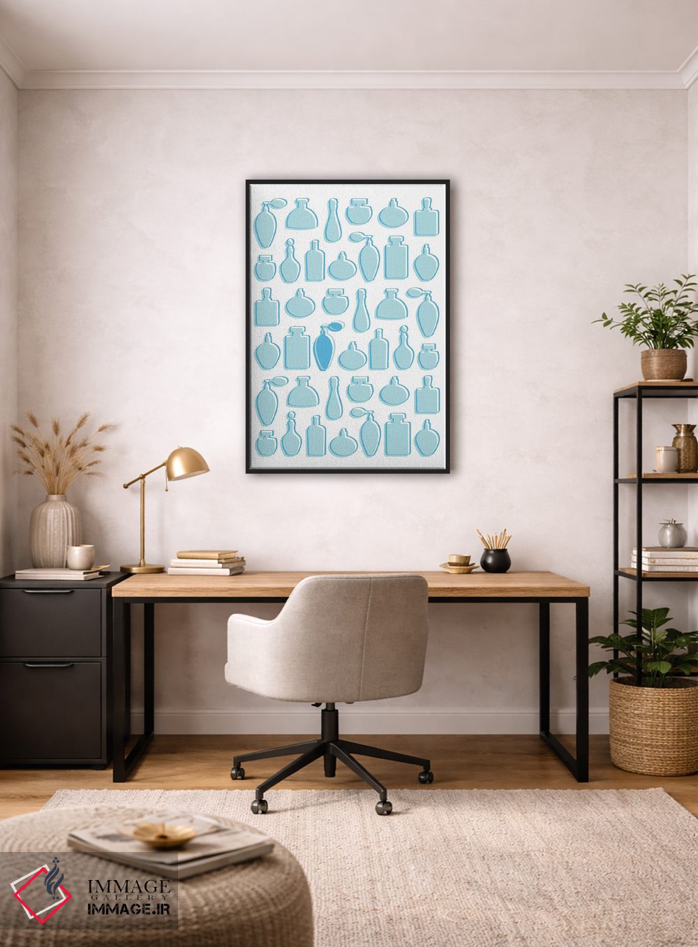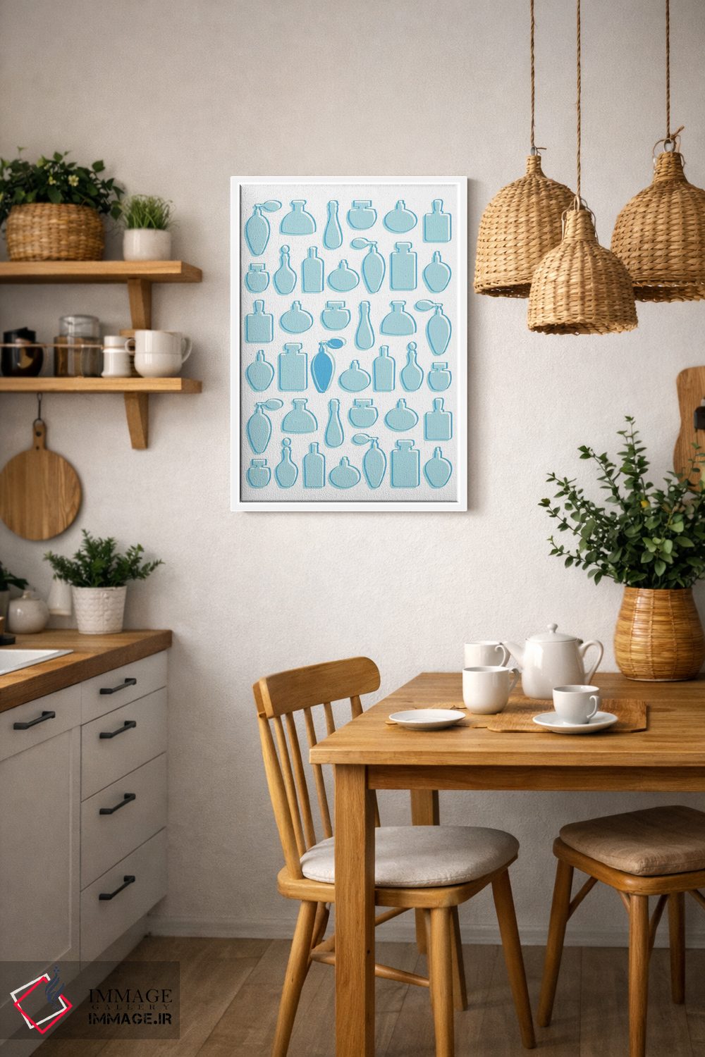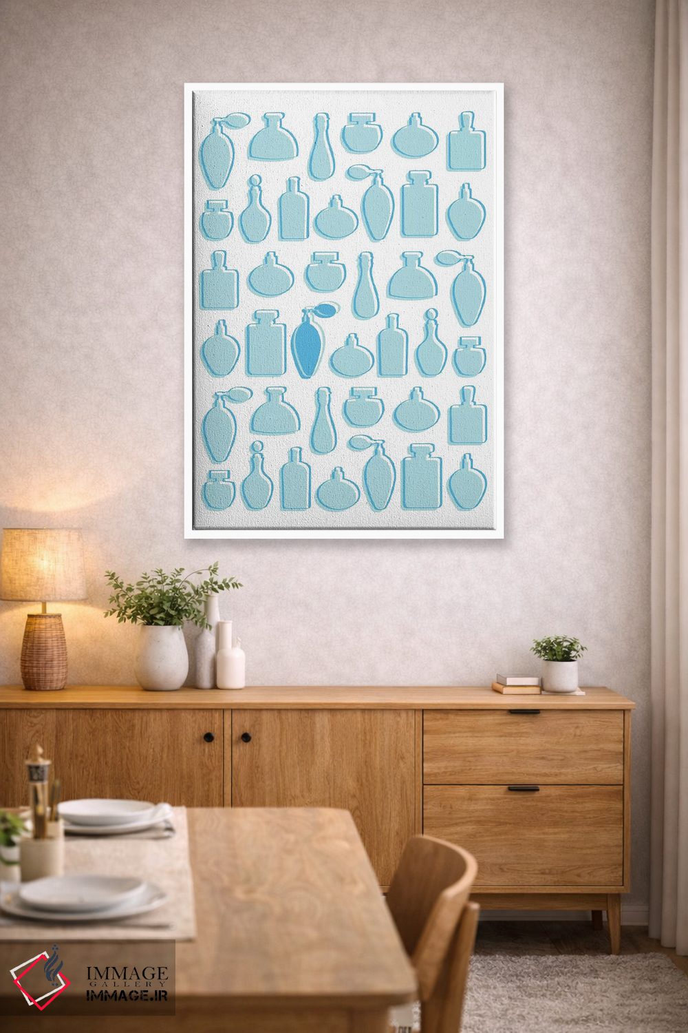 این تابلو با عنوان «عطرهای آبی» اثرِ «مارتینا پاولوا»، کنار آینه و رختکن یا اتاق لباس عالی مینشیند.