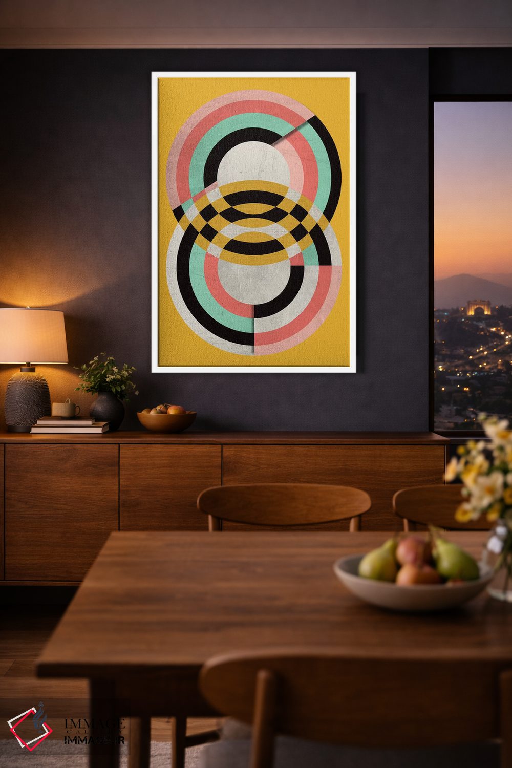 براساس پالت گرم اثر، قاب تیک گرم (چوبی) پیشنهاد اول است و مشکی مات (فریم متوسط) مکمل. برای سفارشهای پروژهای با ابعاد و قابهای اختصاصی با ایماژ در تماس باشید.