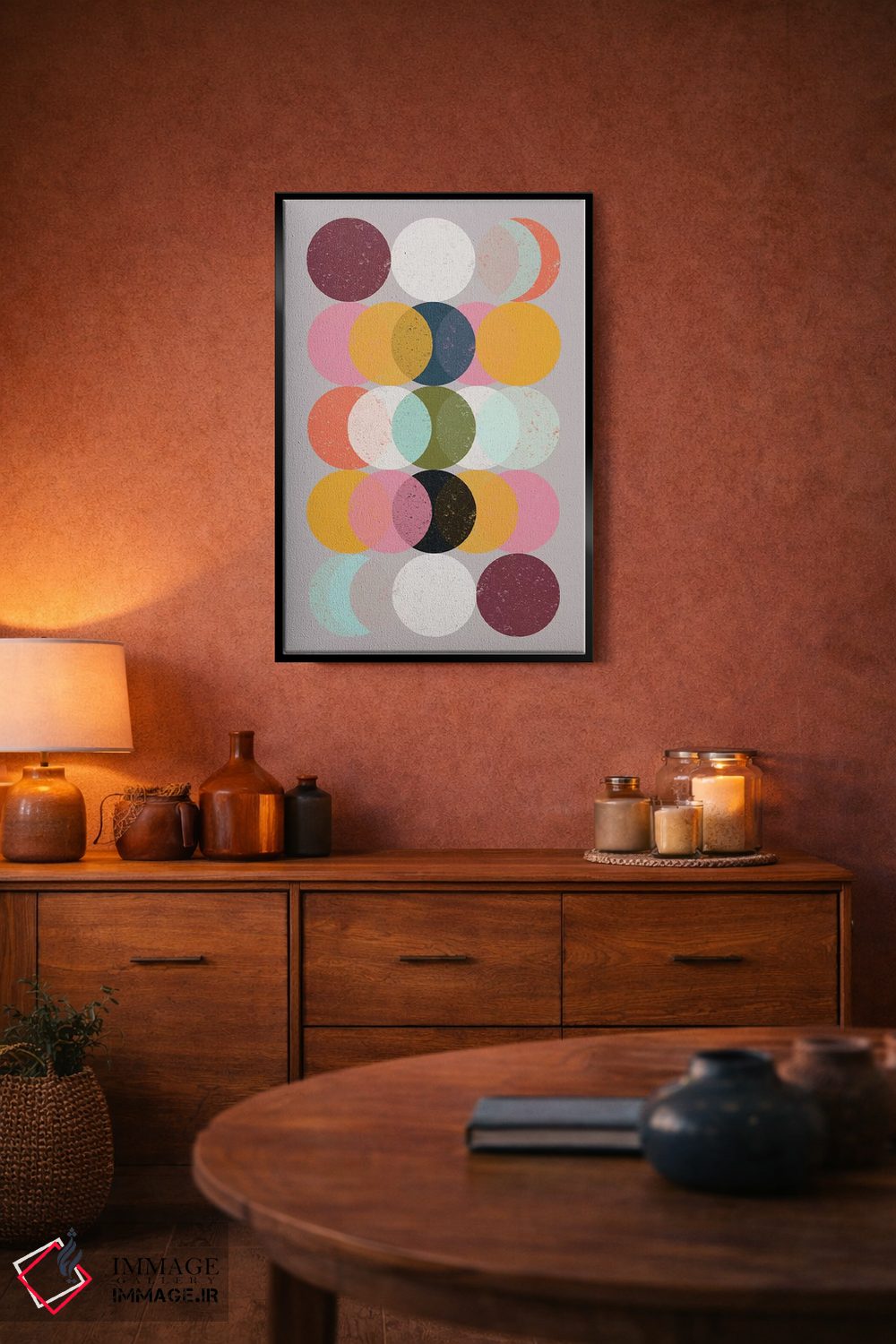 براساس پالت ترکیبی اثر، قاب تیک گرم (چوبی) پیشنهاد اول است و مشکی مات (فریم متوسط) مکمل. برای سفارشهای پروژهای با ابعاد و قابهای اختصاصی با ایماژ در تماس باشید.