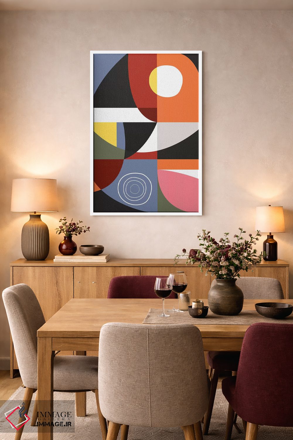 «درونیاب ۱» اثرِ «سوزانا پاز» یک انتخاب مدرن است؛ سبک هنری کمک میکند چیدمان مرتب بماند و دیوار حرفهای دیده شود.
