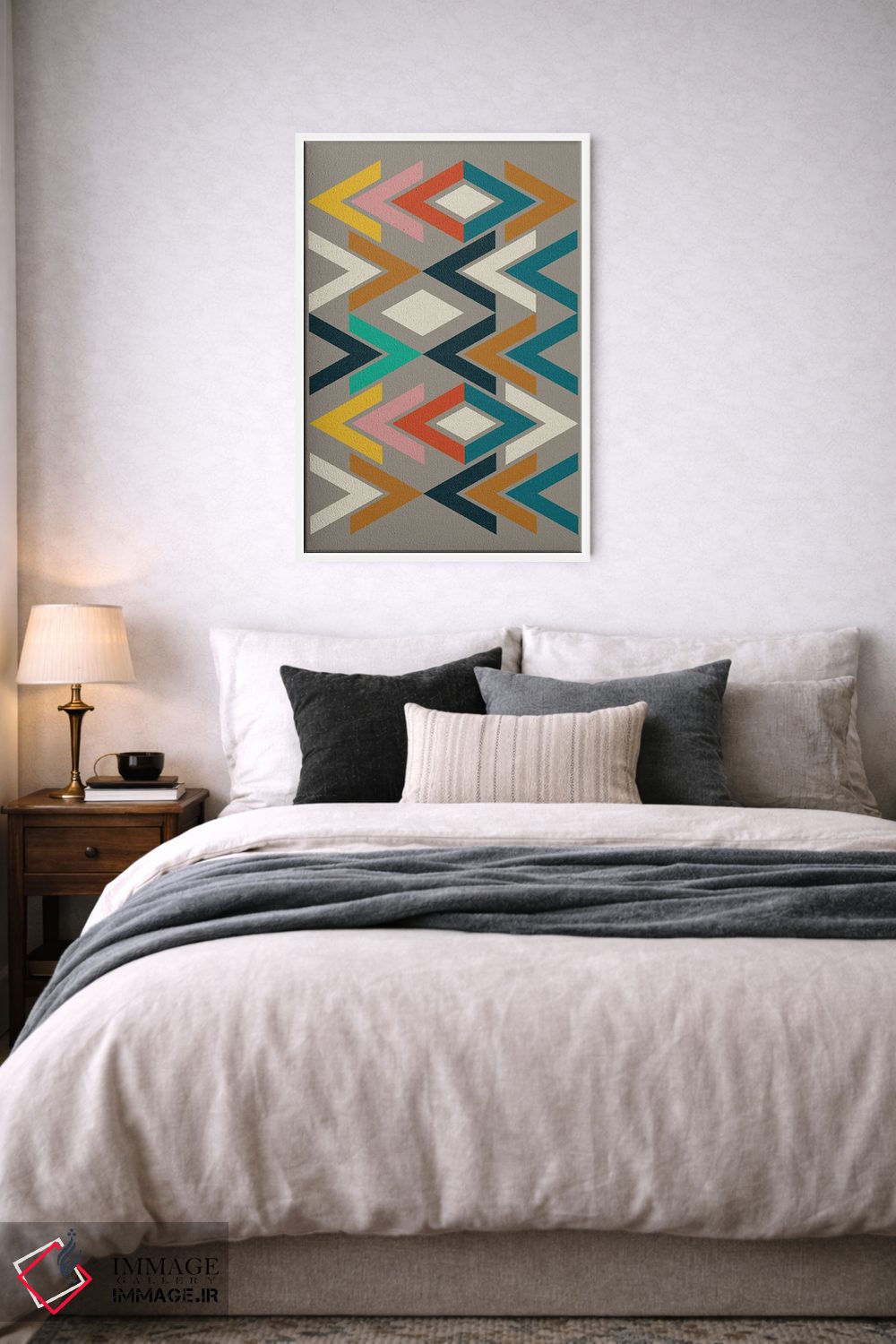 براساس پالت ترکیبی اثر، قاب تیک گرم (چوبی) پیشنهاد اول است و مشکی مات (فریم متوسط) مکمل. برای سفارشهای پروژهای با ابعاد و قابهای اختصاصی با ایماژ در تماس باشید.
