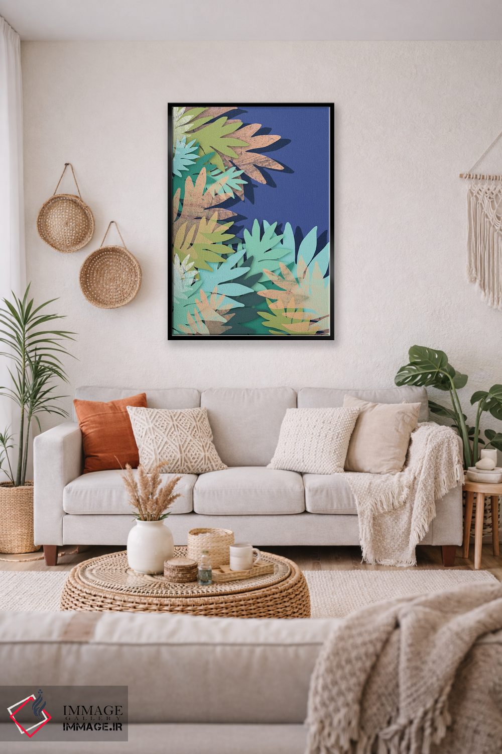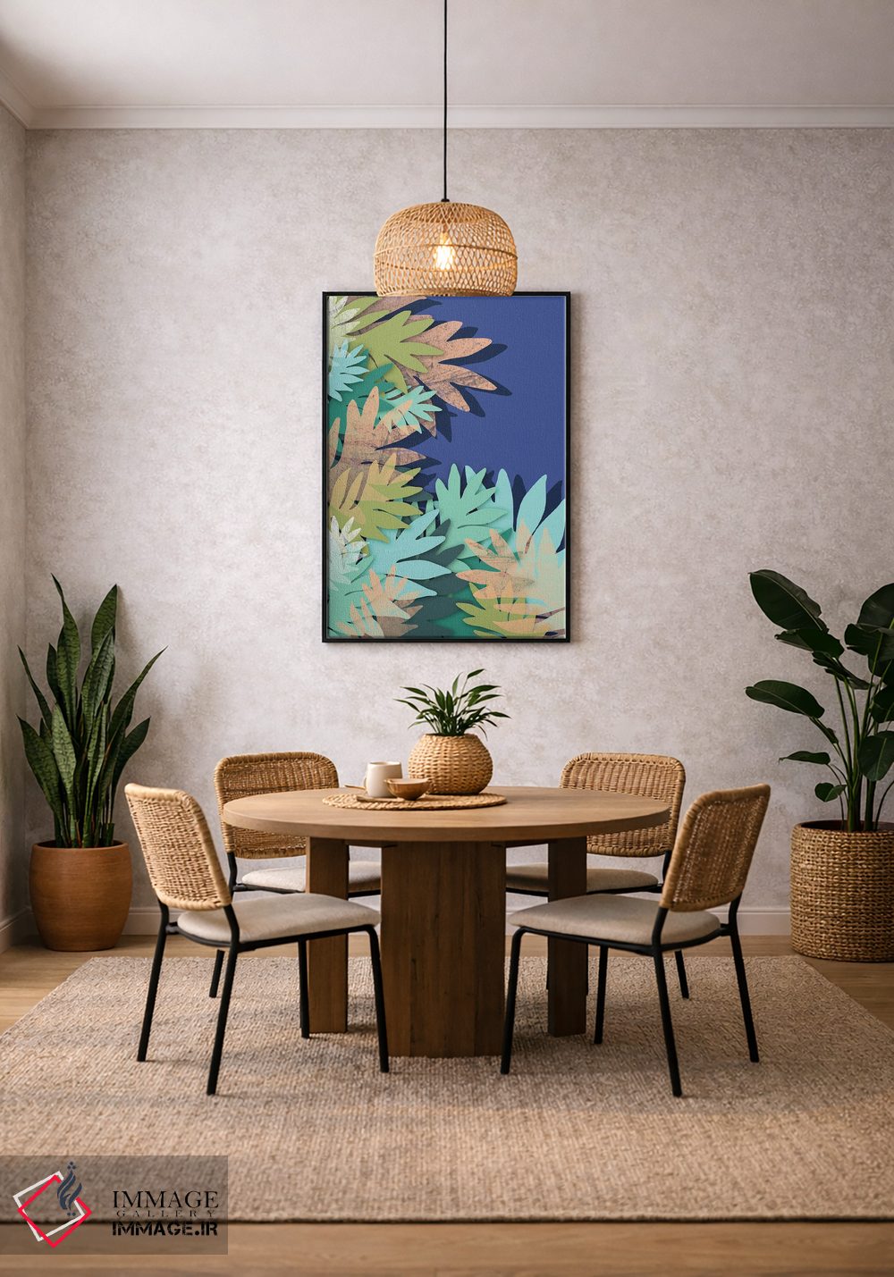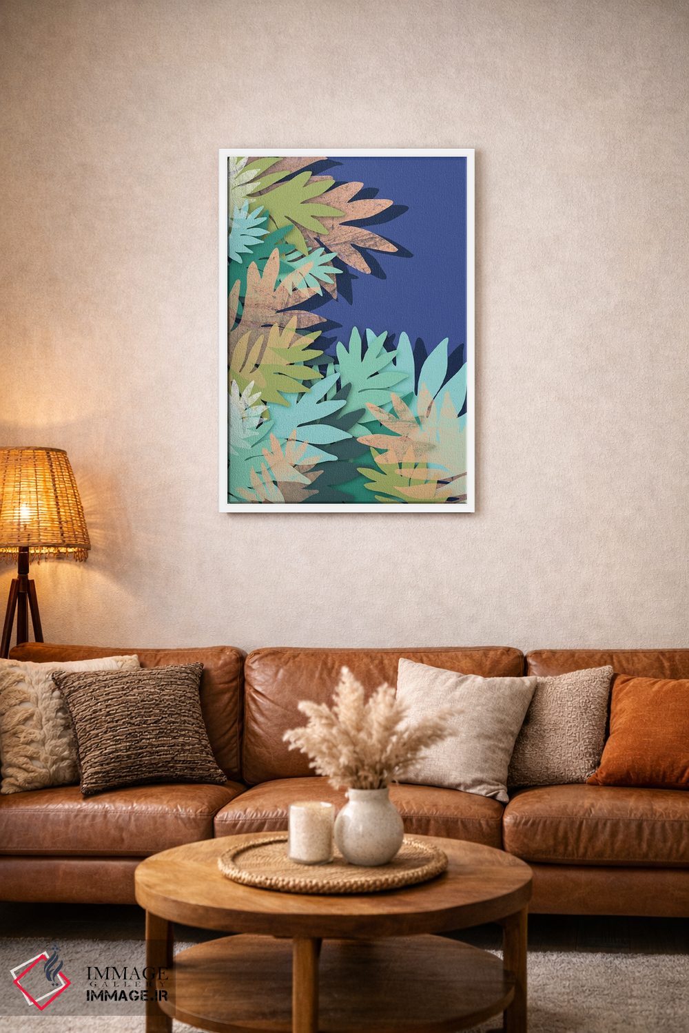 براساس پالت ترکیبی اثر، قاب تیک گرم (چوبی) پیشنهاد اول است و مشکی مات (فریم متوسط) مکمل. برای سفارشهای پروژهای با ابعاد و قابهای اختصاصی با ایماژ در تماس باشید.