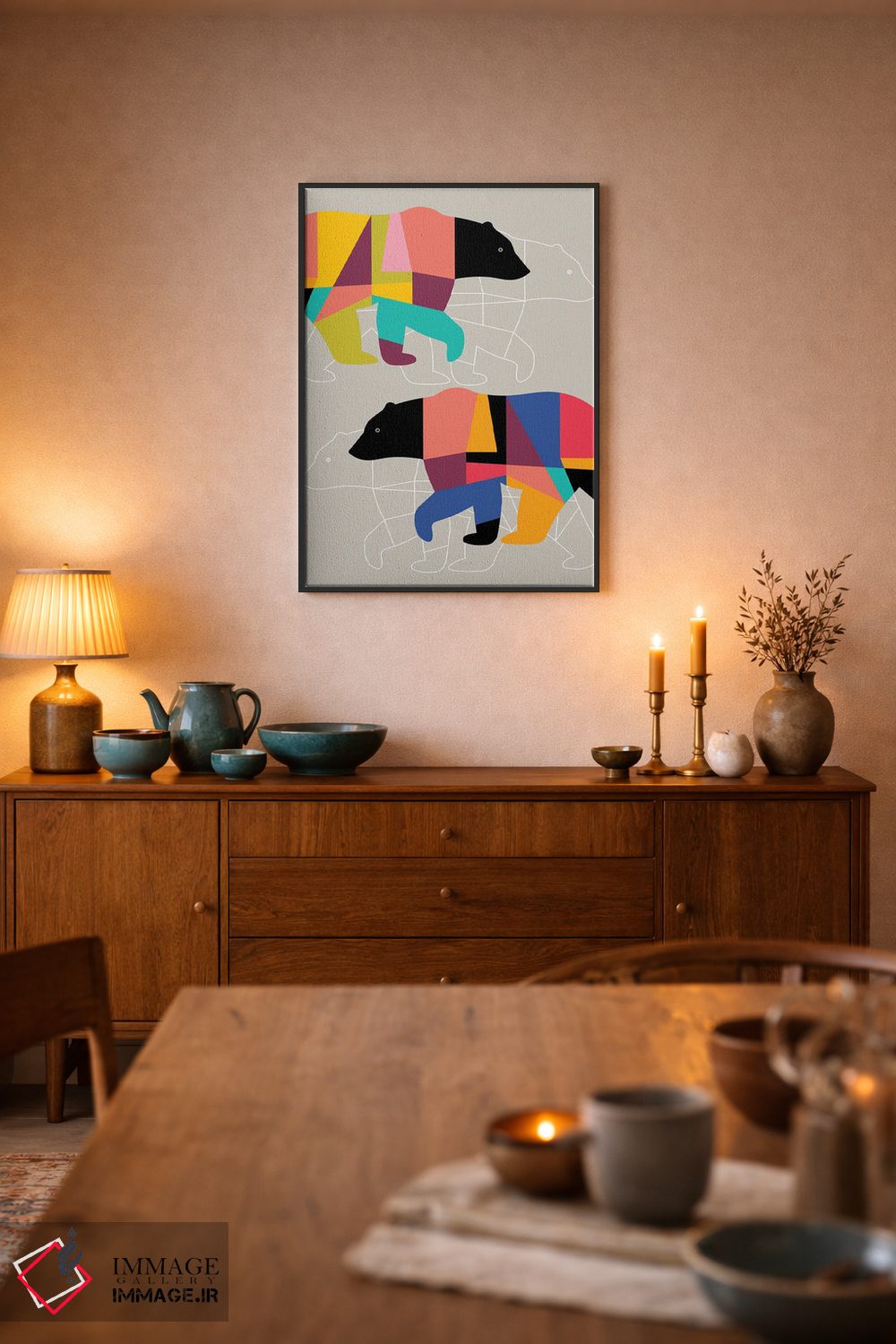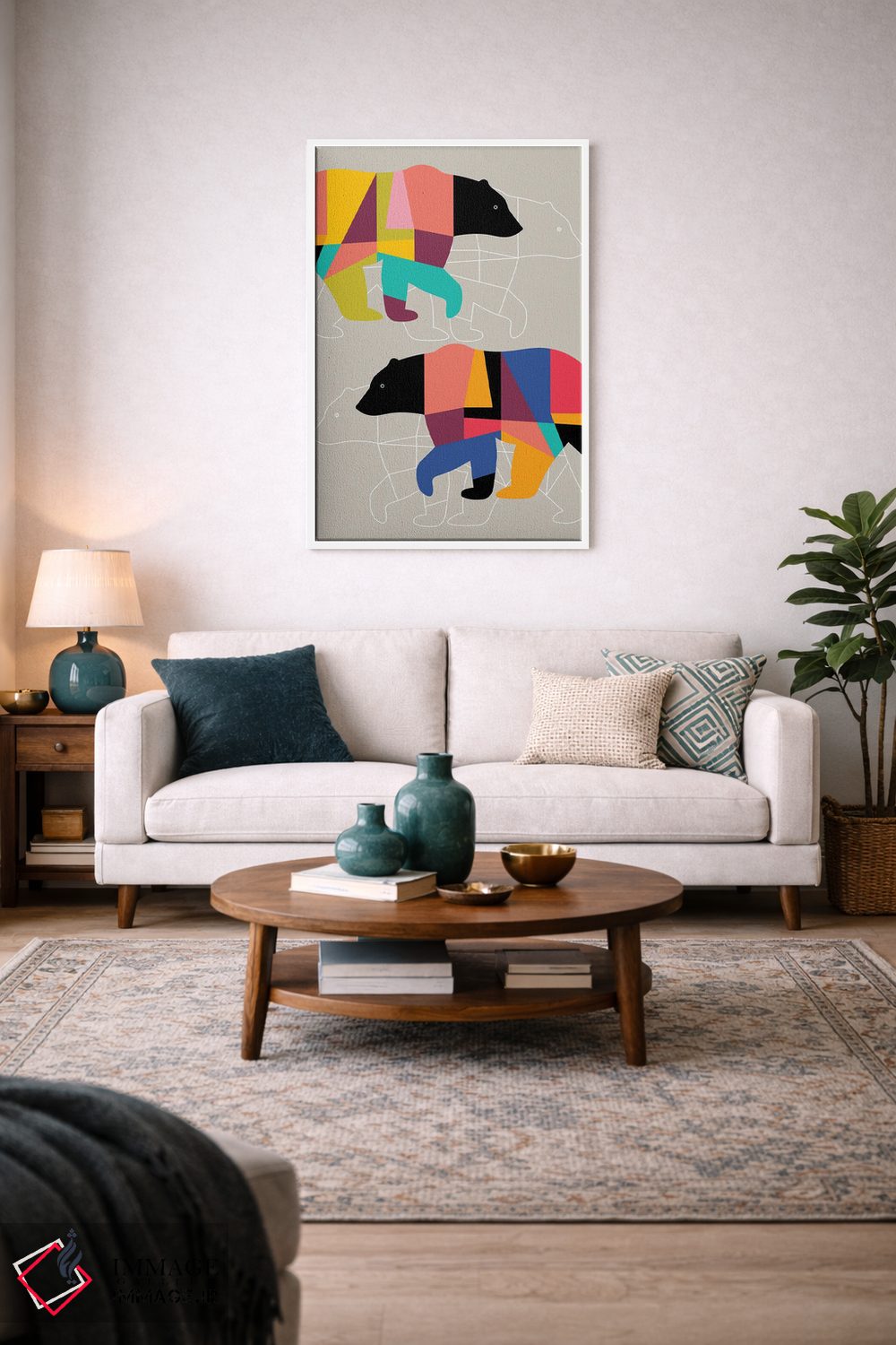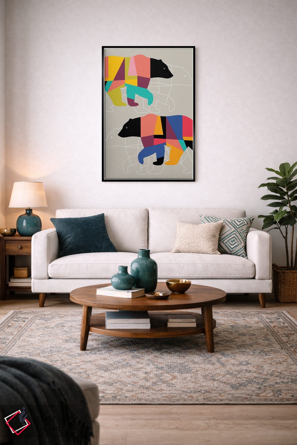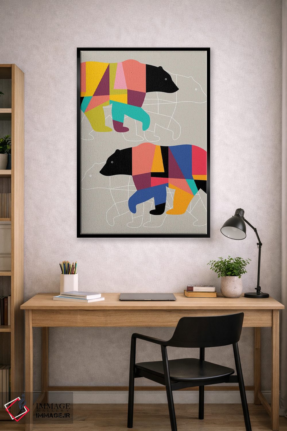 تابلو مدرن خرس های دوقلو اثر سوزانا پاز - نمای روبه‌رو روی دیوار