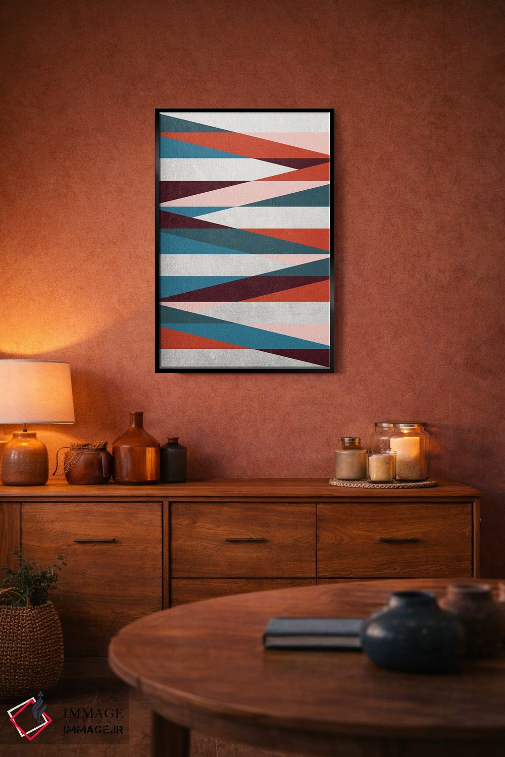 براساس پالت ترکیبی اثر، قاب تیک گرم (چوبی) پیشنهاد اول است و مشکی مات (فریم متوسط) مکمل. برای سفارشهای پروژهای با ابعاد و قابهای اختصاصی با ایماژ در تماس باشید.