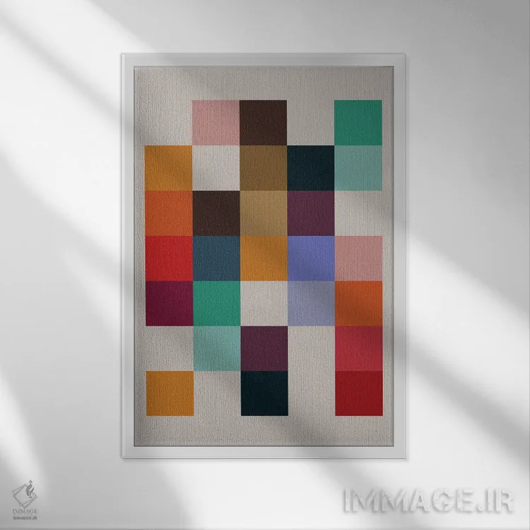 تابلو انتزاعی رترو ۷ اثر سوزانا پاز - نمای قاب‌دار سفید