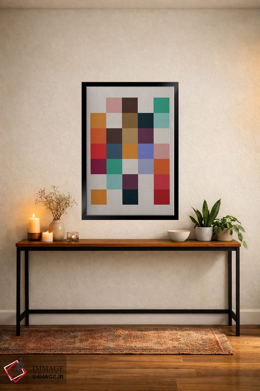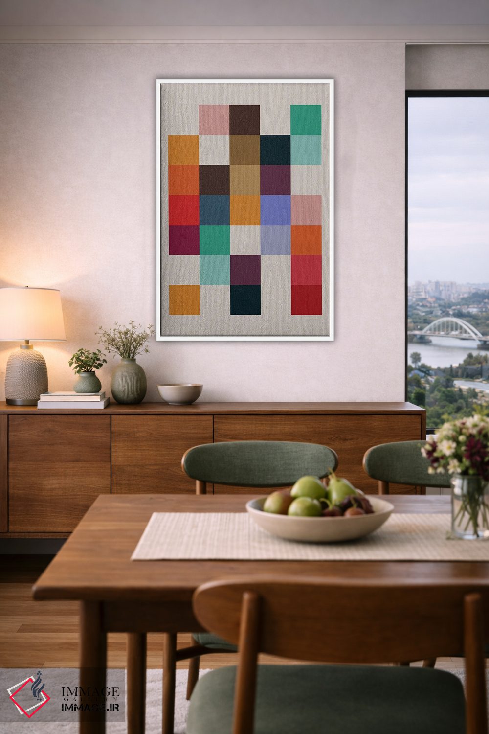 تابلو انتزاعی رترو ۷ اثر سوزانا پاز - نمای روبه‌رو روی دیوار