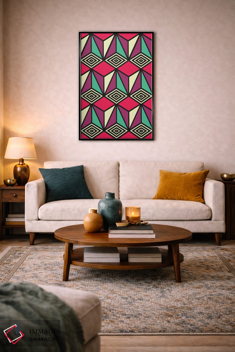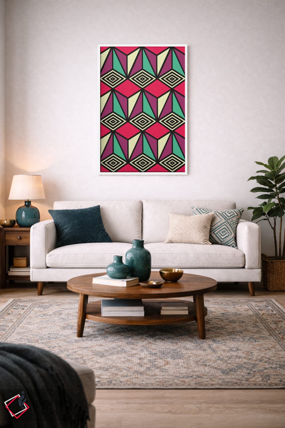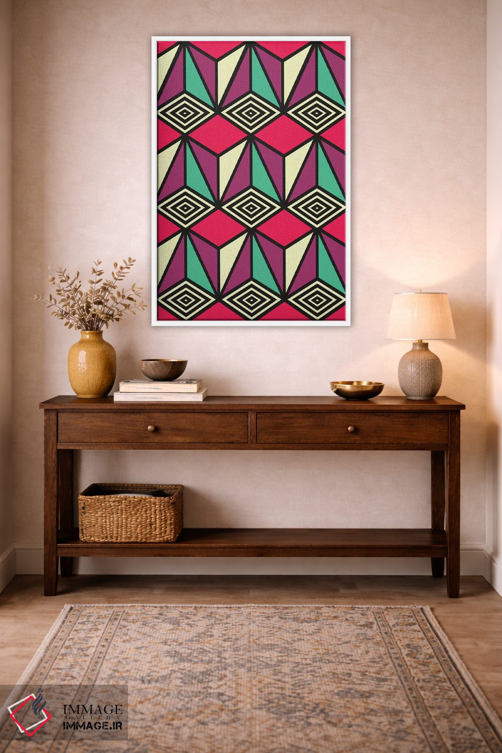 براساس پالت ترکیبی اثر، قاب تیک گرم (چوبی) پیشنهاد اول است و مشکی مات (فریم متوسط) مکمل. برای سفارشهای پروژهای با ابعاد و قابهای اختصاصی با ایماژ در تماس باشید.