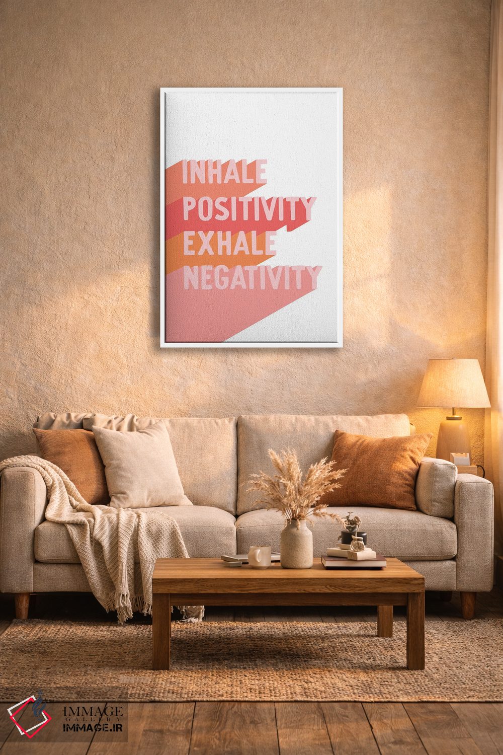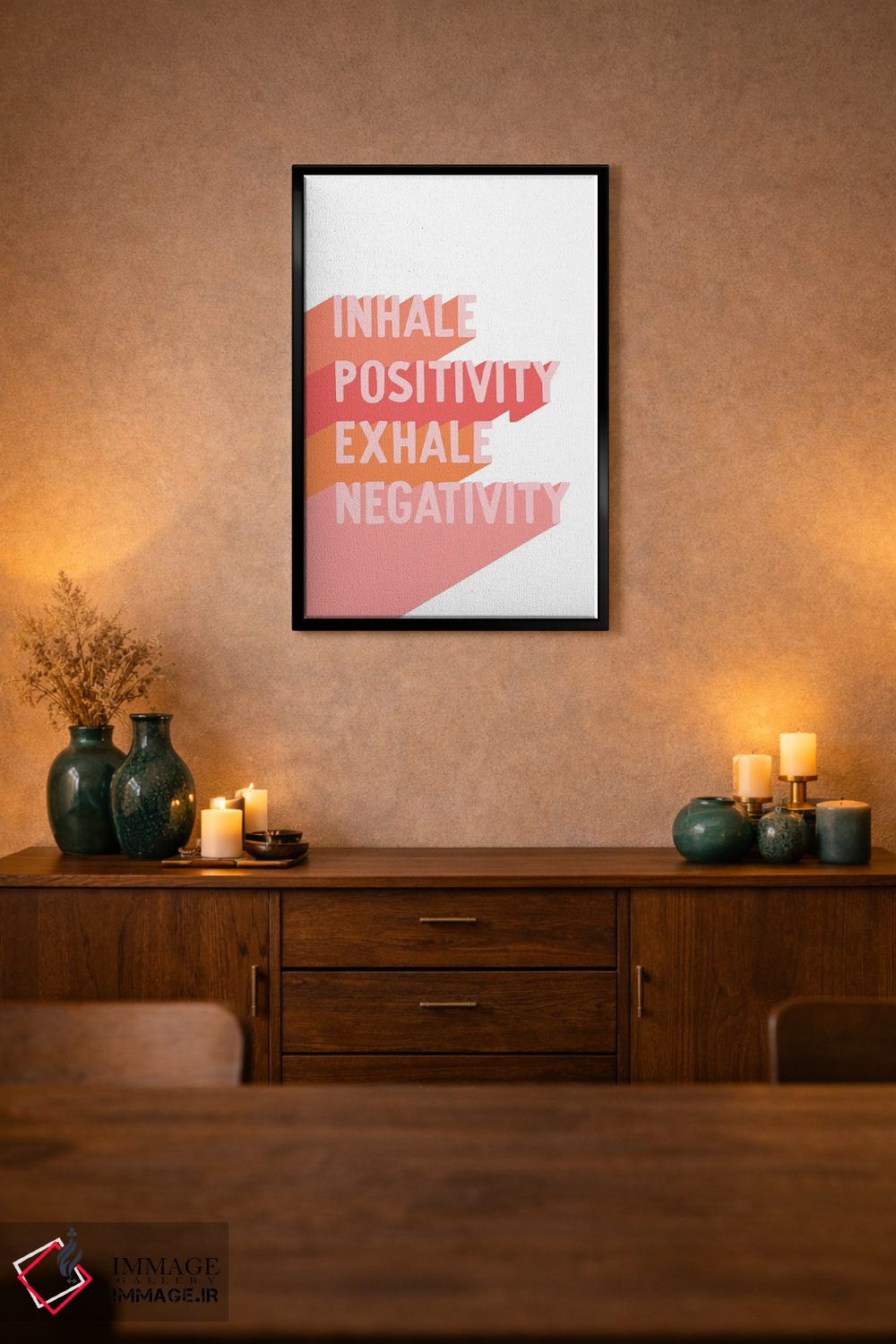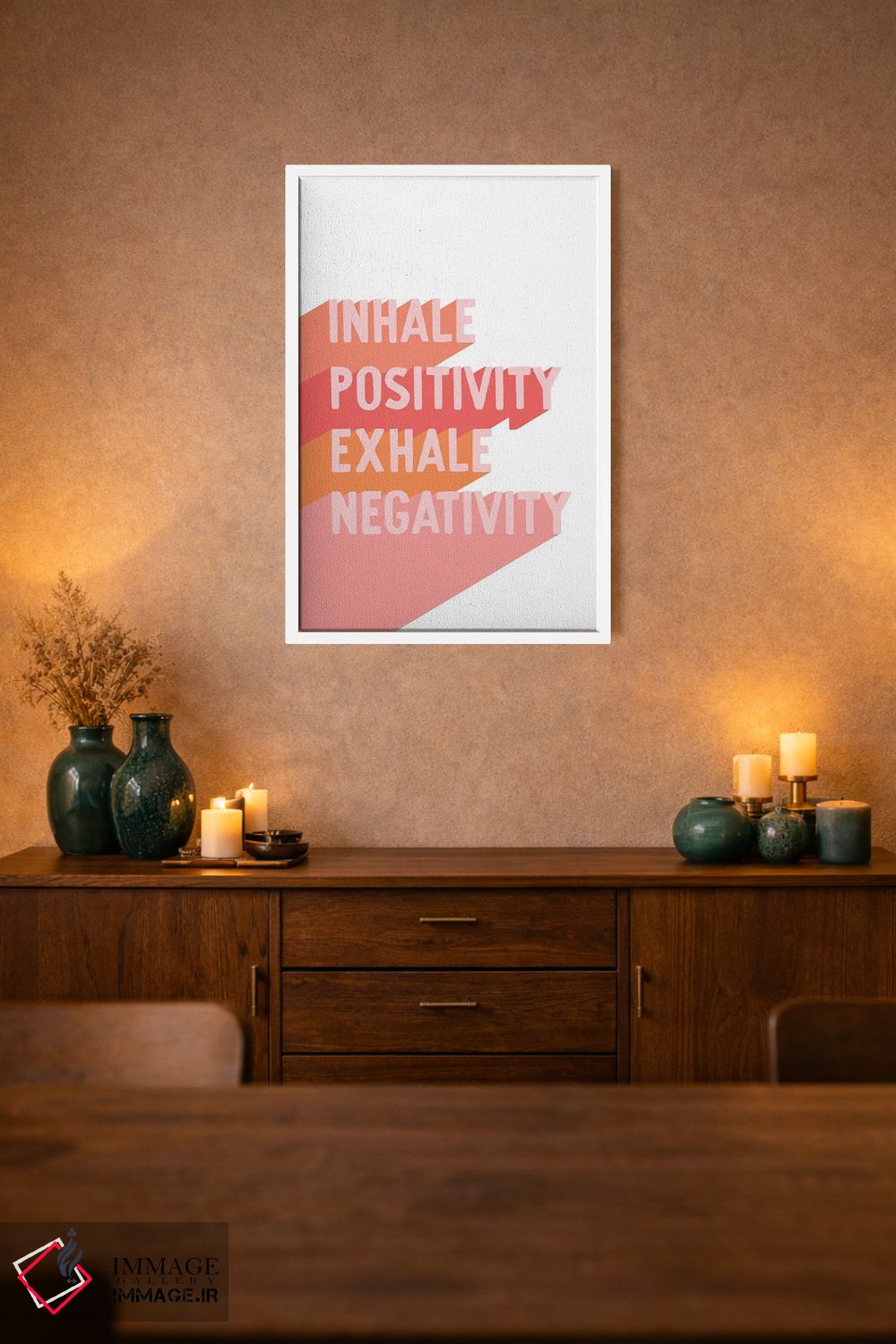 براساس پالت گرم اثر، قاب تیک گرم (چوبی) پیشنهاد اول است و مشکی مات (فریم متوسط) مکمل. برای سفارشهای پروژهای با ابعاد و قابهای اختصاصی با ایماژ در تماس باشید.