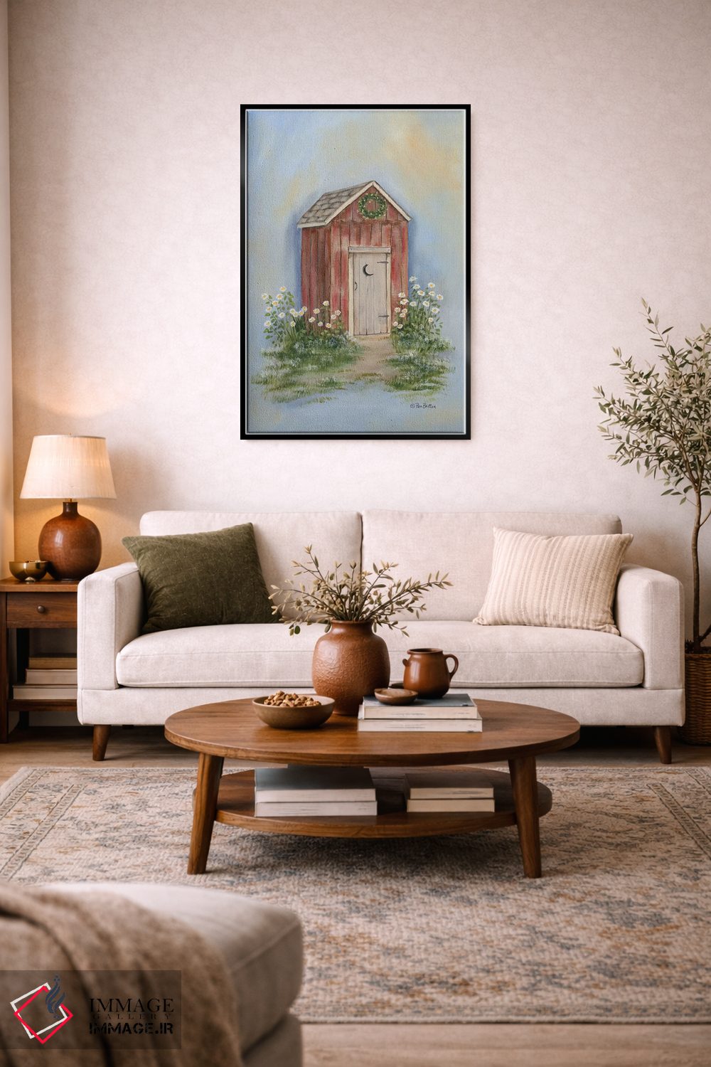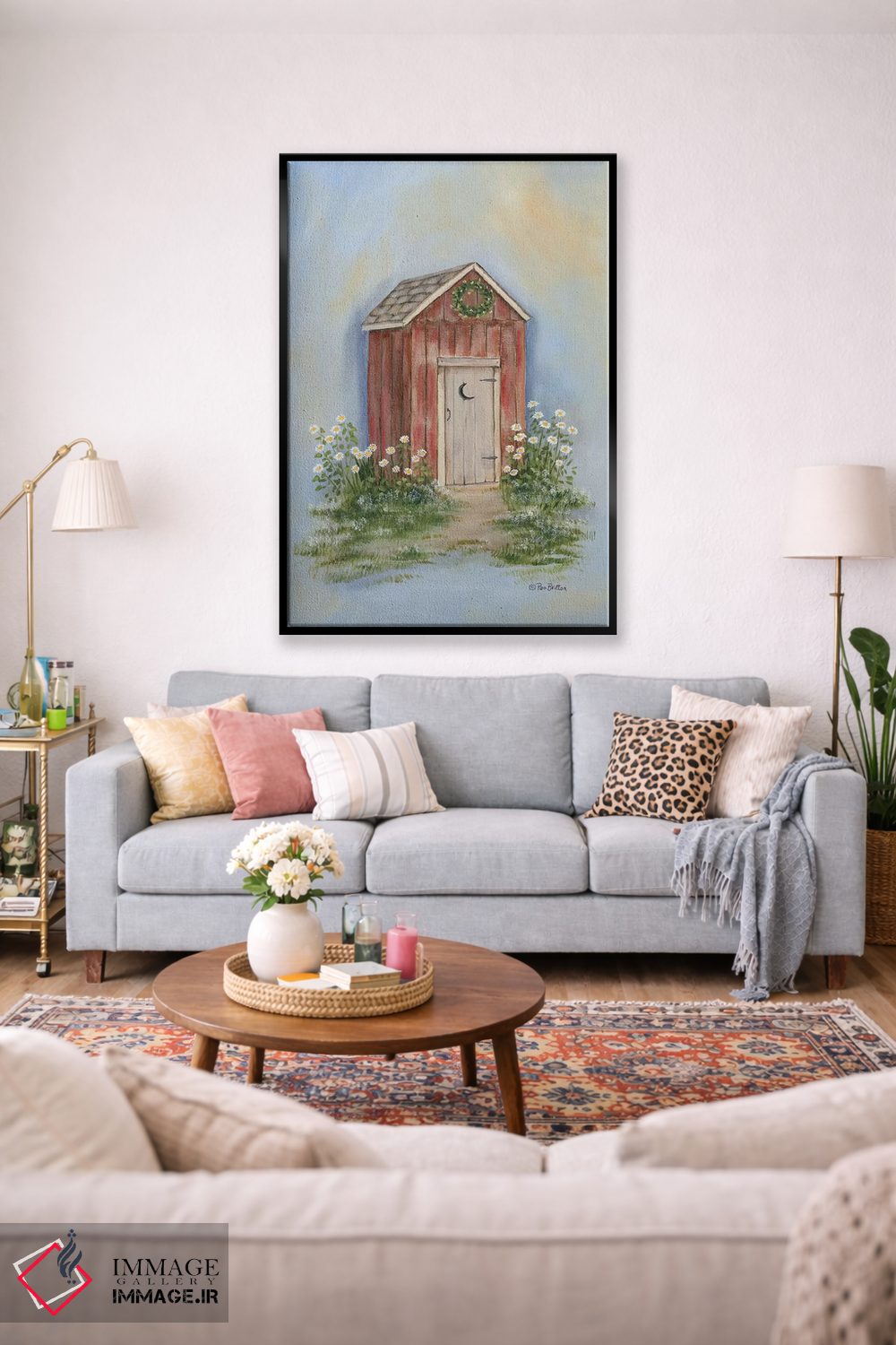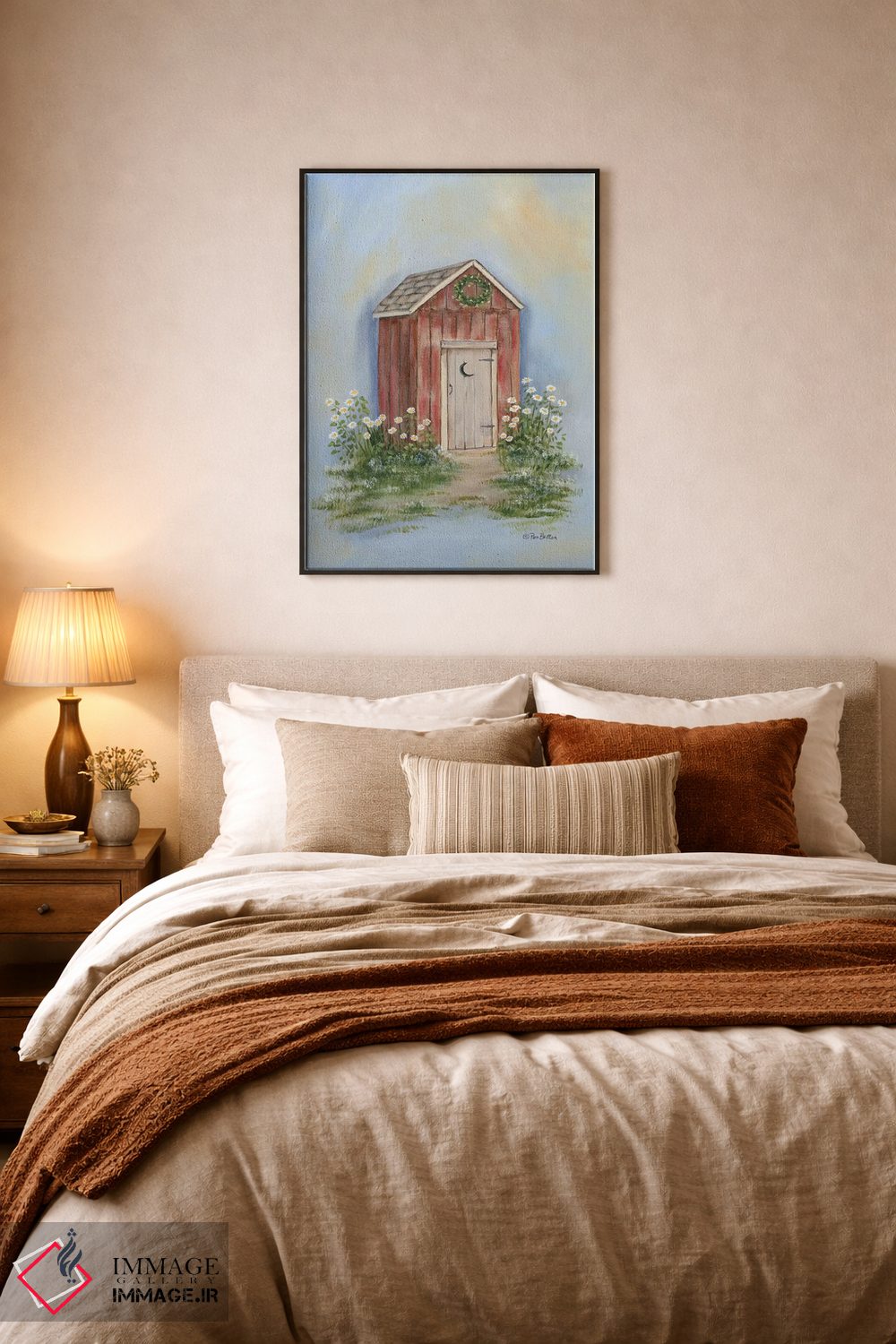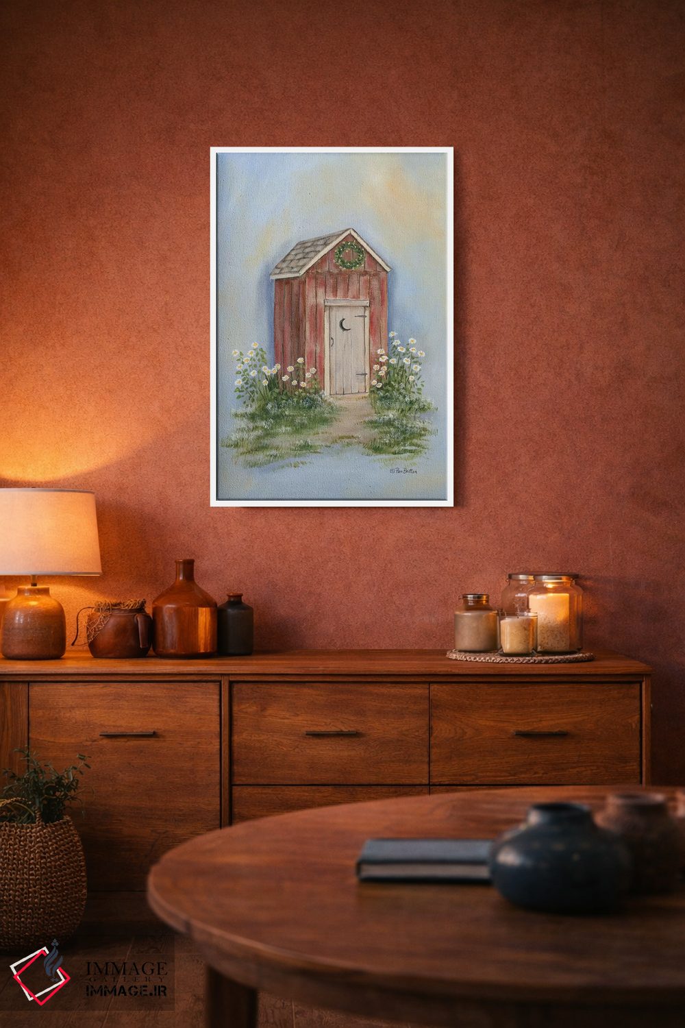 «توالت بیرونی روستایی ۲» اثرِ «پم بریتون» میتواند یک زیباییِ دقیق و حرفهای بسازد؛ برای لابی و فضاهای رسمی پیشنهاد شود. برای دیوار گالری هم گزینهٔ خوبیست.