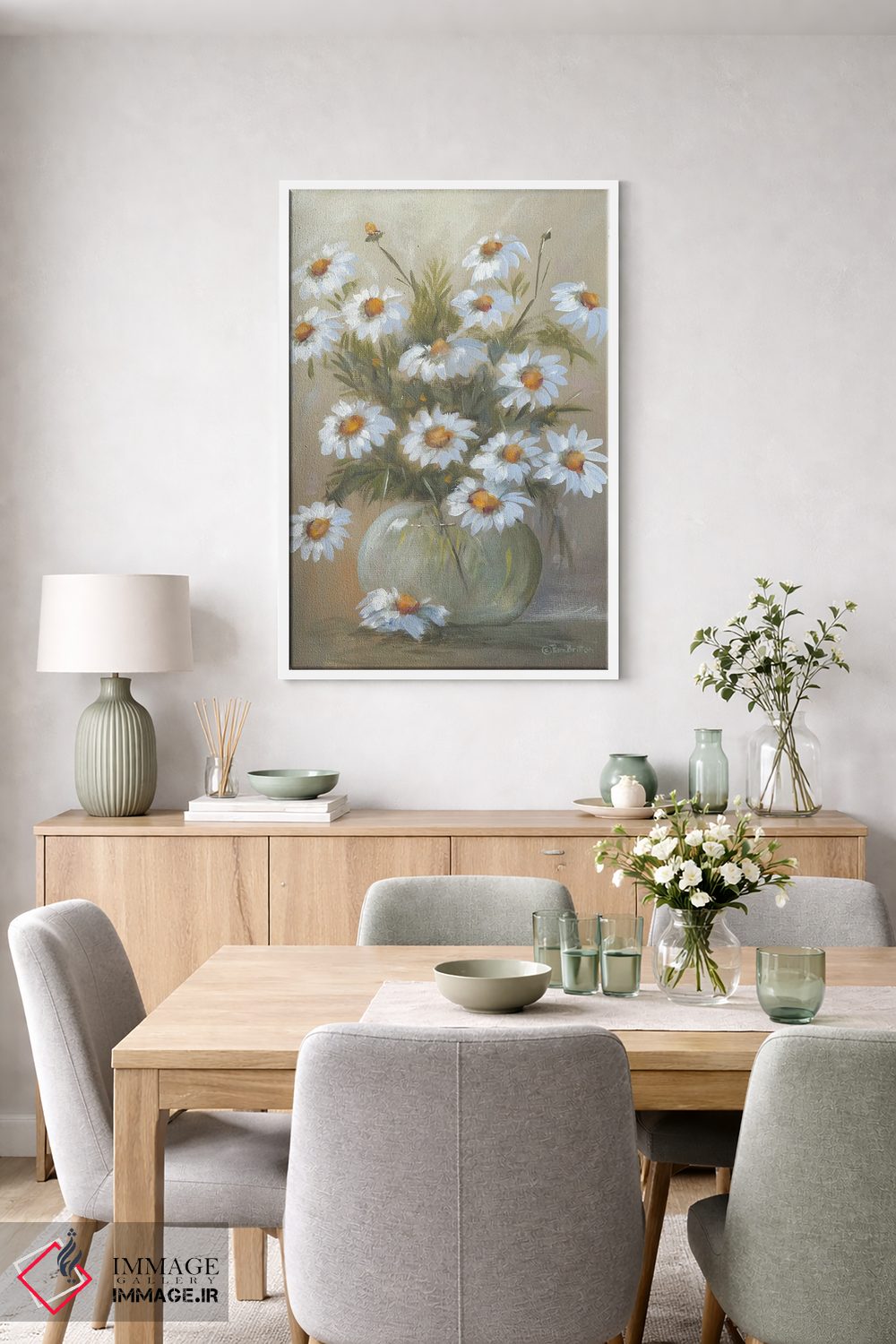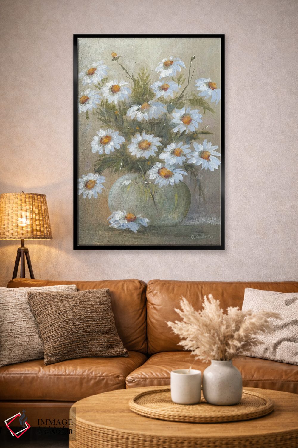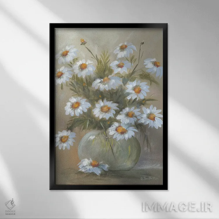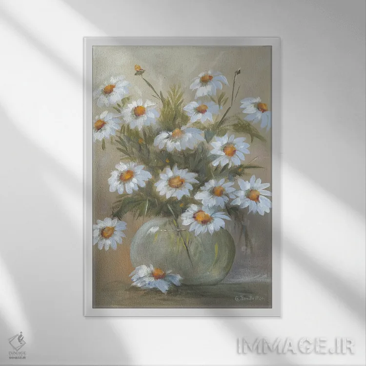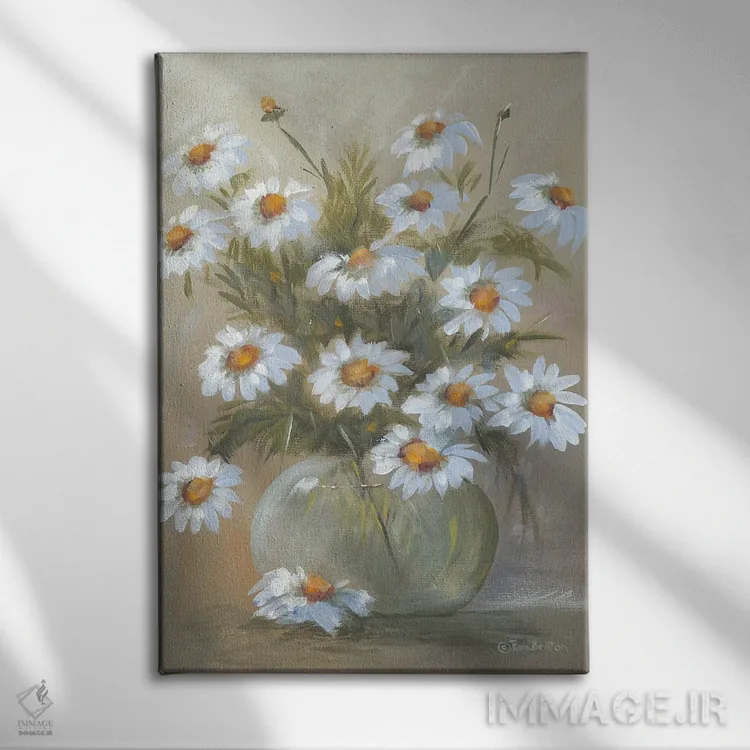 تابلو دکوراتیو کاسه ای پر از گل های بابونه اثر پم بریتون