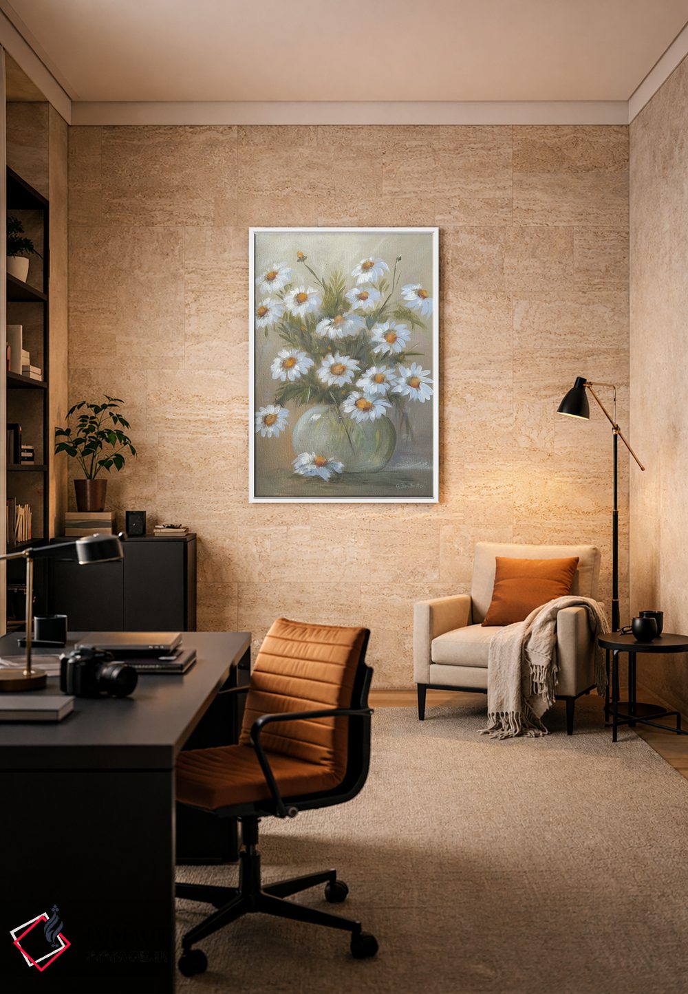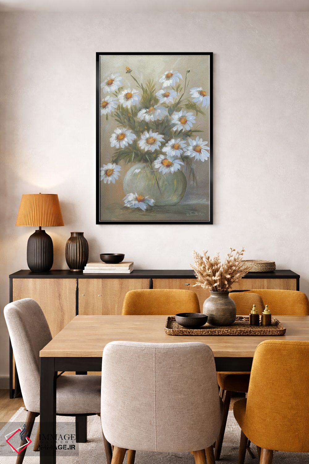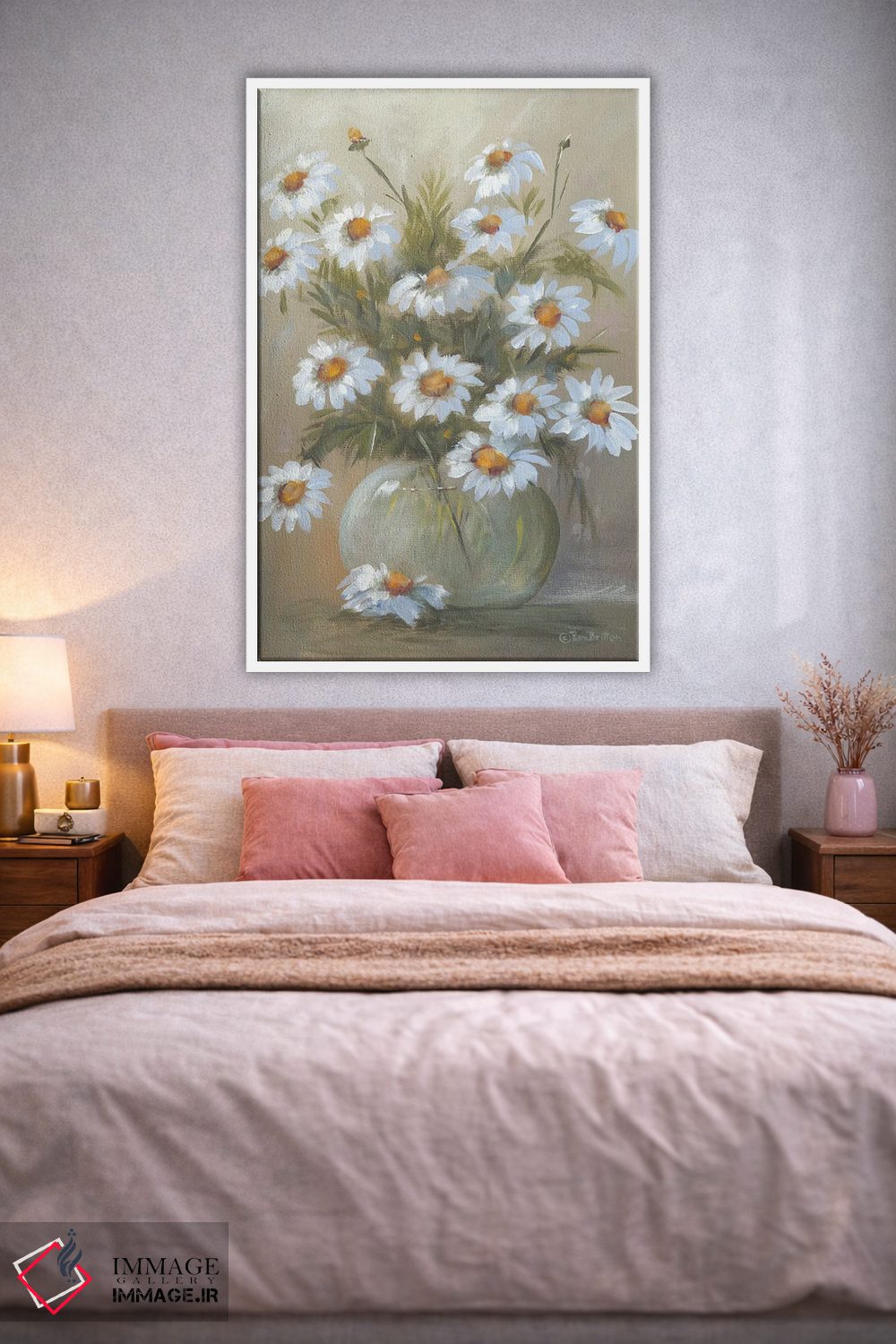 تابلو دکوراتیو کاسه ای پر از گل های بابونه اثر پم بریتون