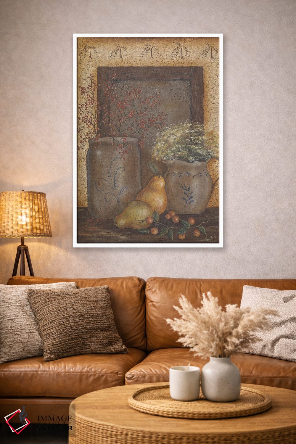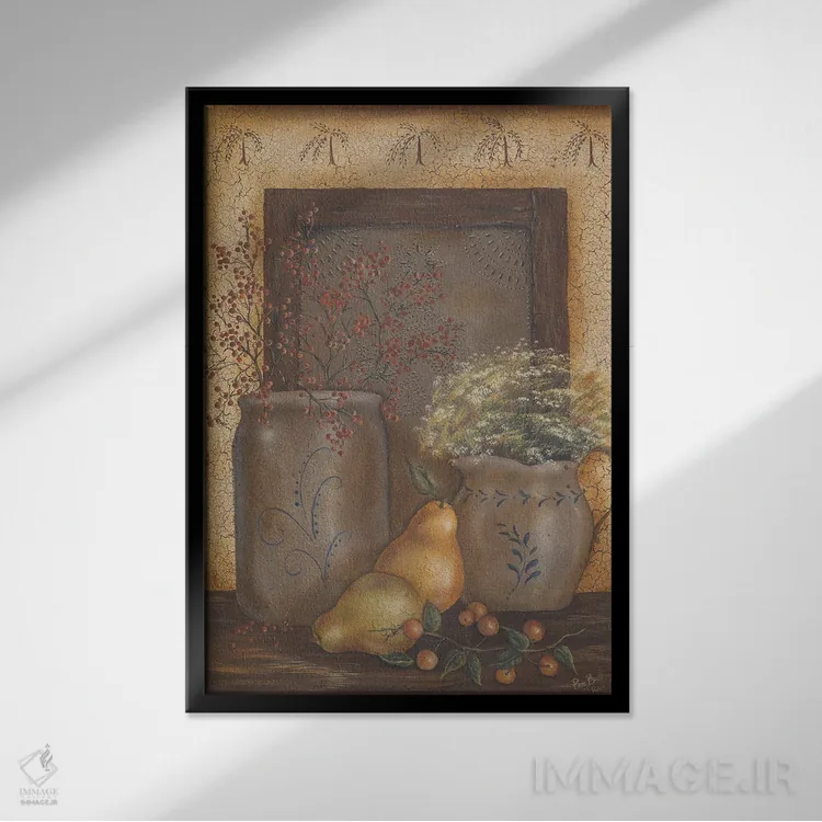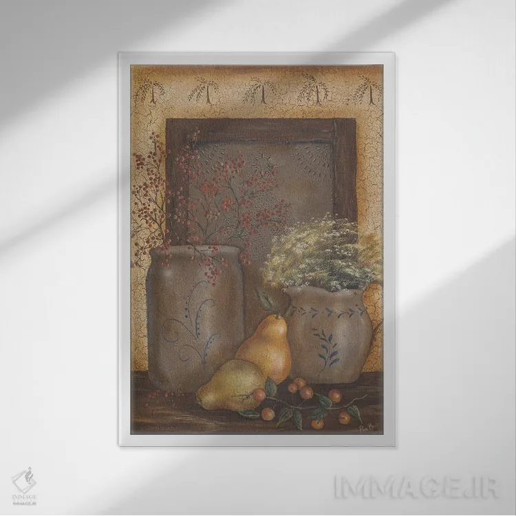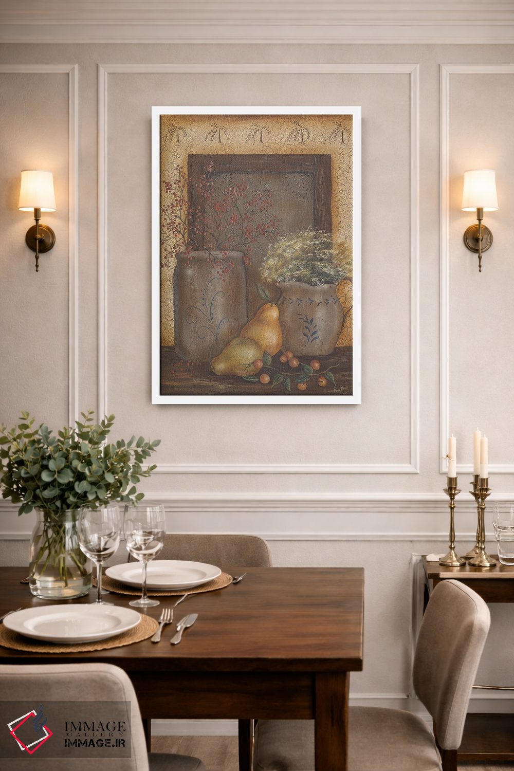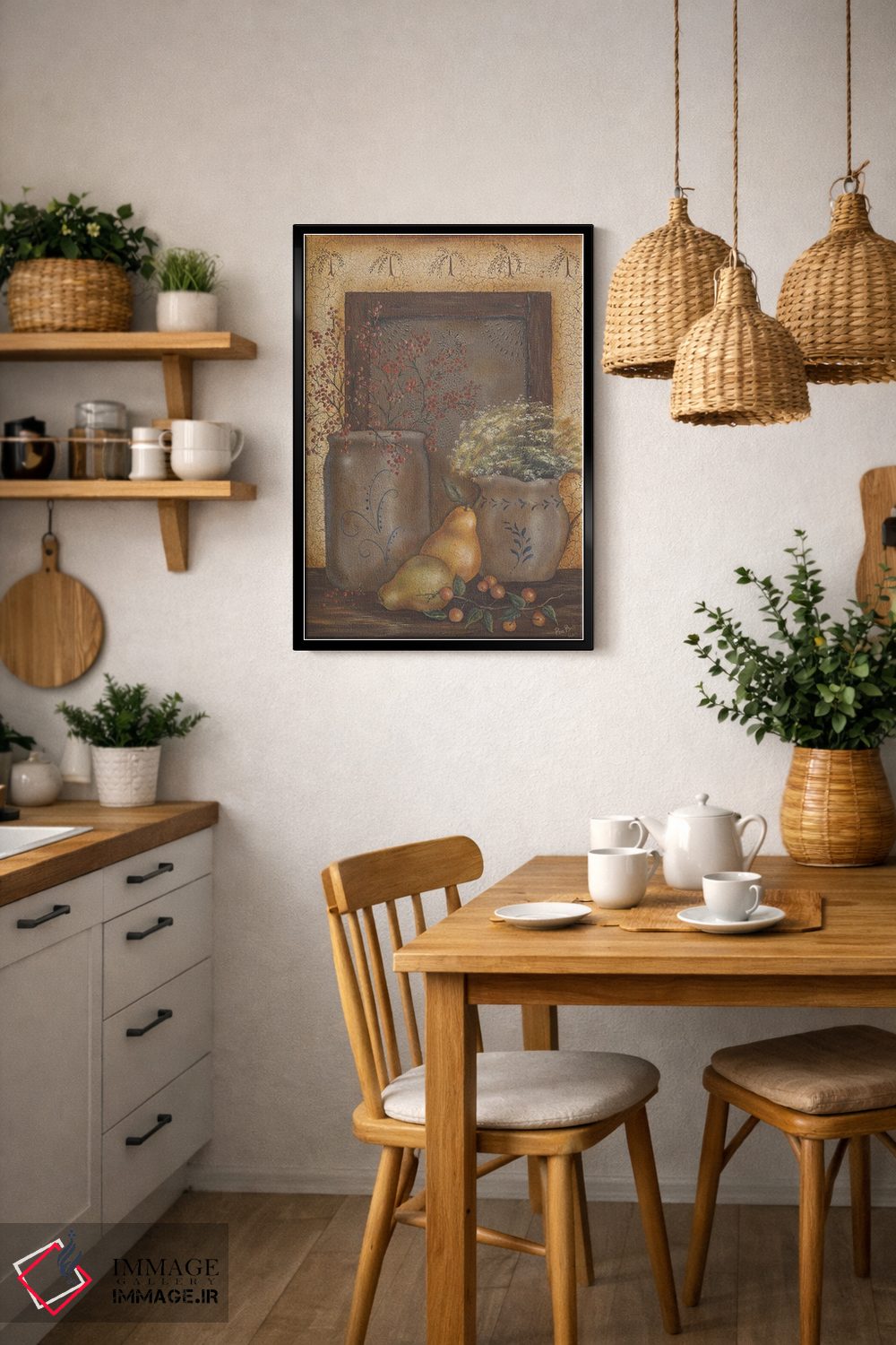 براساس پالت گرم اثر، قاب بلوط روشن (چوبی) پیشنهاد اول است و استخوانی ملایم مکمل. برای سفارشهای پروژهای با ابعاد و قابهای اختصاصی با ایماژ در تماس باشید.