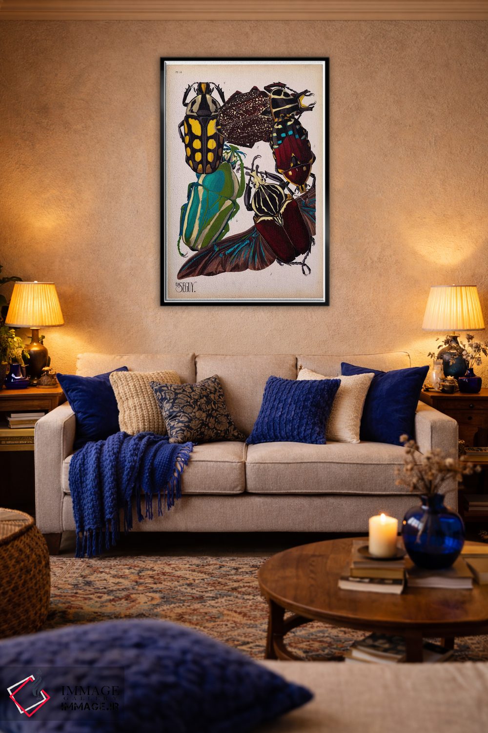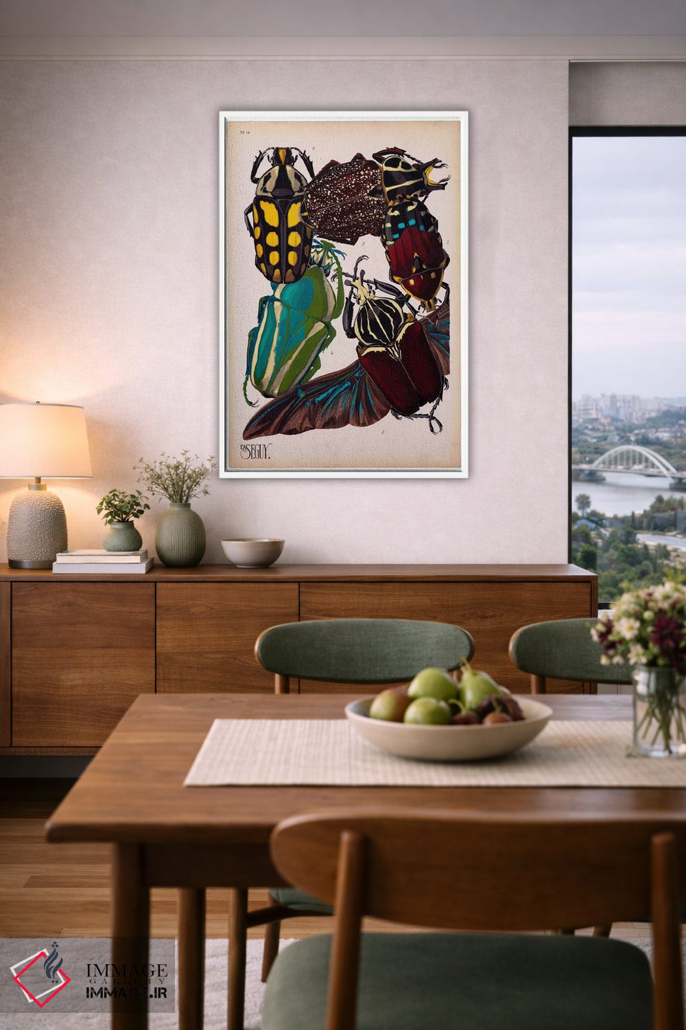اگر میخواهید دیوار کمی سرزندگیِ محترمانه داشته باشد، «حشرات، صفحه ۳ اثر ای.آ. سگوی» اثرِ «پرینت کالکشن (مجموعه چاپ هنری)» بافت و جزئیات را طوری نشان میدهد که نگاه میماند، برای دکورهای مدرن و مینیمال گزینهٔ مناسبیست. برای دیوار گالریوار هم گزینهٔ خوبیست.