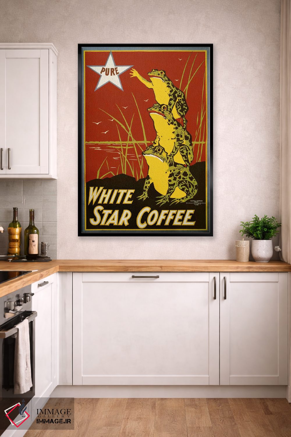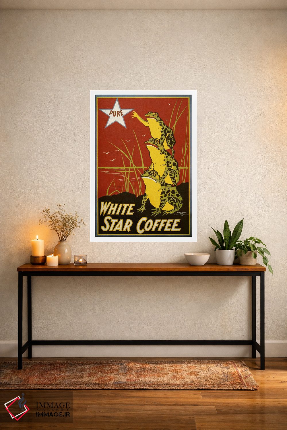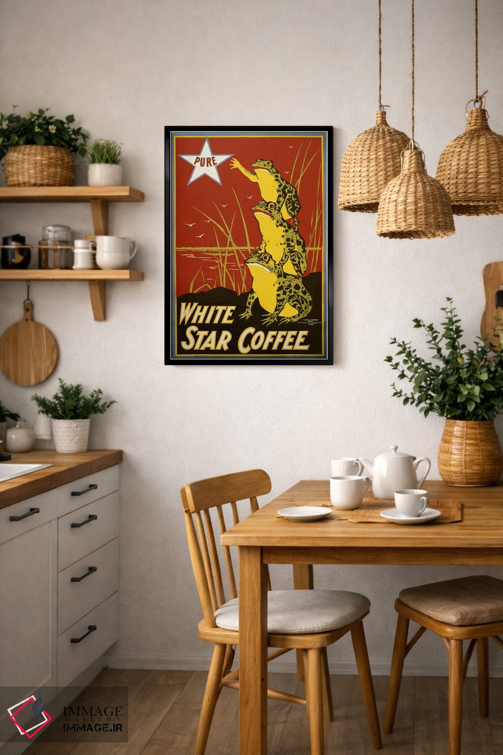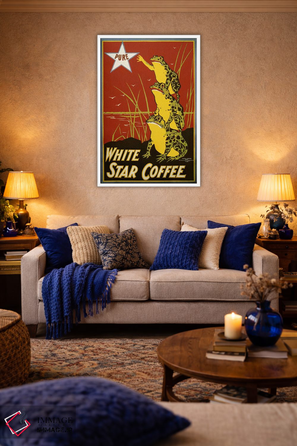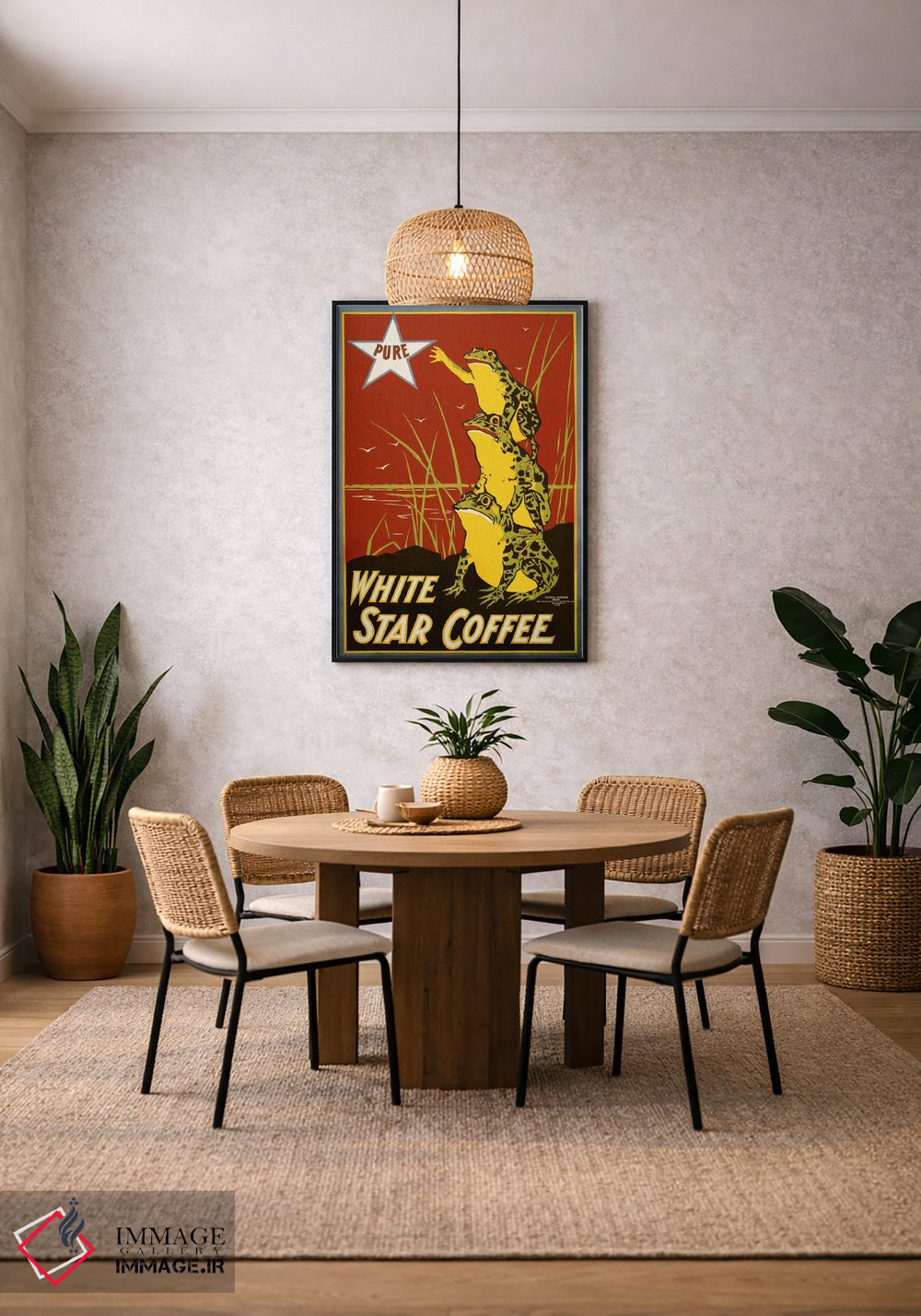 برای دیوارهای ساده، «قهوه ستاره سفید خالص، قورباغهها» اثرِ «پرینت کالکشن (مجموعه چاپ هنری)» به فضا، گرمیِ ملایم اضافه میکند؛ برای اتاق کودک (بدون لحن کودکانه) انتخابی خوشسلیقه است. هم فضا را گرم میکند، هم شلوغش نمیکند.