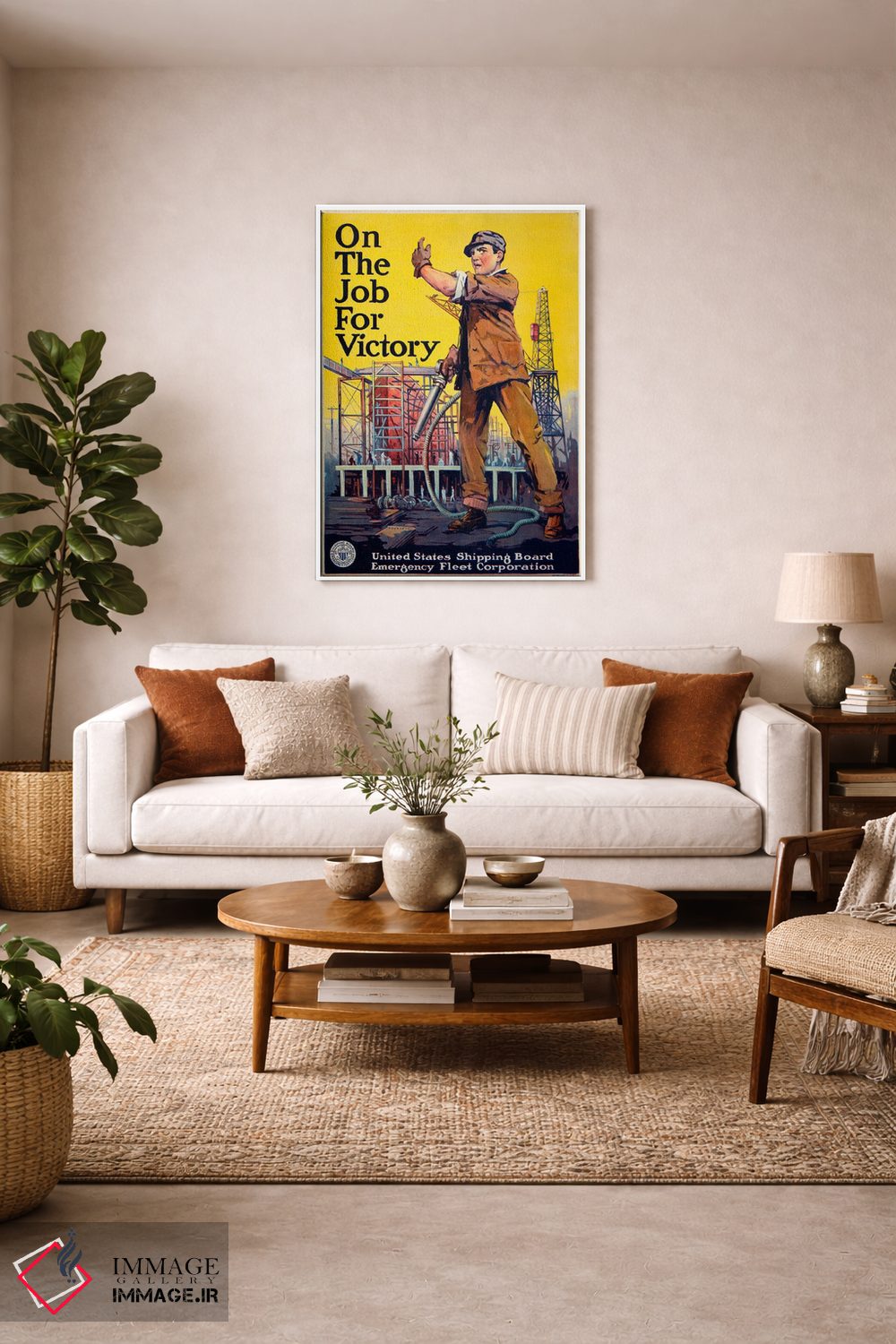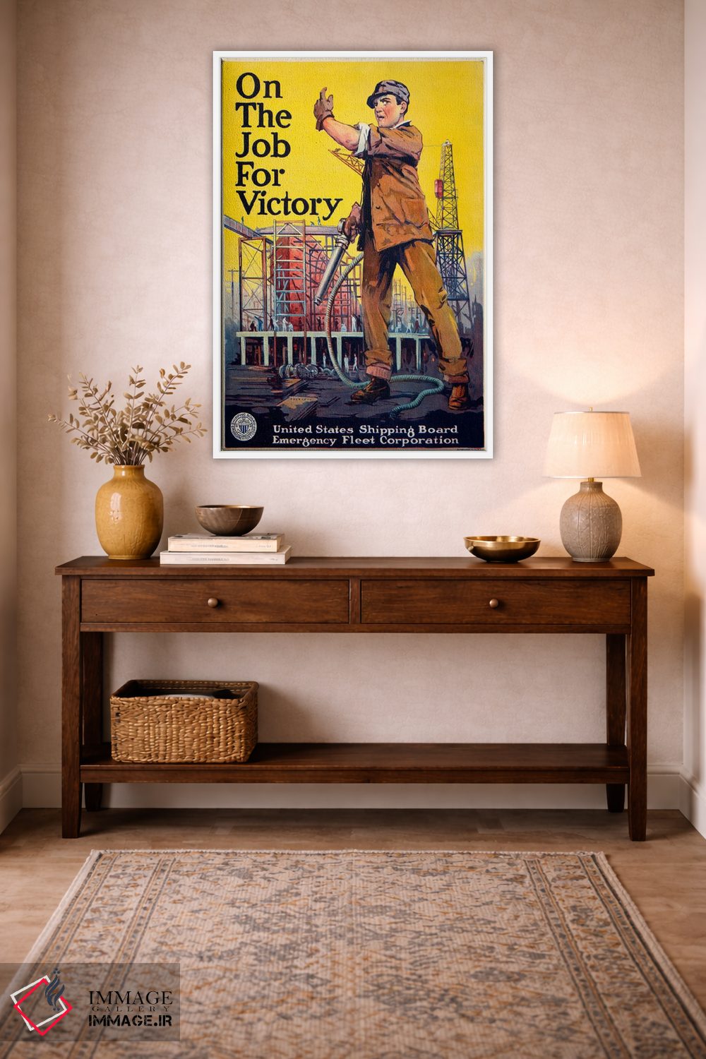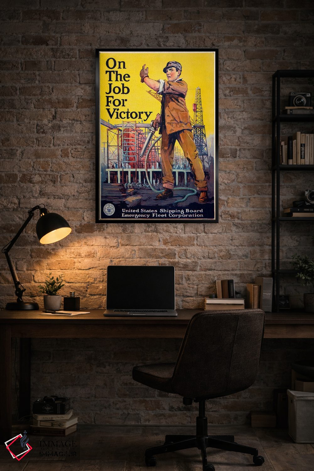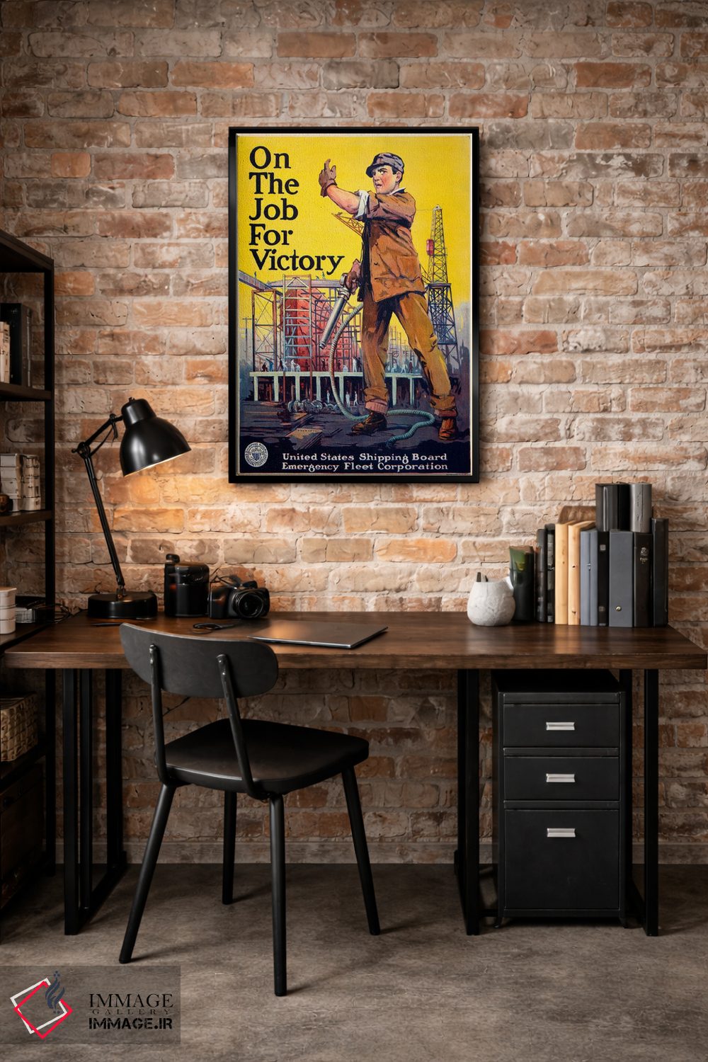 تابلو دکوراتیوِ «در حال کار برای پیروزی»؛ مناسب برای فضاهایی با چوب تیره، چراغهای گرم و اکسسوریهای کلاسیک اثرِ «پرینت کالکشن (مجموعه چاپ هنری)».