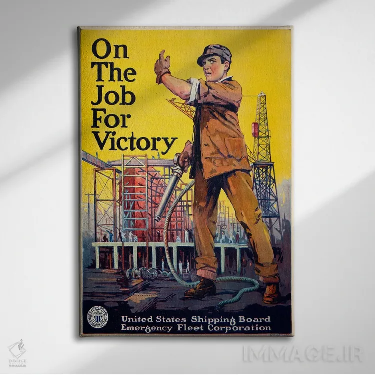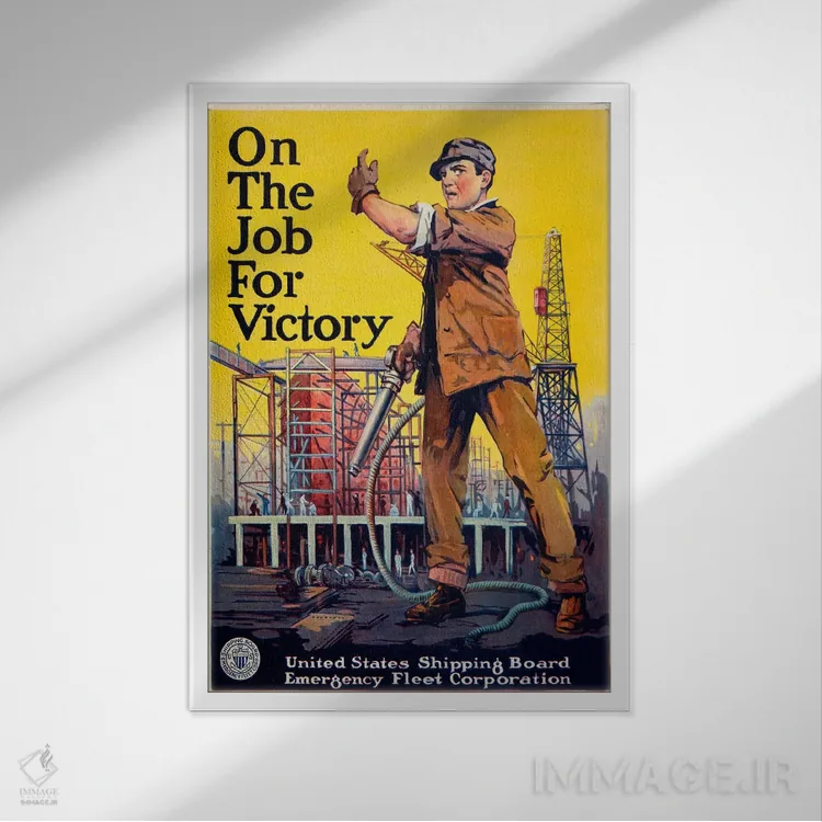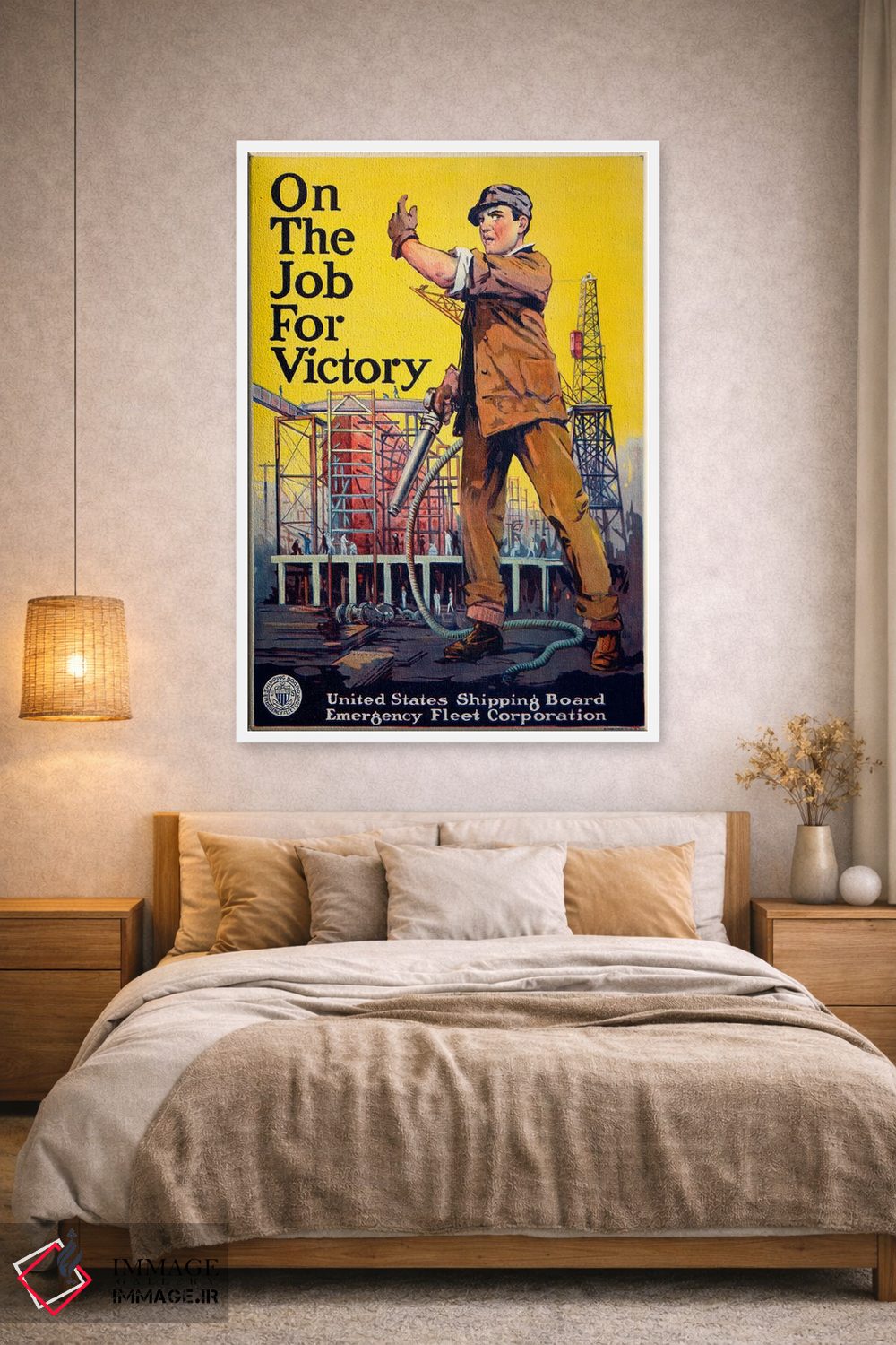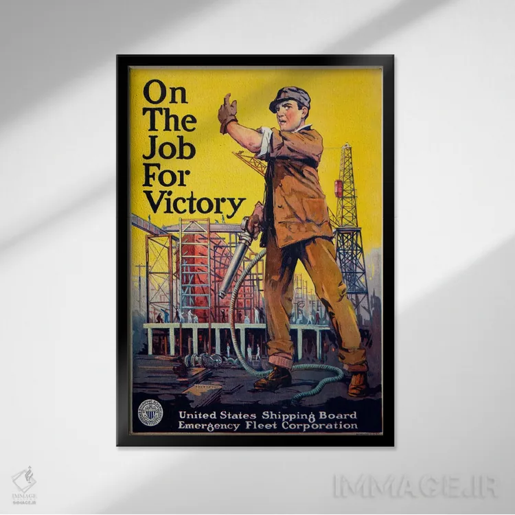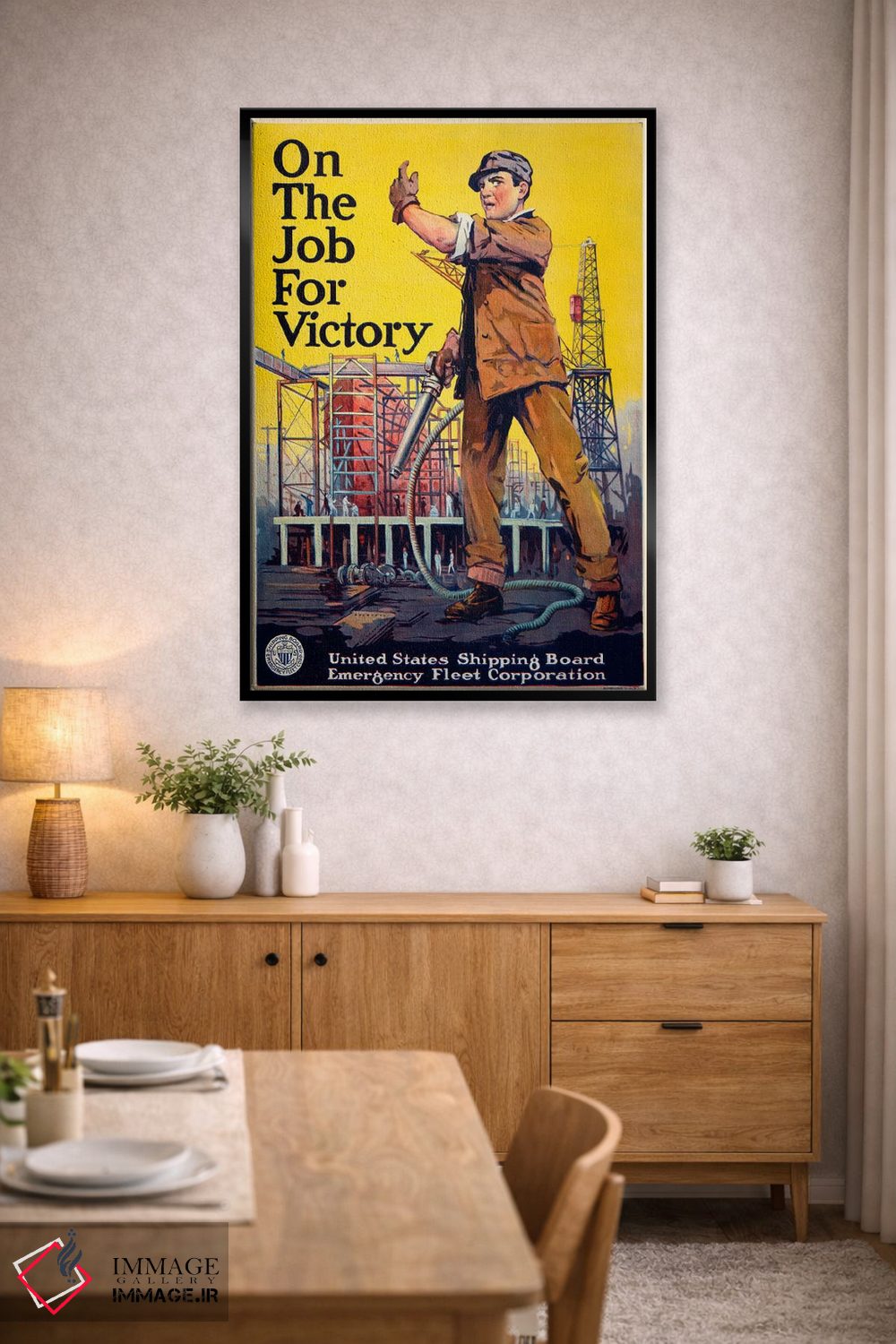 تابلو دکوراتیوِ «در حال کار برای پیروزی»؛ مناسب برای فضاهایی با چوب تیره، چراغهای گرم و اکسسوریهای کلاسیک اثرِ «پرینت کالکشن (مجموعه چاپ هنری)».