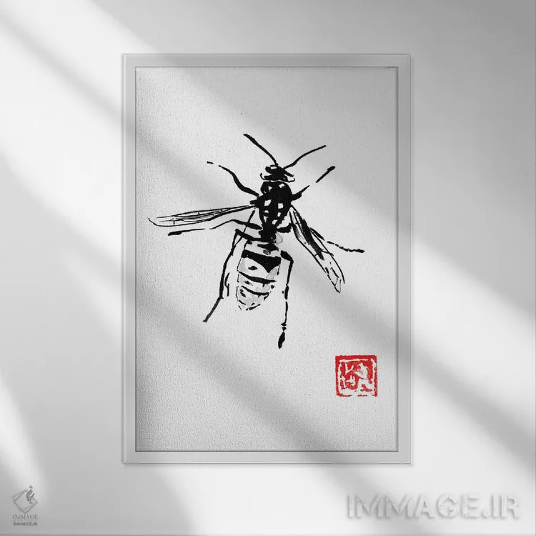 تابلو دکوراتیو زنبور اثر پشان - نمای قاب‌دار سفید