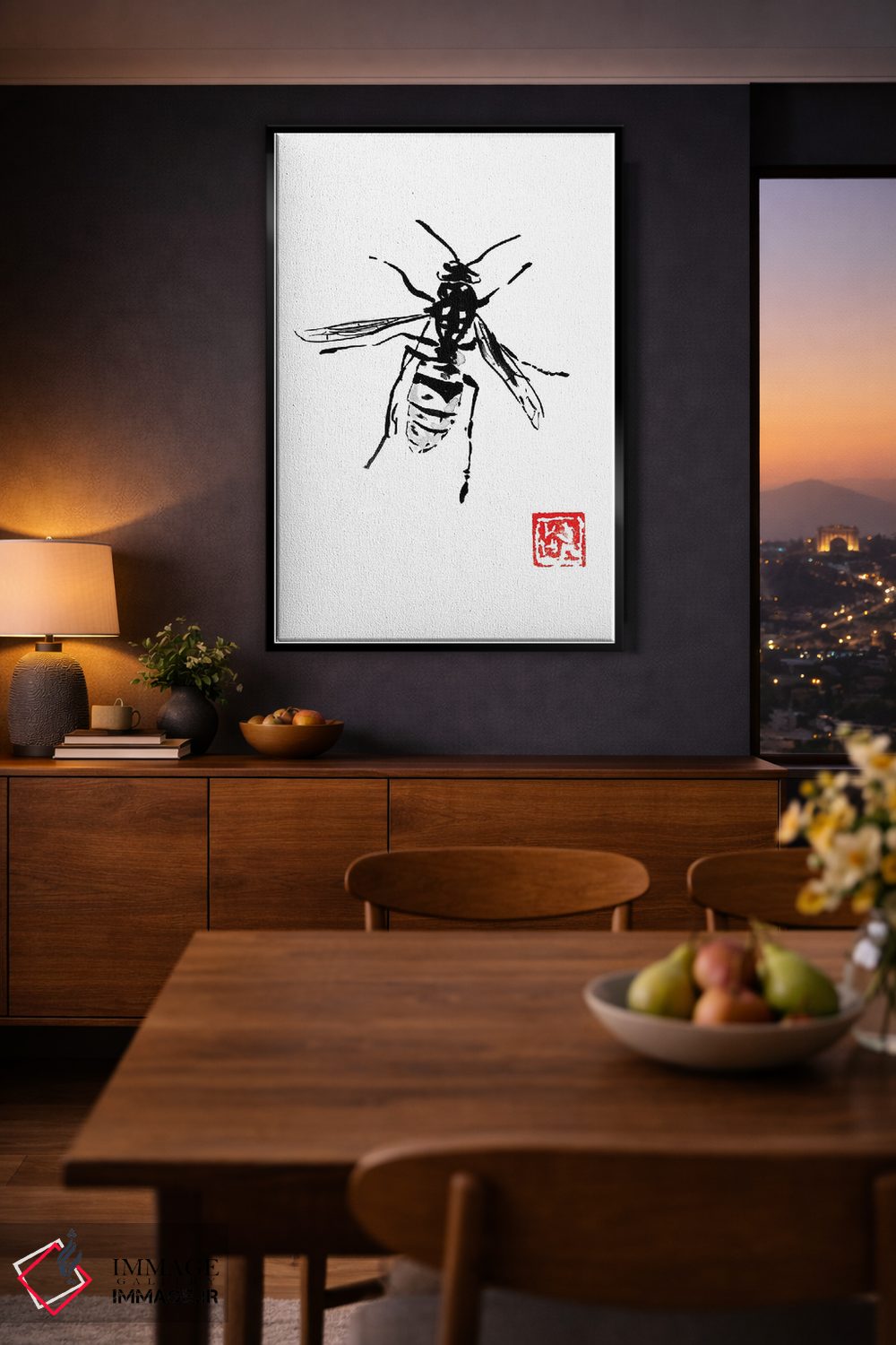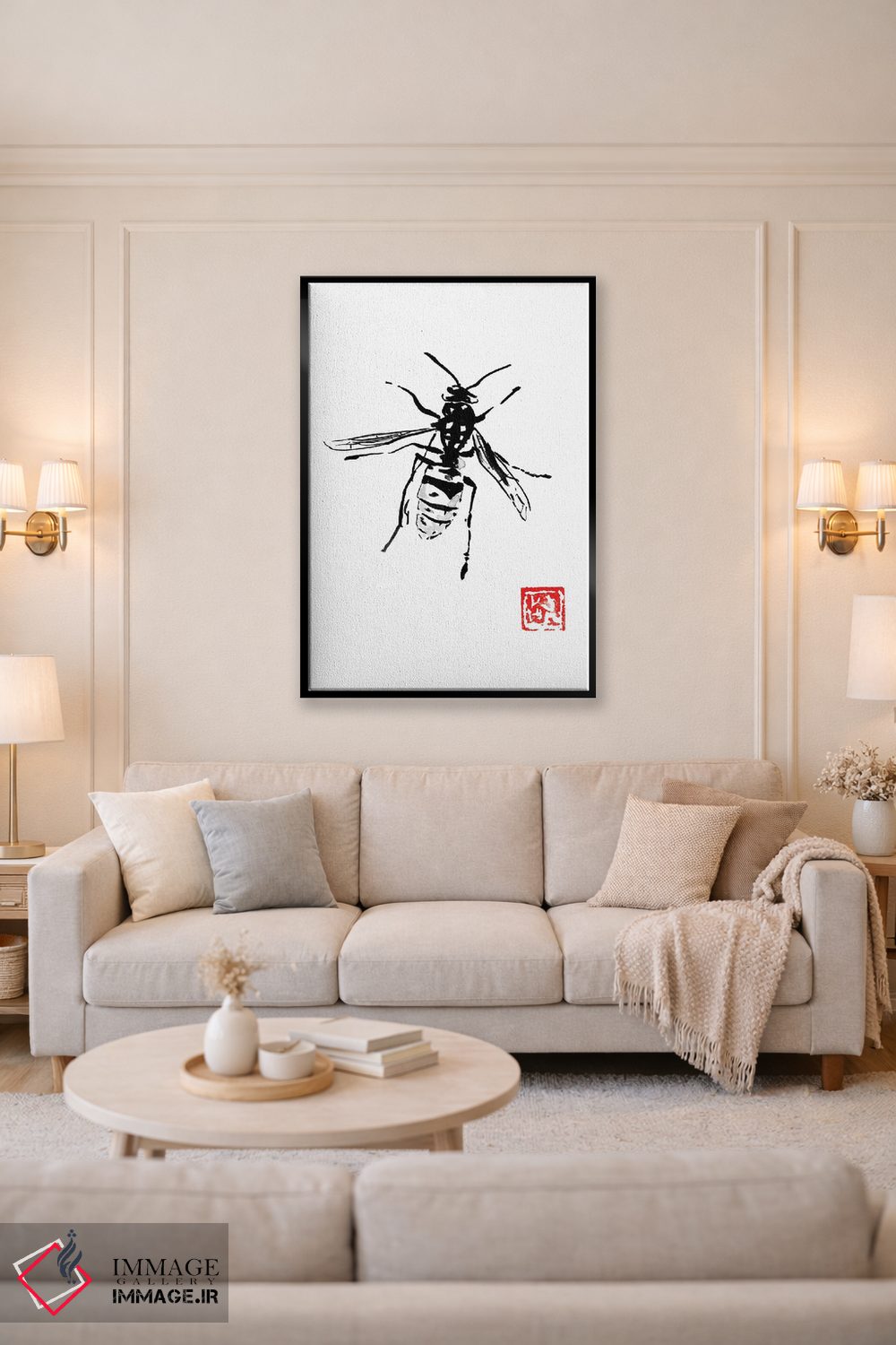 تابلو دکوراتیو زنبور اثر پشان - نمای روبه‌رو روی دیوار
