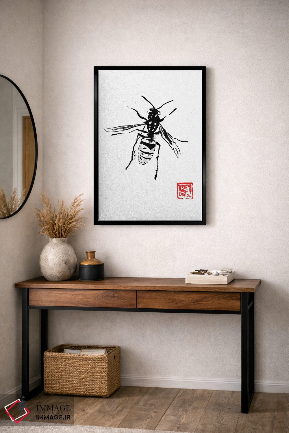 تابلو دکوراتیو زنبور اثر پشان - نمای قاب‌دار مشکی