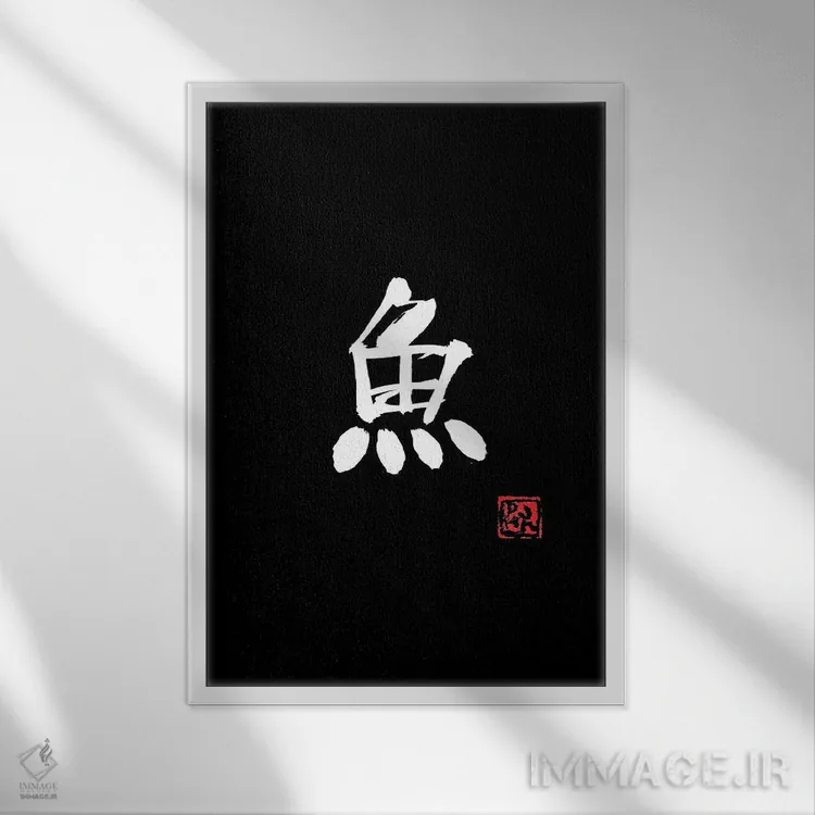 تابلو مینیمال ماهی اثر پشان - نمای قاب‌دار مشکی