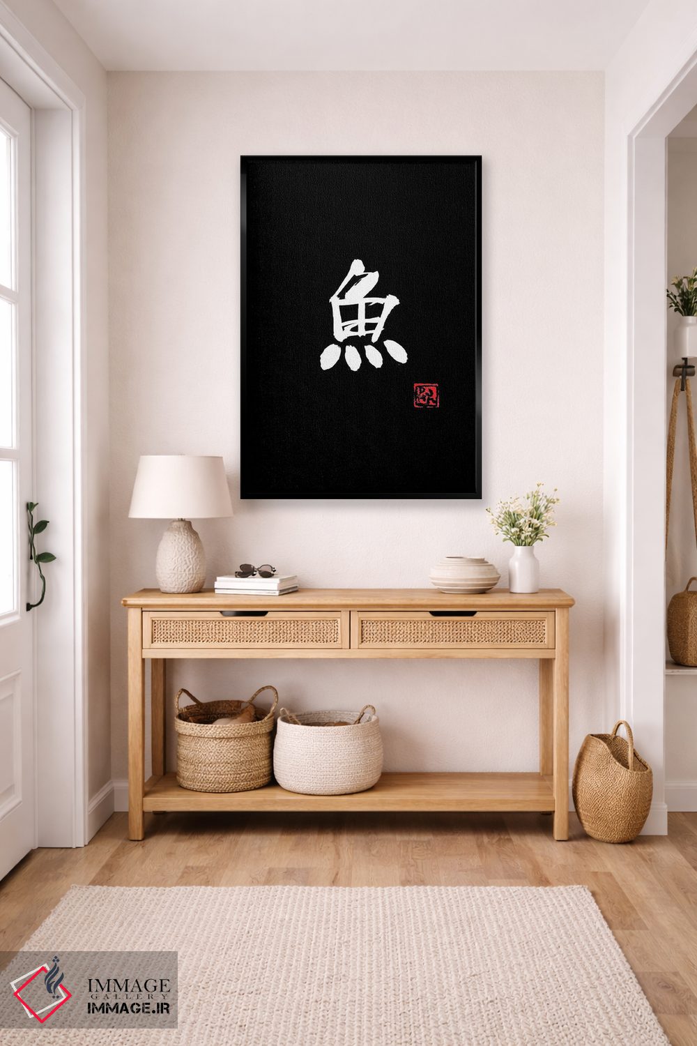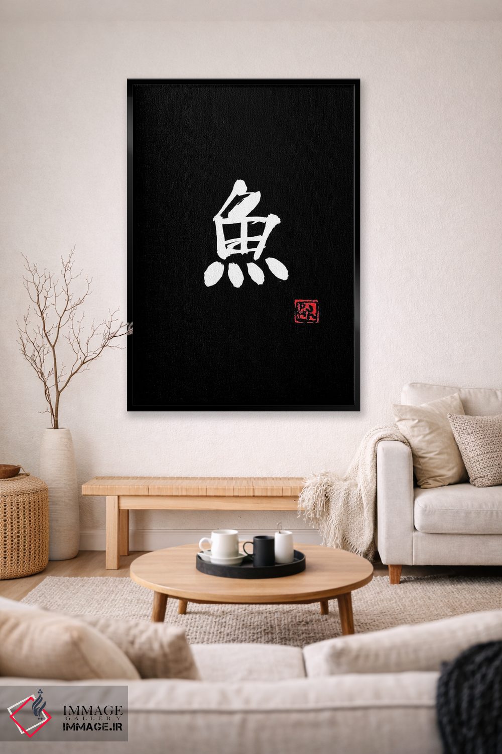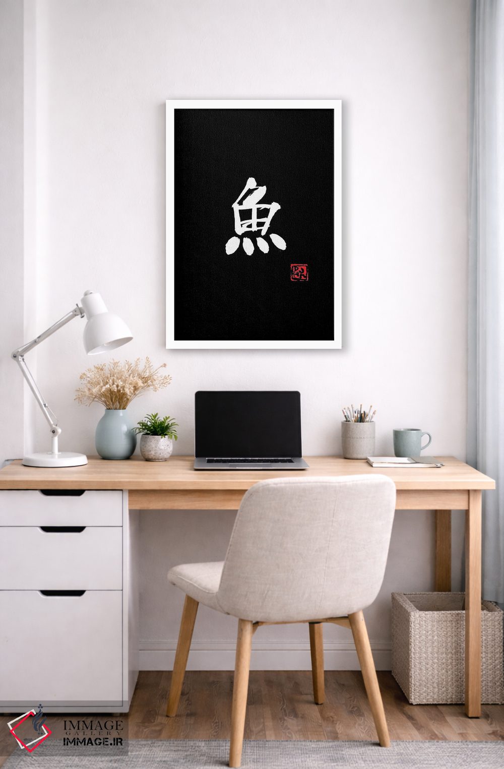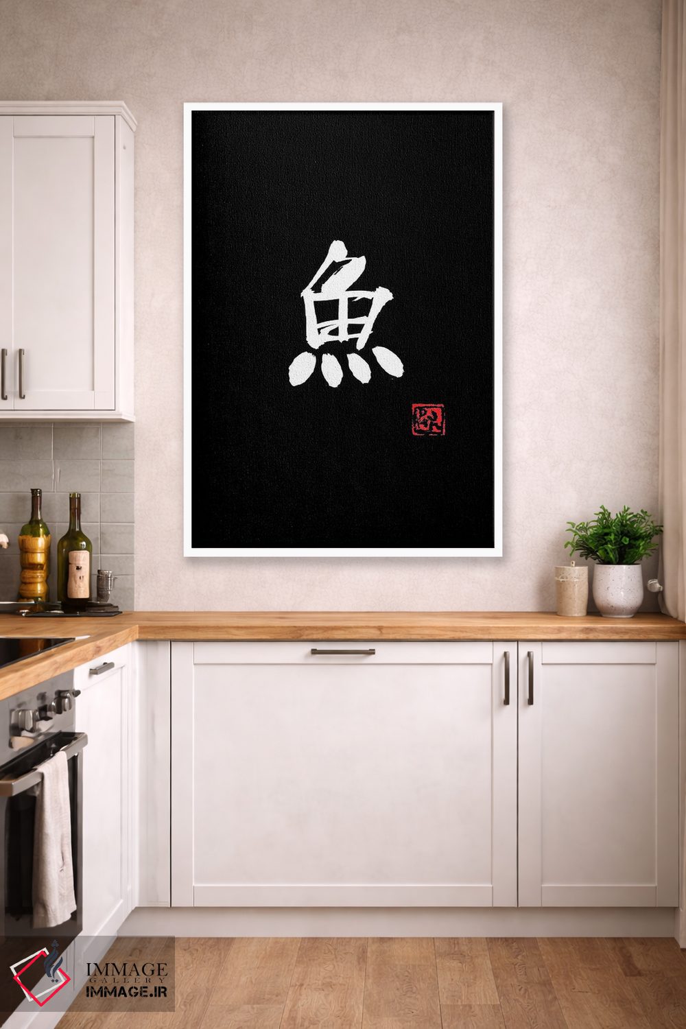 تابلو مینیمال ماهی اثر پشان - نمای قاب‌دار سفید