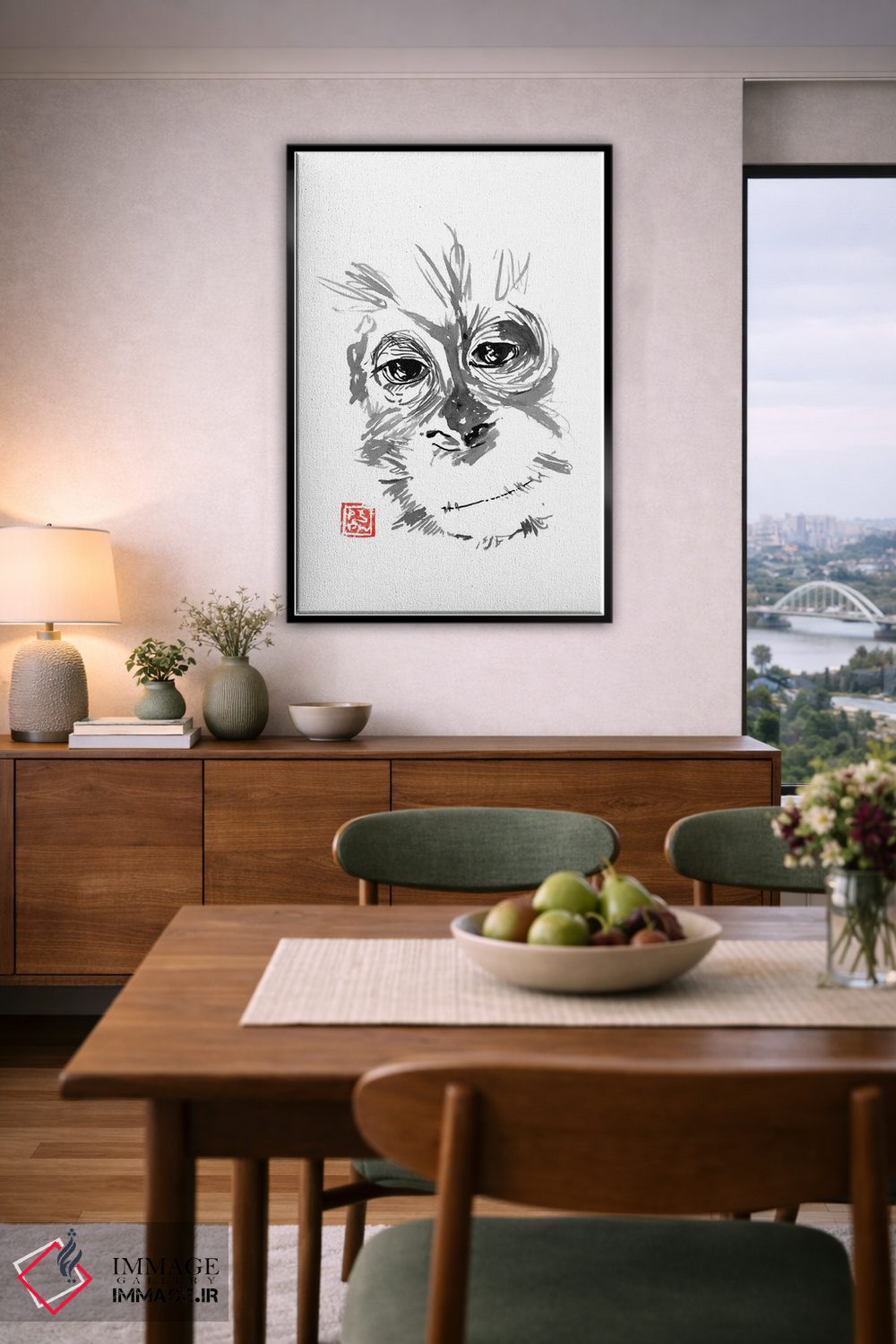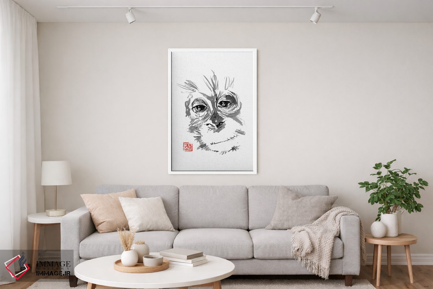 تابلو دکوراتیو اورانگوتان بچه اثر پشان - نمای روبه‌رو روی دیوار