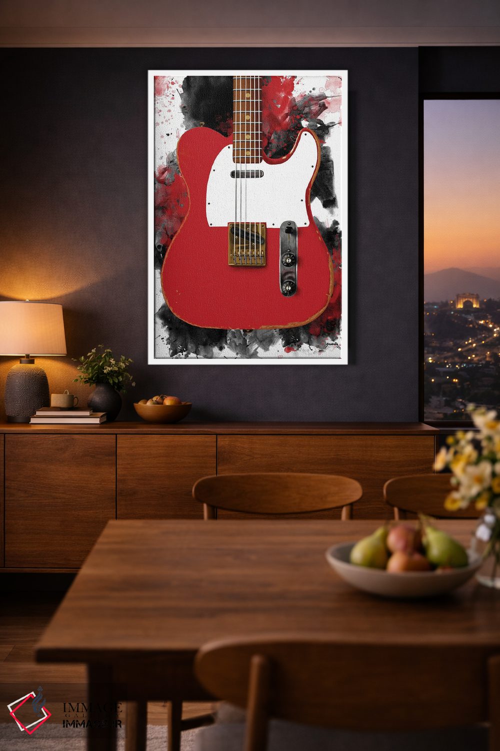 «گیتار برقی مودی واترز» اثرِ «پاپ کالت پوسترز (پوسترهای فرهنگ پاپ؛ برند هنری)» با حالوهوای هنری، از آن انتخابهایی است که به دیوار شخصیت میدهد و گفتگو راه میاندازد.