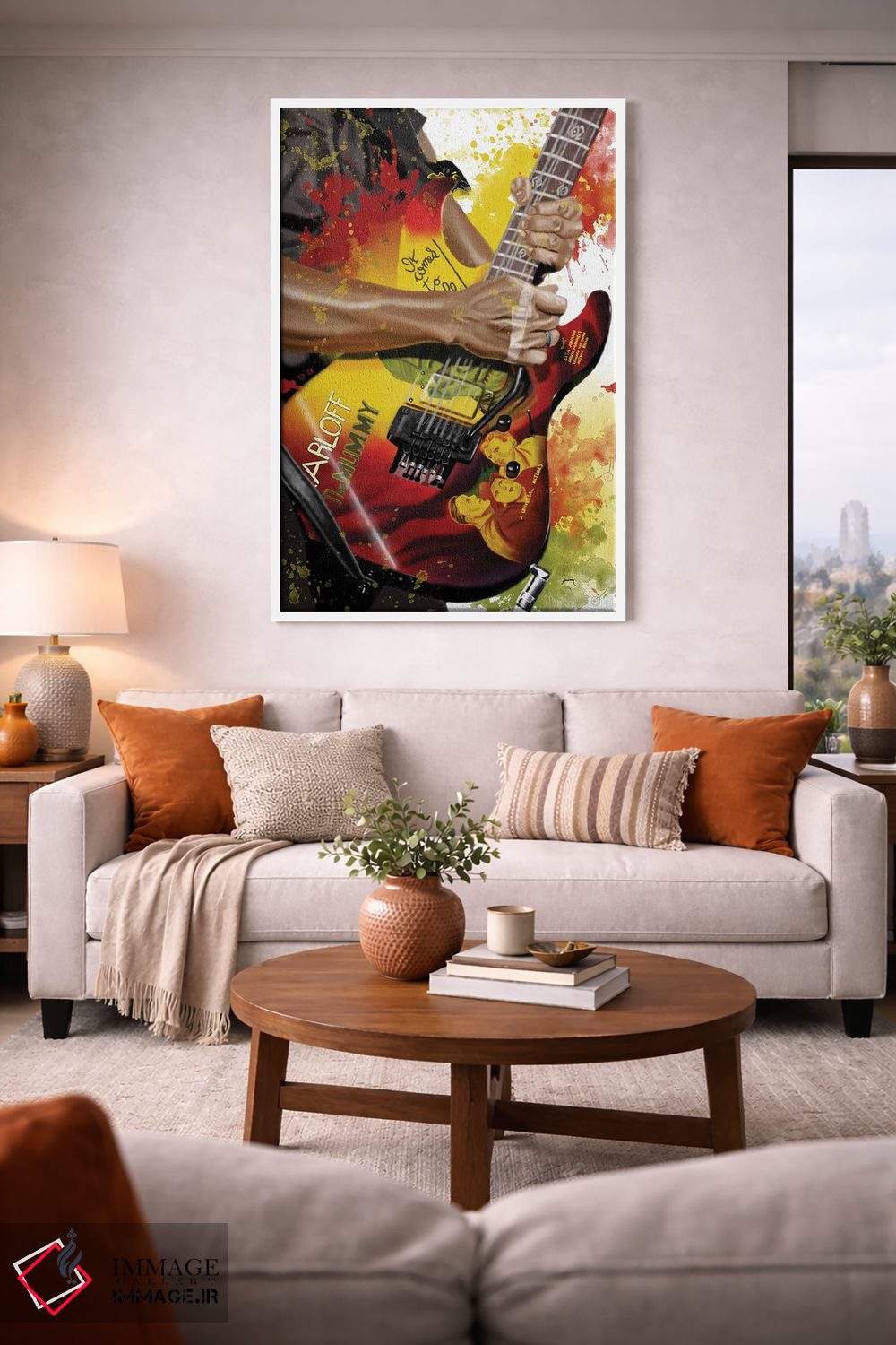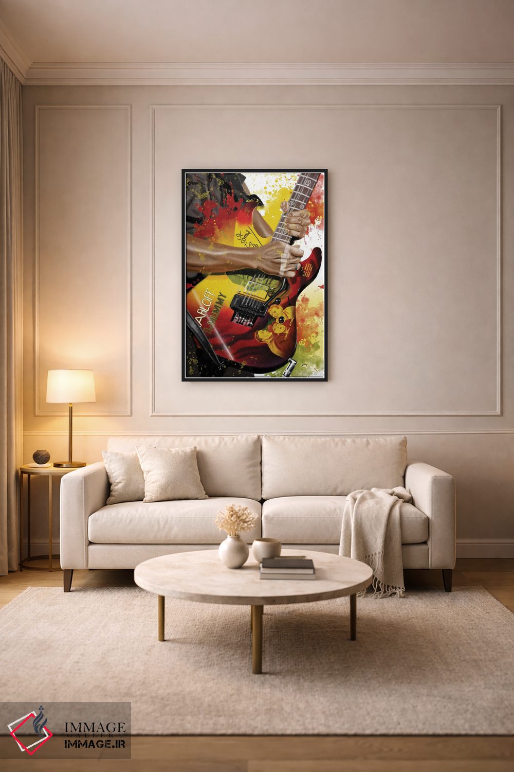 براساس پالت گرم اثر، قاب تیک گرم (چوبی) پیشنهاد اول است و مشکی مات (فریم متوسط) مکمل. برای سفارشهای پروژهای با ابعاد و قابهای اختصاصی با ایماژ در تماس باشید.