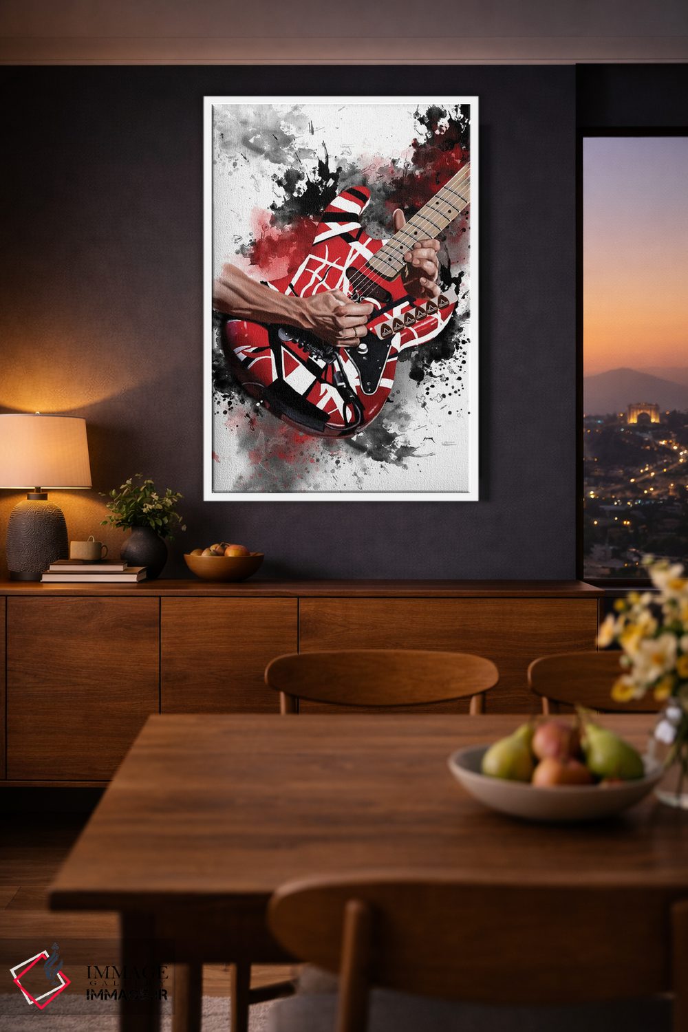 یک تابلو موسیقیمحور که با روایتی مینیمال و مرتب، فضا را پرانرژیتر نشان میدهد اثرِ «پاپ کالت پوسترز (پوسترهای فرهنگ پاپ؛ برند هنری)».