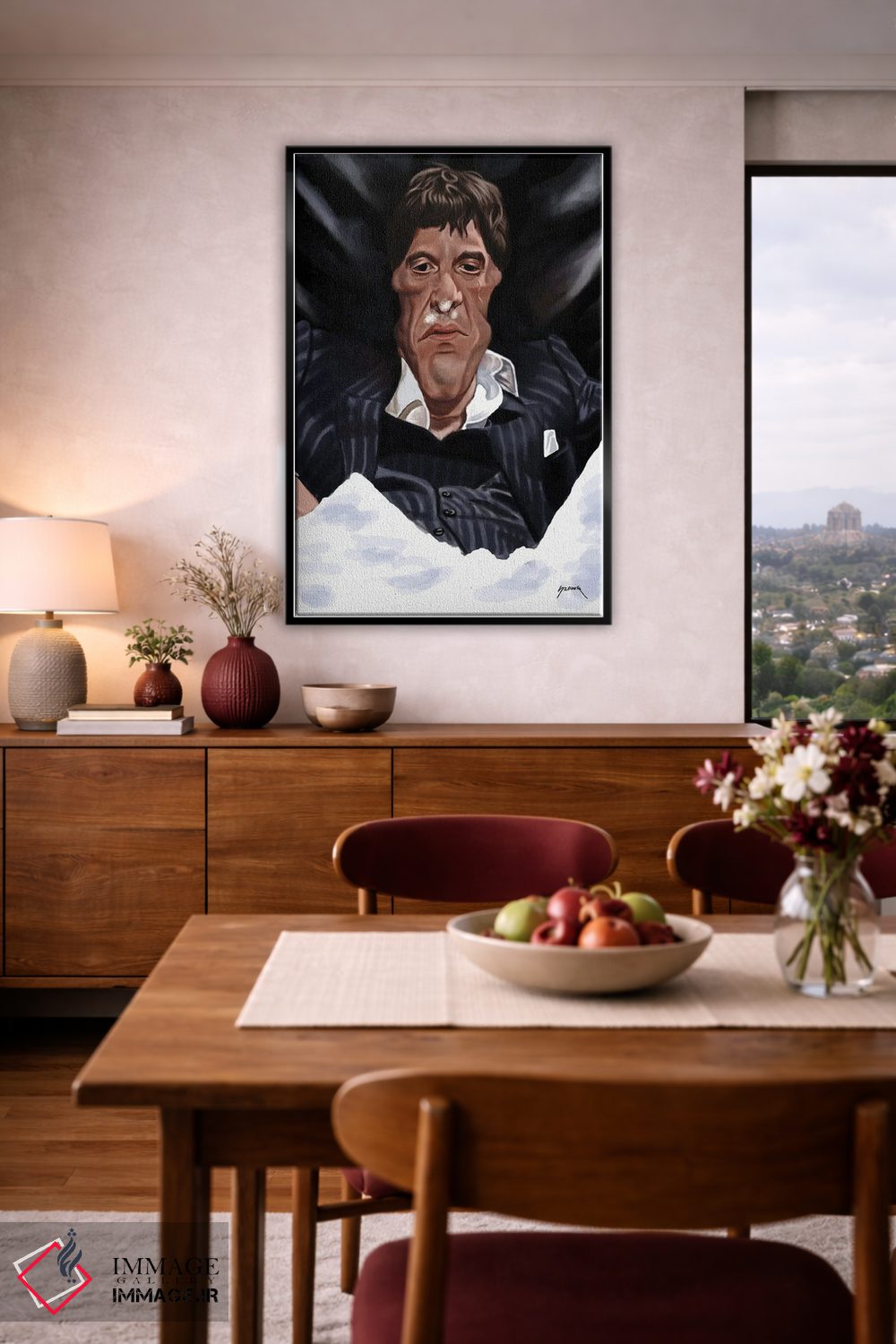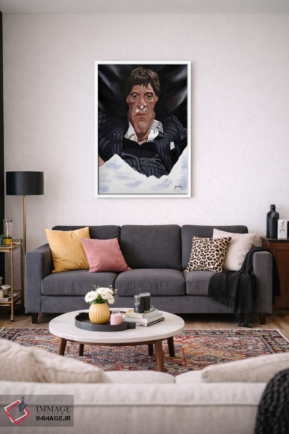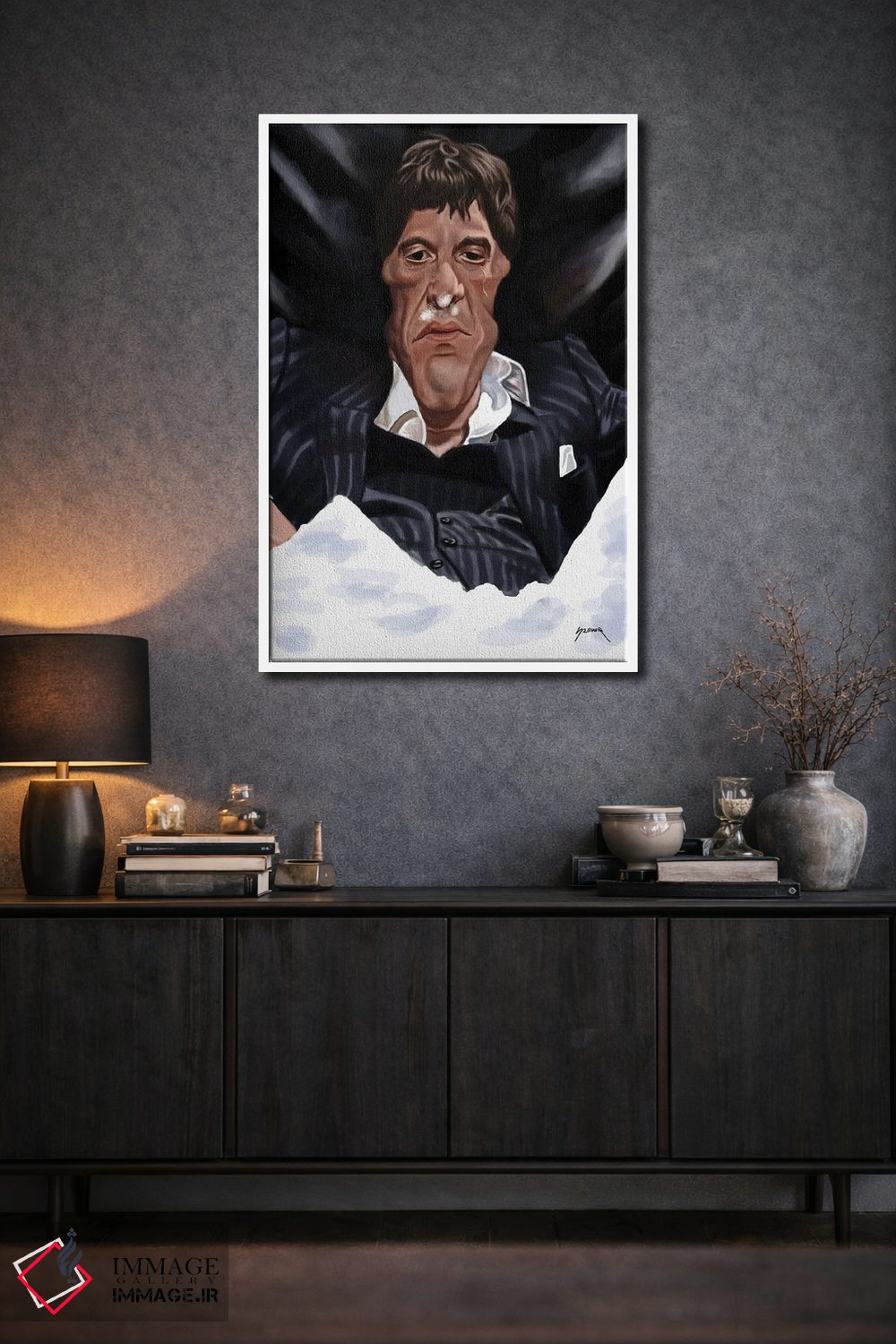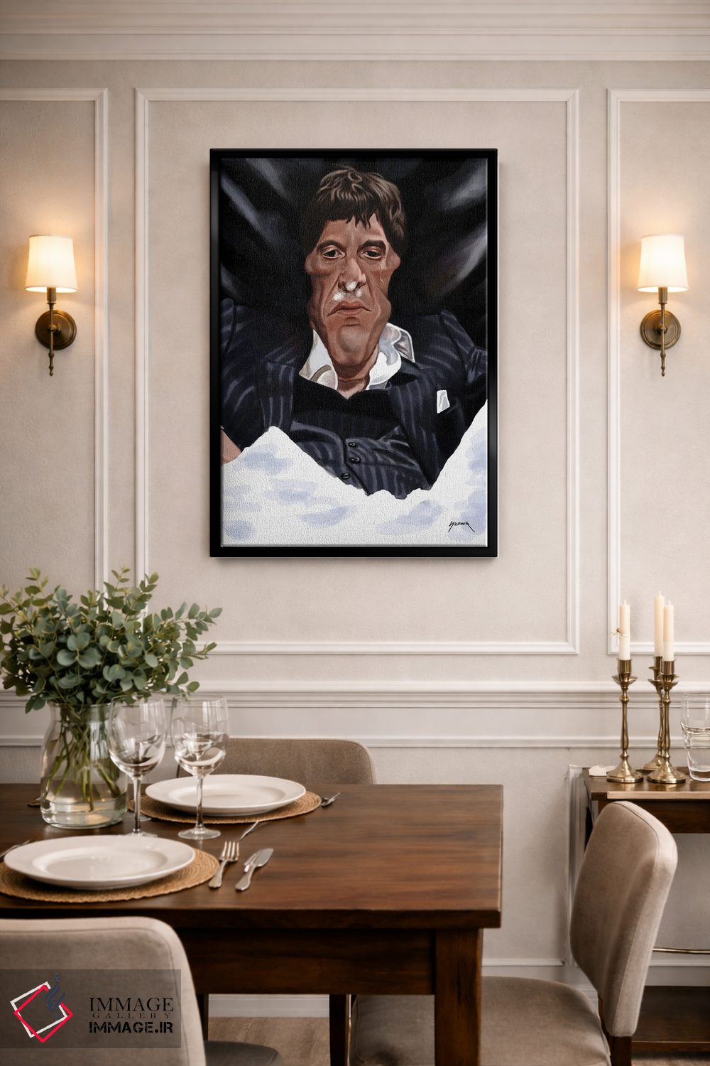 «صورت زخمی» اثرِ «پاپ کالت پوسترز (پوسترهای فرهنگ پاپ؛ برند هنری)» با موضوعِ این اثر، برای استودیوها، اتاق کار و چیدمانهای مدرن خیلی خوب جواب میدهد.