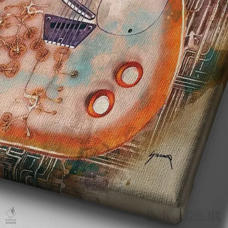 تابلو دکوراتیو گیتار استیم پانک لینک ری اثر پاپ کالت پوسترز - نمای نزدیک بافت بوم