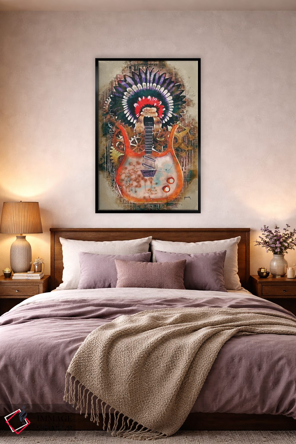 تابلو دکوراتیو گیتار استیم پانک لینک ری اثر پاپ کالت پوسترز - نمای روبه‌رو روی دیوار