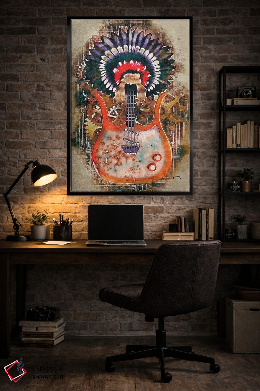 تابلو دکوراتیو گیتار استیم پانک لینک ری اثر پاپ کالت پوسترز - نمای پرسپکتیو محصول