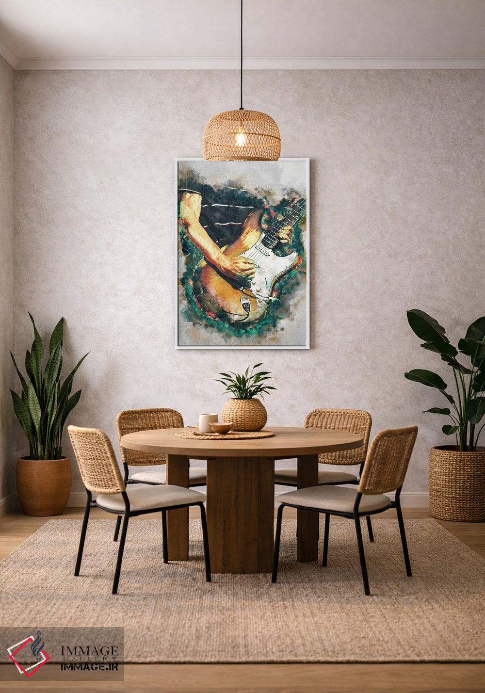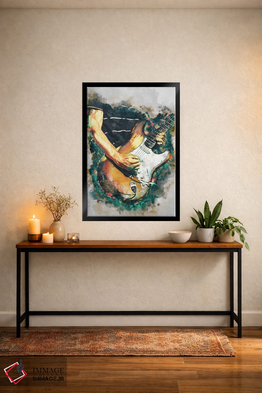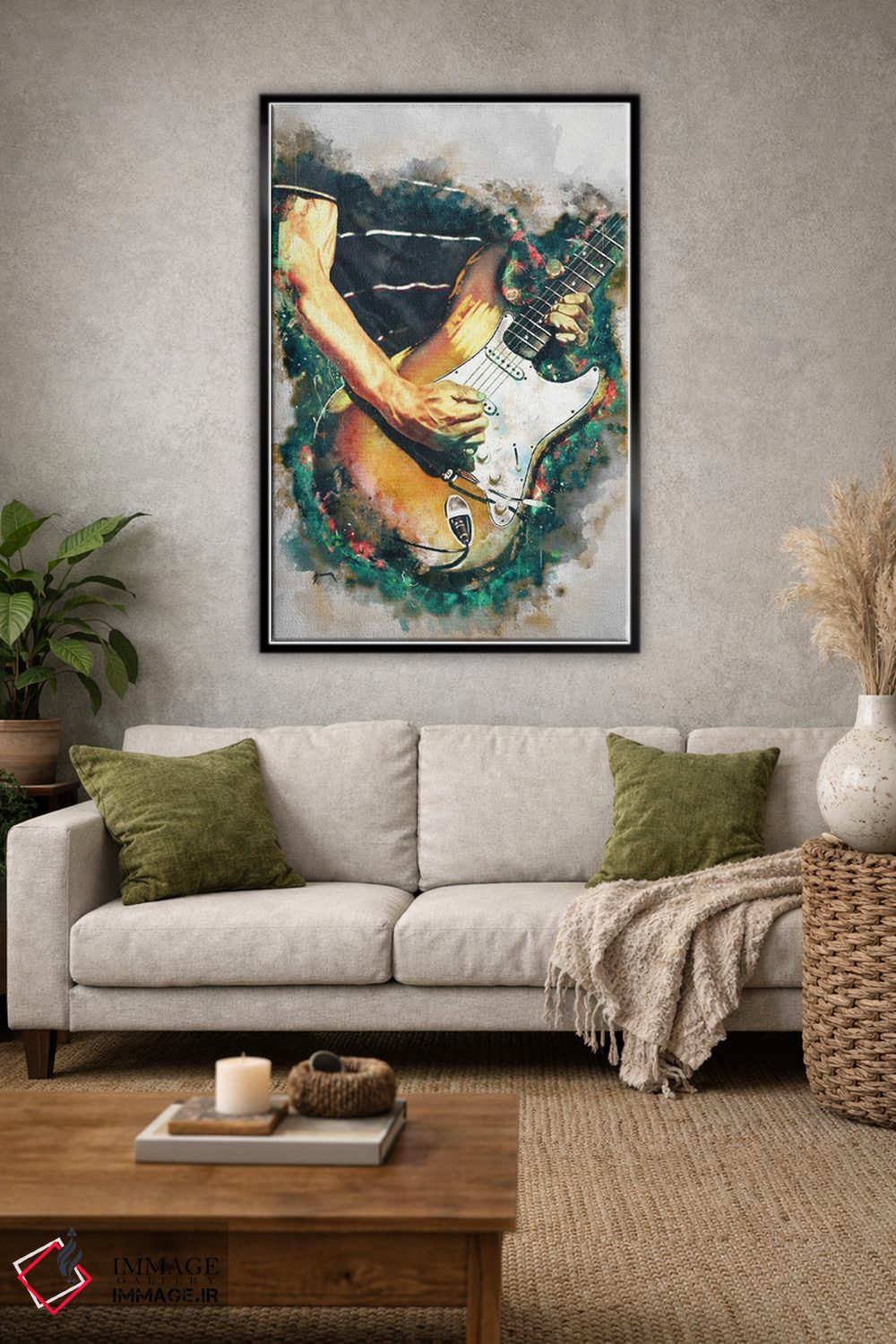 براساس پالت ترکیبی اثر، قاب تیک گرم (چوبی) پیشنهاد اول است و مشکی مات (فریم متوسط) مکمل. برای سفارشهای پروژهای با ابعاد و قابهای اختصاصی با ایماژ در تماس باشید.
