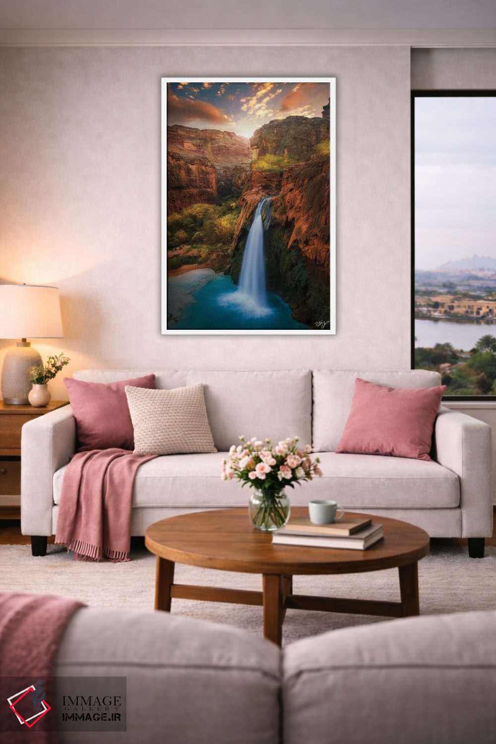 تابلو دکوراتیو طلوع خورشید در بهشت اثر پیتر کسکن - نمای روبه‌رو روی دیوار