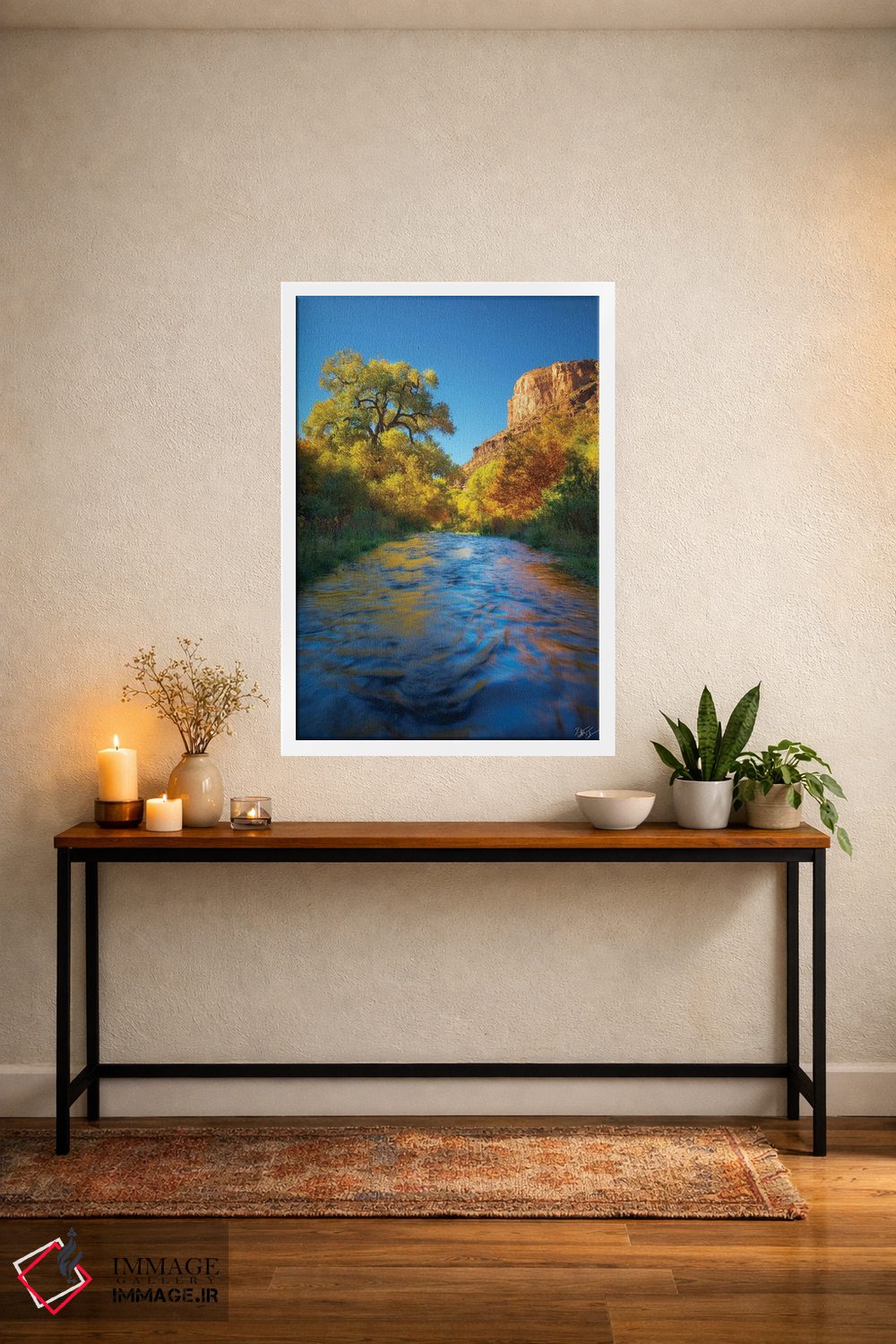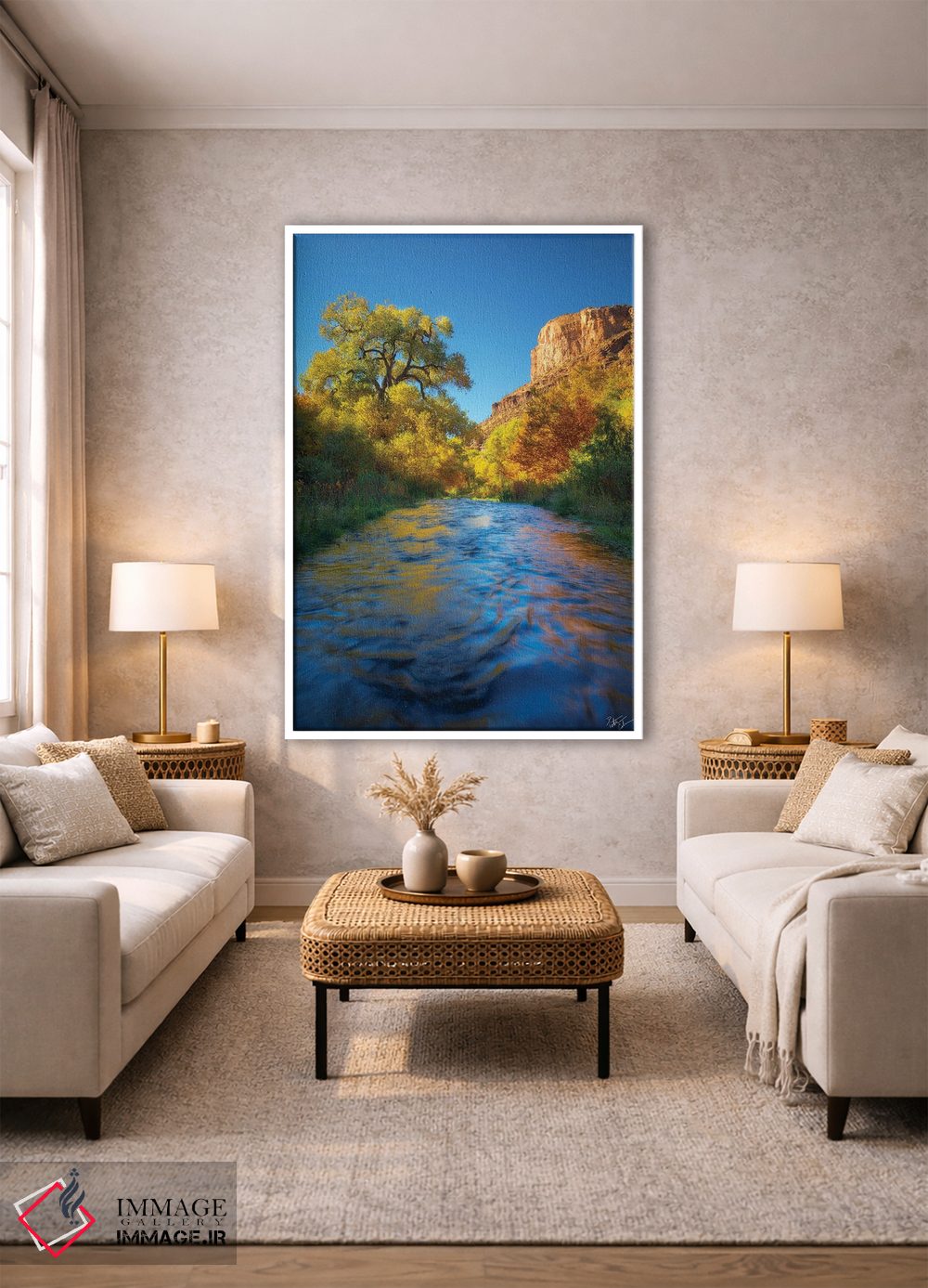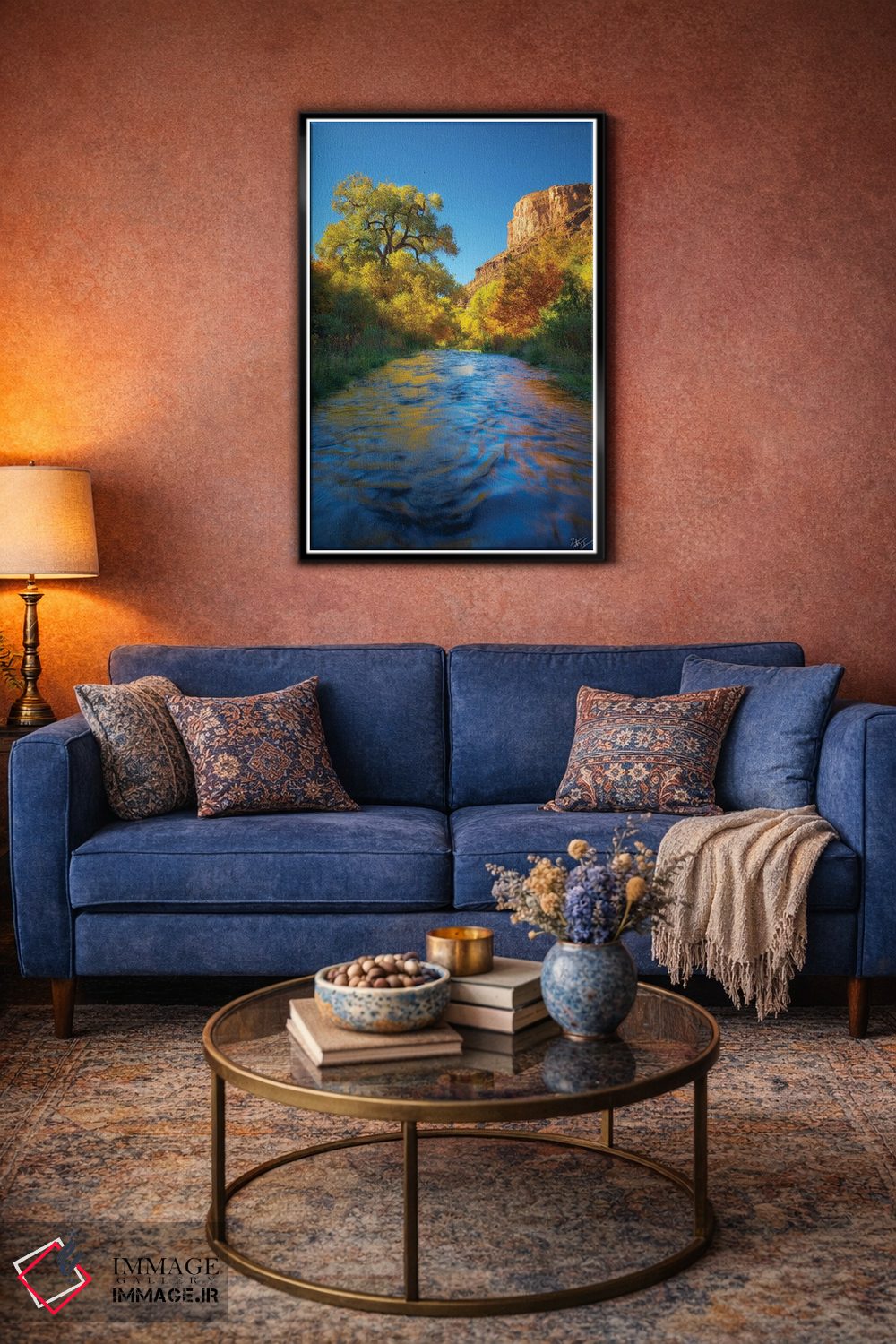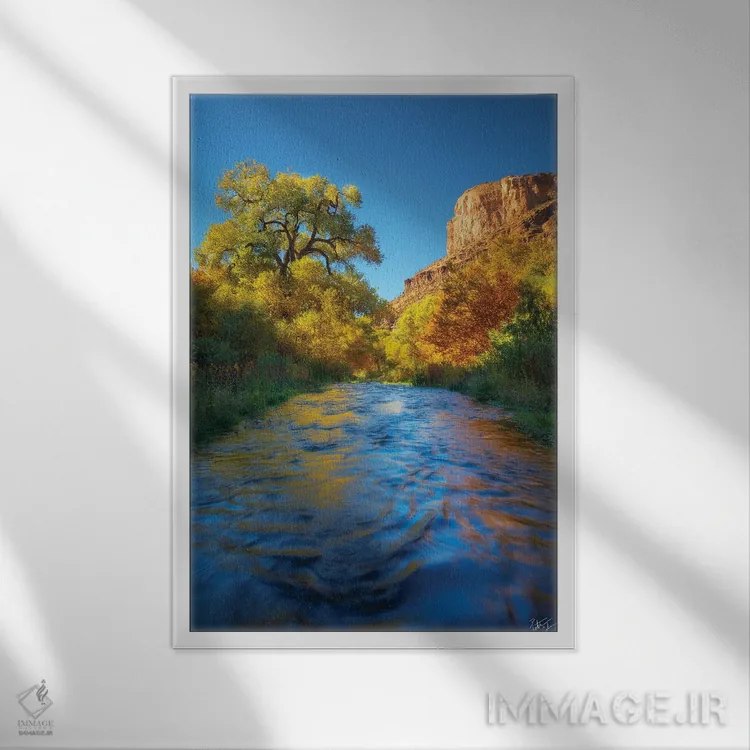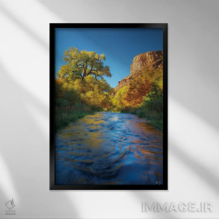 براساس پالت ترکیبی اثر، قاب تیک گرم (چوبی) پیشنهاد اول است و مشکی مات (فریم متوسط) مکمل. برای سفارشهای پروژهای با ابعاد و قابهای اختصاصی با ایماژ در تماس باشید.