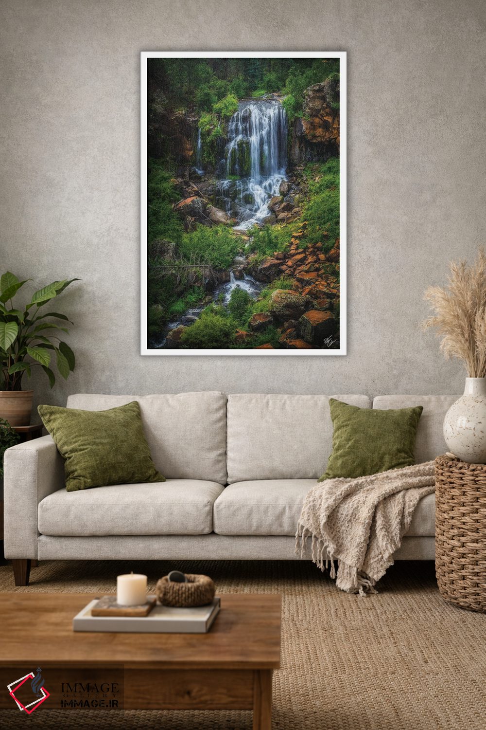 بوم گالری ایماژ طوری طراحی شده که اثر روی دیوار «پرداختشده» و حرفهای دیده شود—نه پرزرقوبرقِ بیپایه؛ بلکه دقیق و خوشپرداخت. بافت ظریف کنواس کمک میکند حس اثر هنری را در نگاه نزدیک نگه میدارد. رنگهای آرشیوی Epson UltraChrome HDR کمک میکند در سایهها جزئیات بیشتری حفظ میشود و برای محیطهای رسمیتر هم انتخاب مطمئنی است. حاصل کار، یک تابلو خوشنشین است که هم از دور اثرگذار است و هم از نزدیک خوشخوان؛ در کنار نورپردازی درست، جلوهی گالریوار بیشتری حس میشود. در کنار چوب و متریالهای طبیعی، بافت کنواس دلنشینتر دیده میشود.