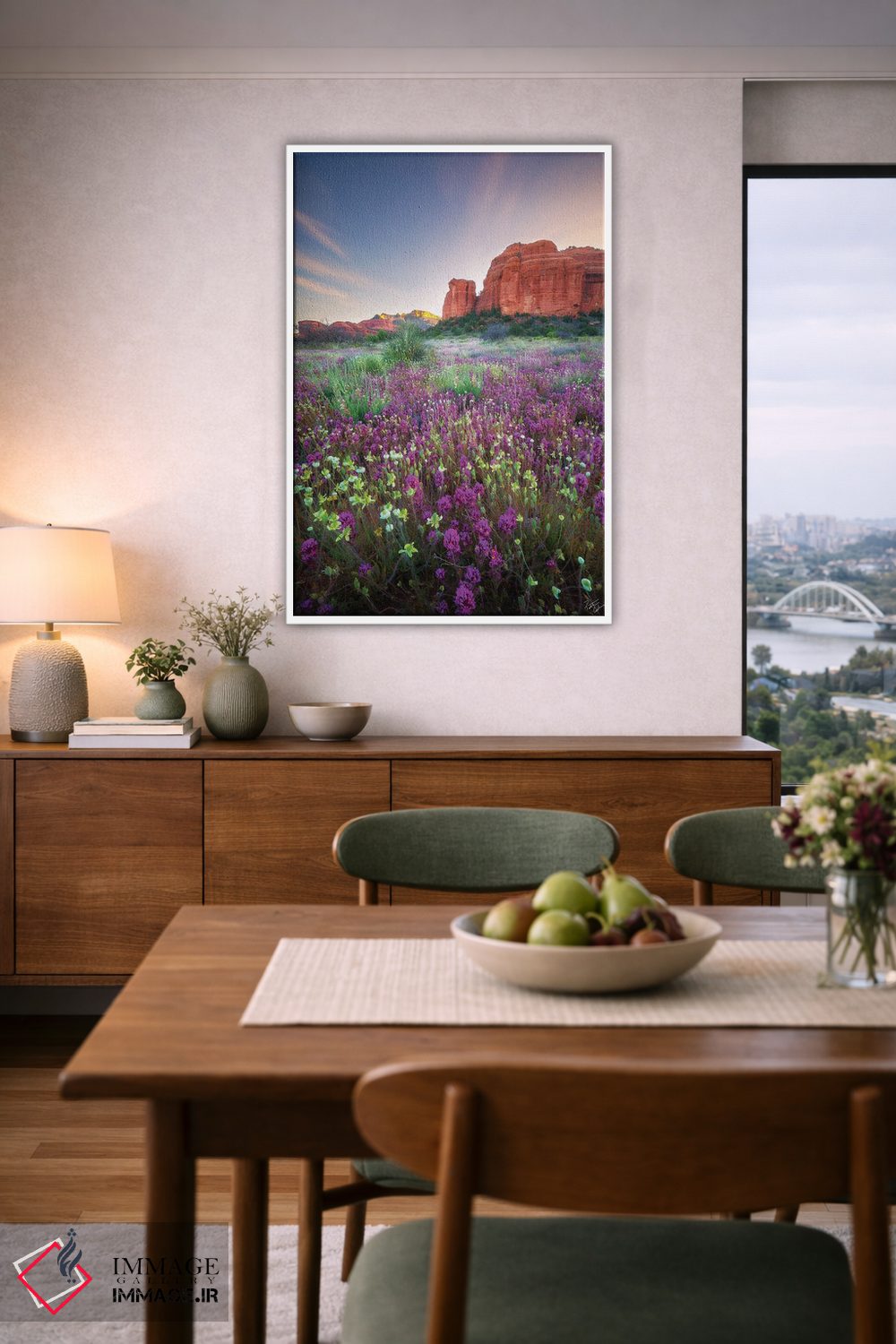 ساختار بوم گالری ایماژ طوری است که اثر روی دیوار «پرداختشده» و حرفهای دیده شود—نه پرزرقوبرقِ بیپایه؛ بلکه دقیق و خوشپرداخت. بافت ظریف کنواس کمک میکند حس اثر هنری را در نگاه نزدیک نگه میدارد. چاپ جیکلی (Giclée) کمک میکند گرباورهاها را تمیزتر و طبیعیتر نشان میدهد بهخصوص وقتی نور موضعی ملایم داشته باشید. اگر دوست دارید قاب هم اضافه شود، میتوانید از گزینههای سایت استفاده کنید یا برای انتخاب سفارشی هماهنگ کنید؛ همراهِ نورپردازی درست، جلوهی گالریوار بیشتری حس میشود.