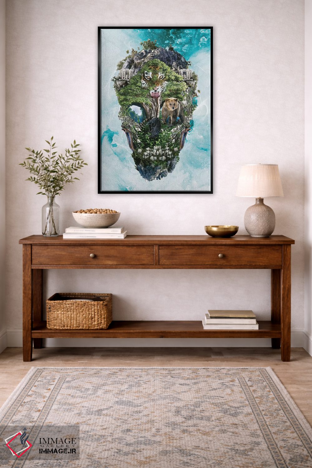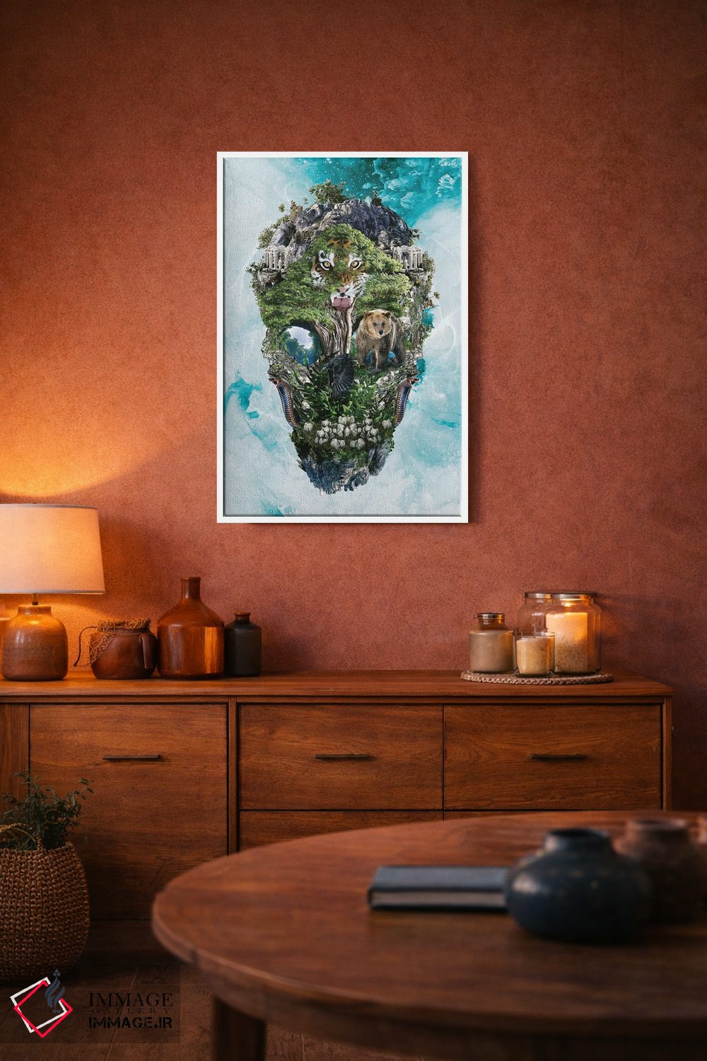 اگر دکور شما متفاوت و تجربهگراست، «طبیعت جمجمه III» اثرِ «ریزا پکر» با موضوعِ این اثر در لحن جایگزین انتخاب خوبی است.